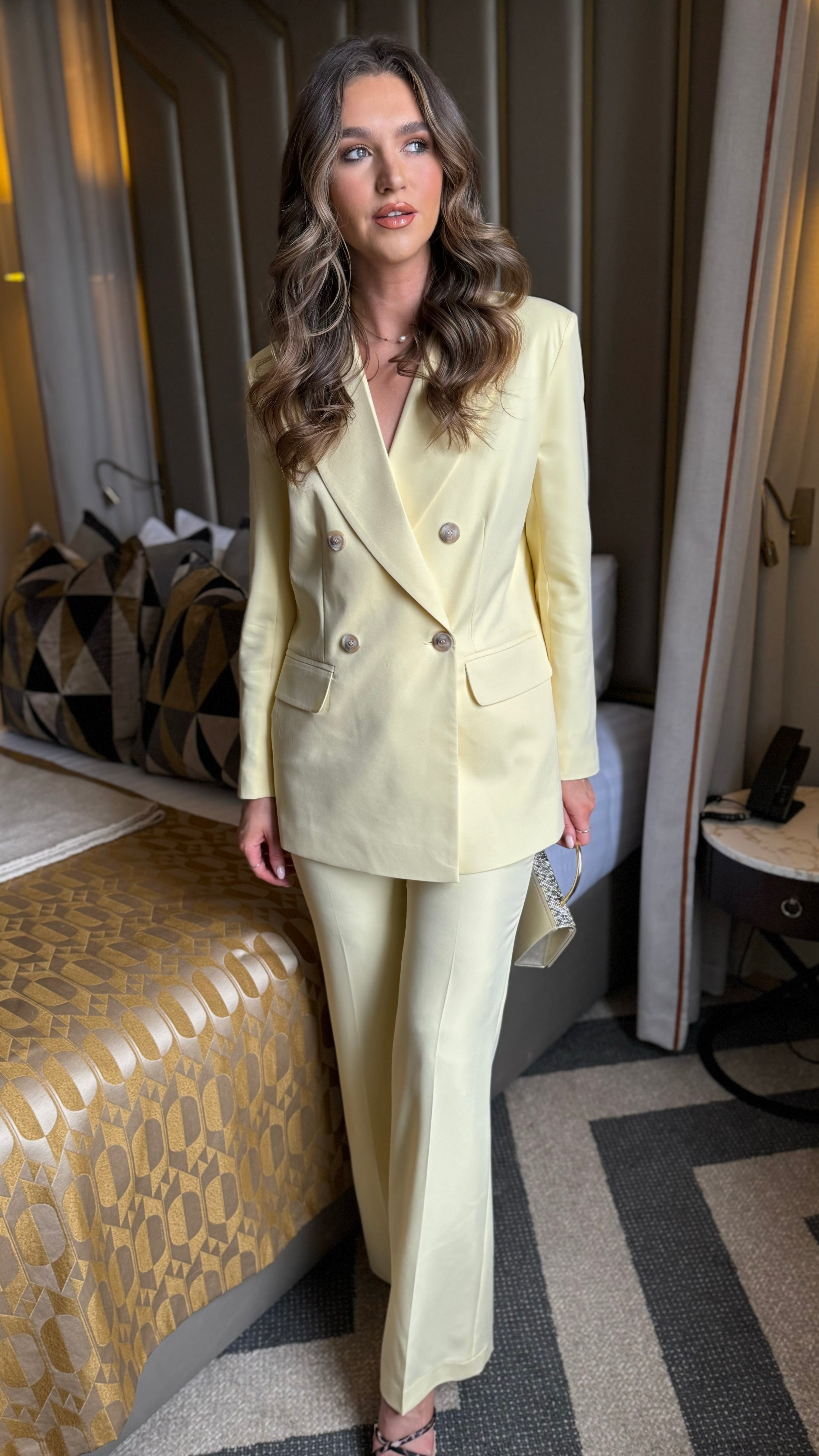 Chelsea Lemon Straight Leg Trousers & Blazer Co Ord