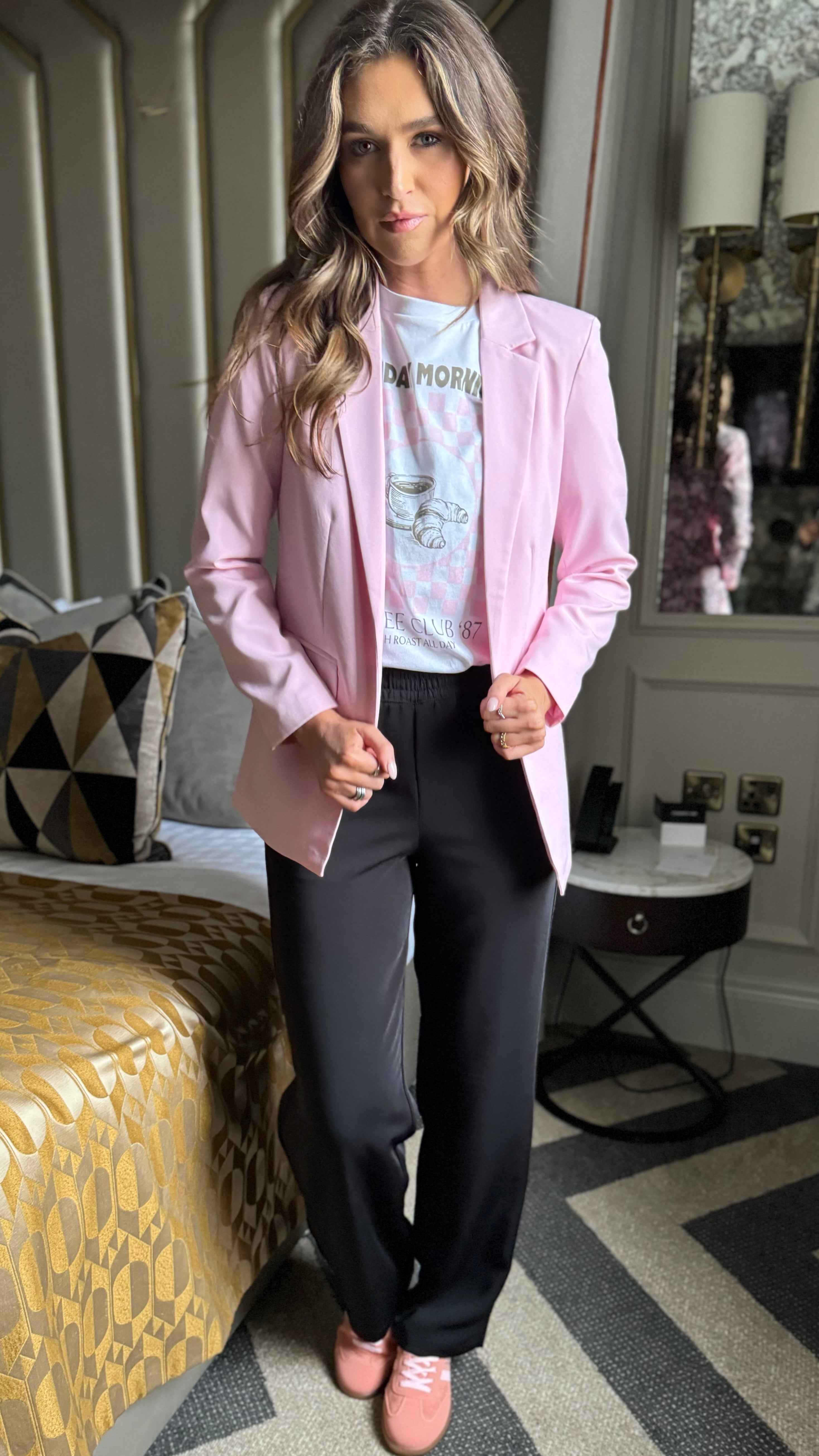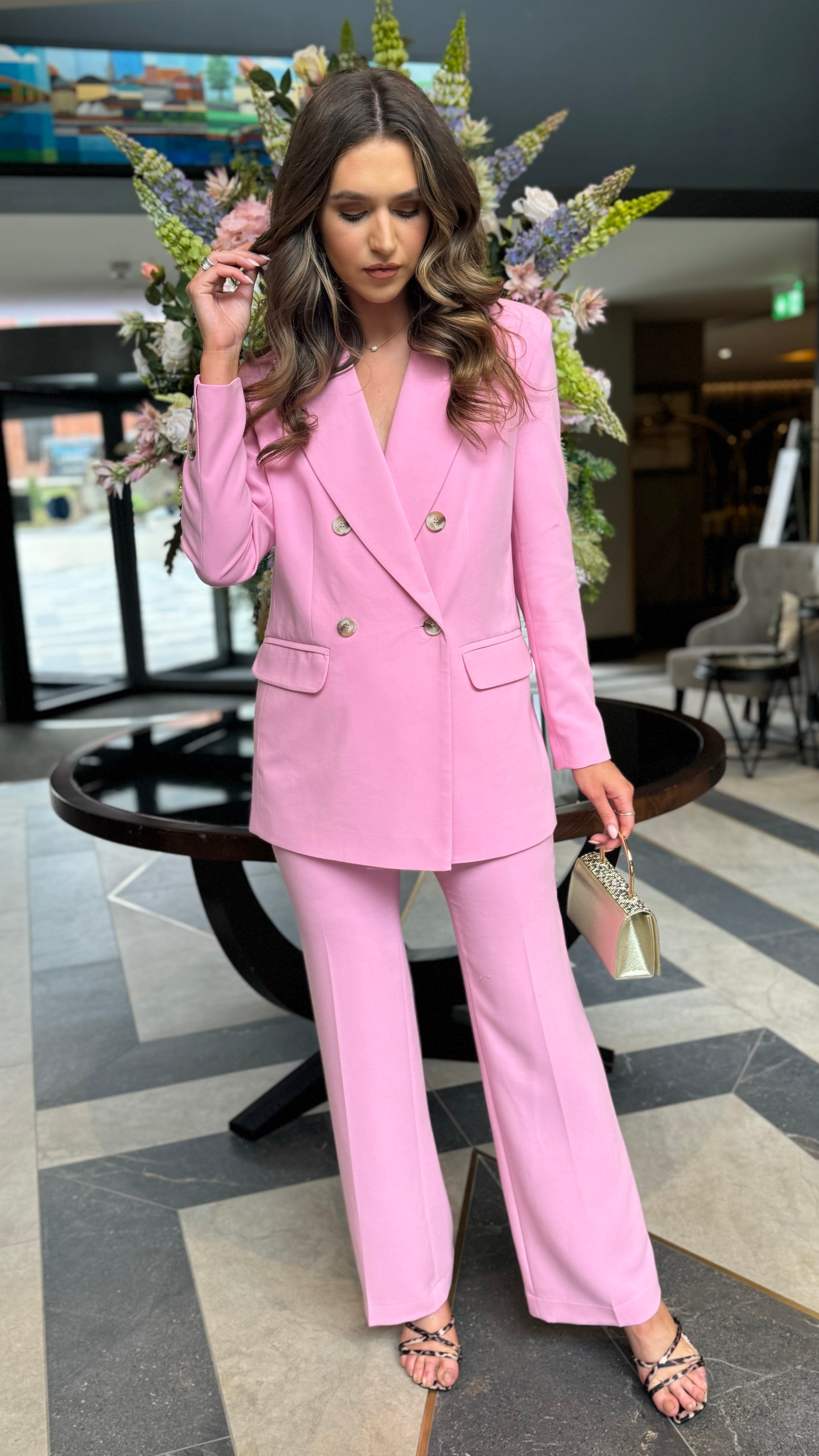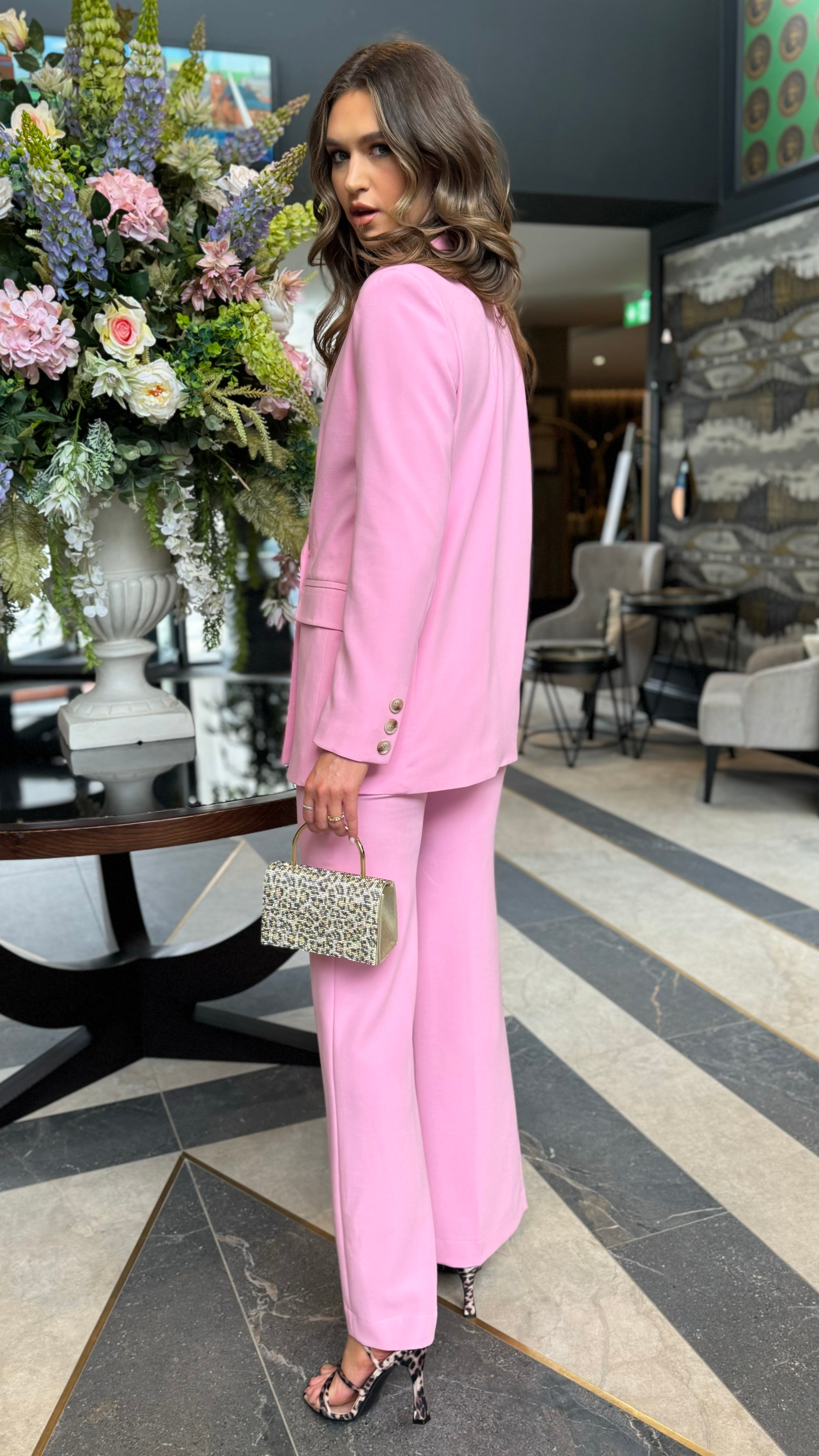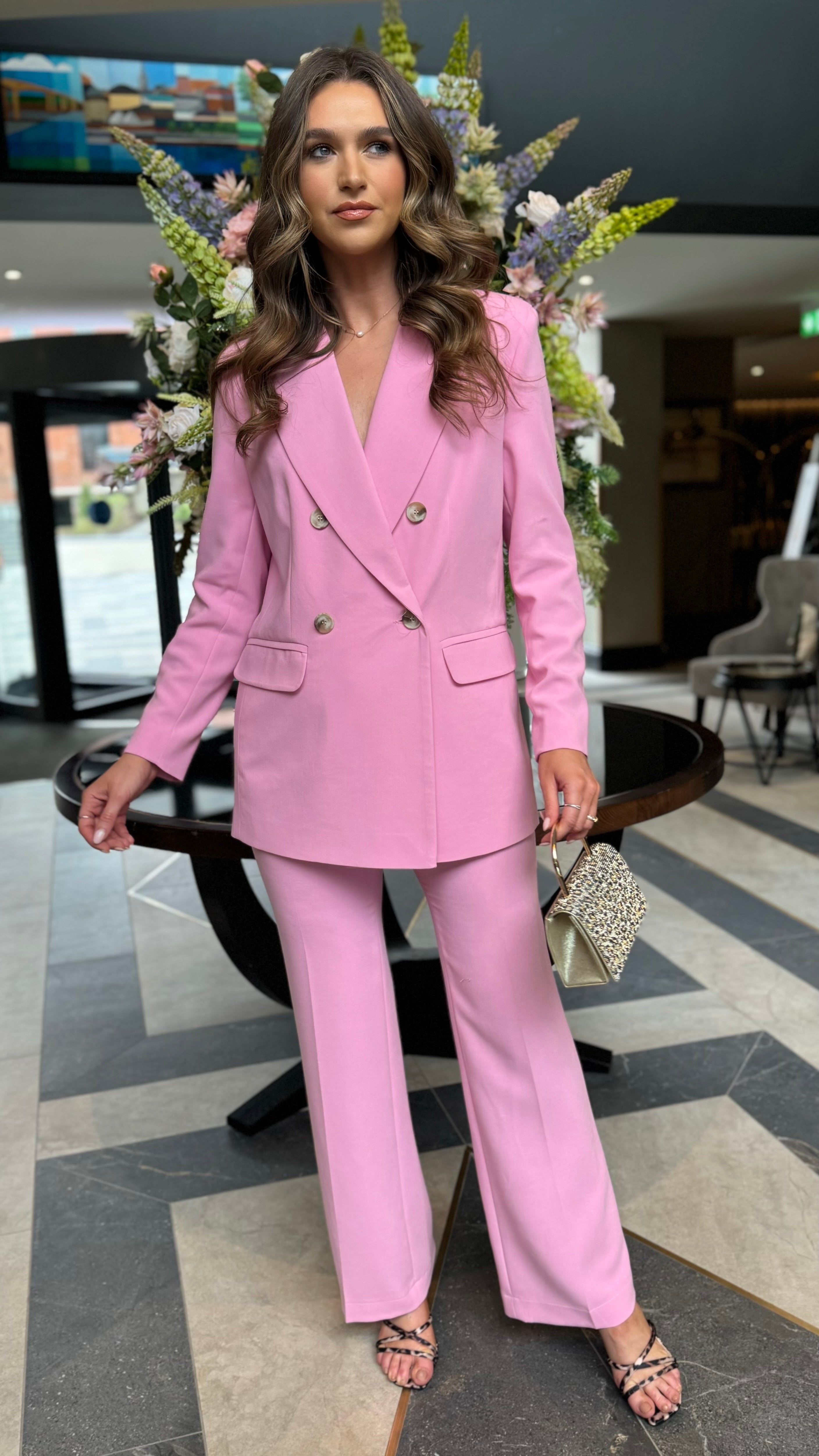 Chelsea Baby Pink Straight Leg Trousers & Blazer Co Ord