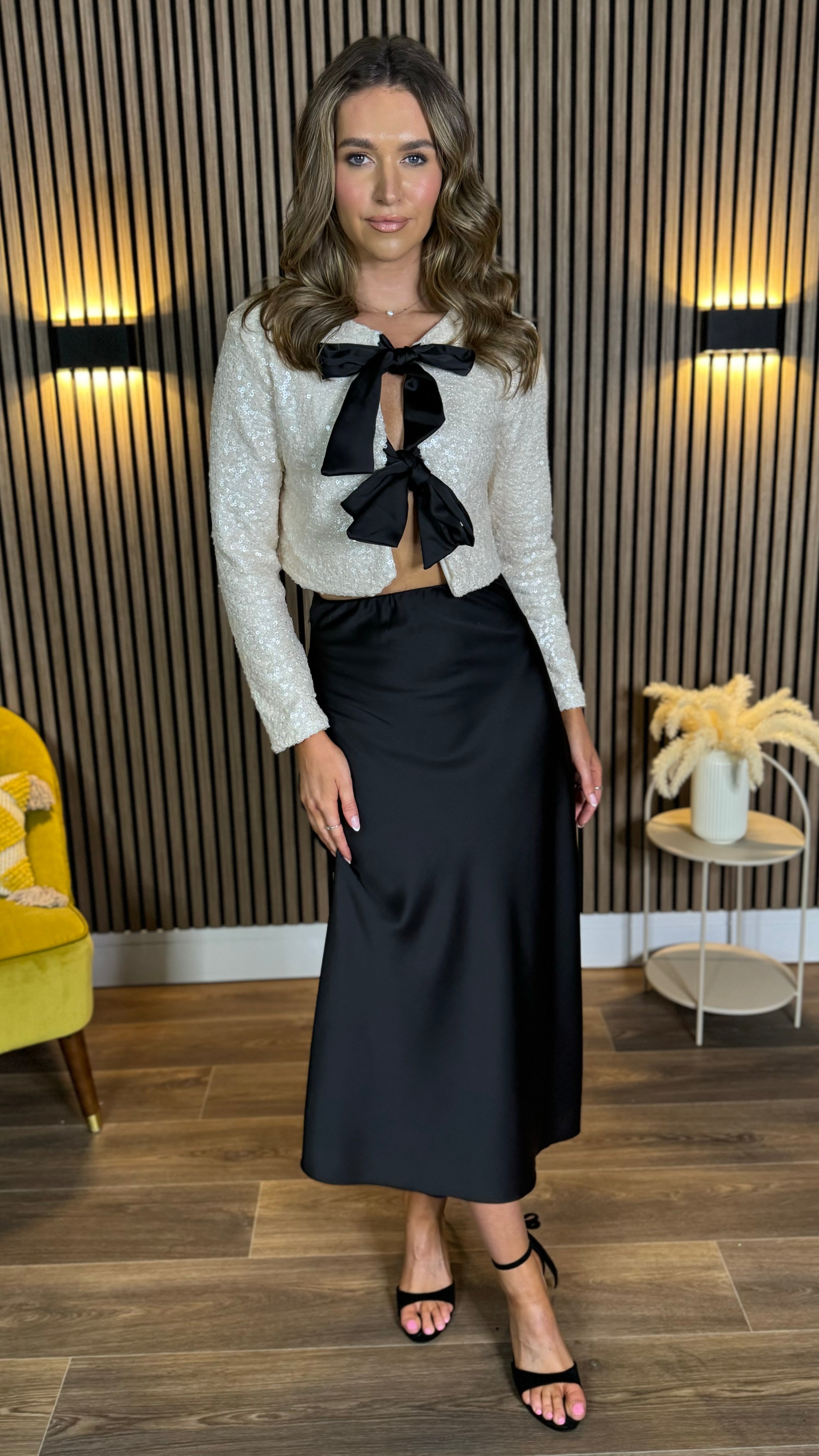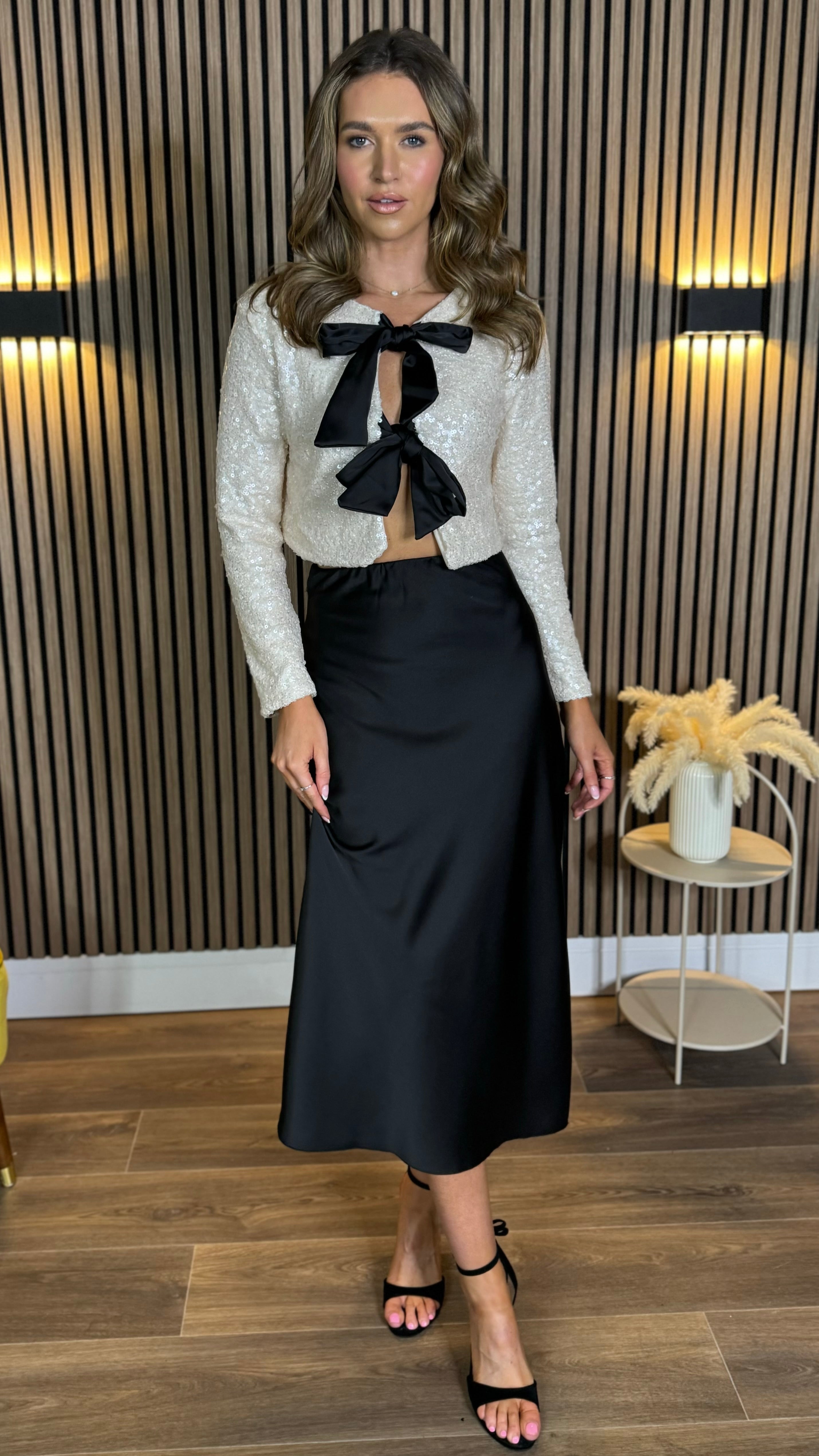 Morgan Cream Sequin With Black Bows Detail Top