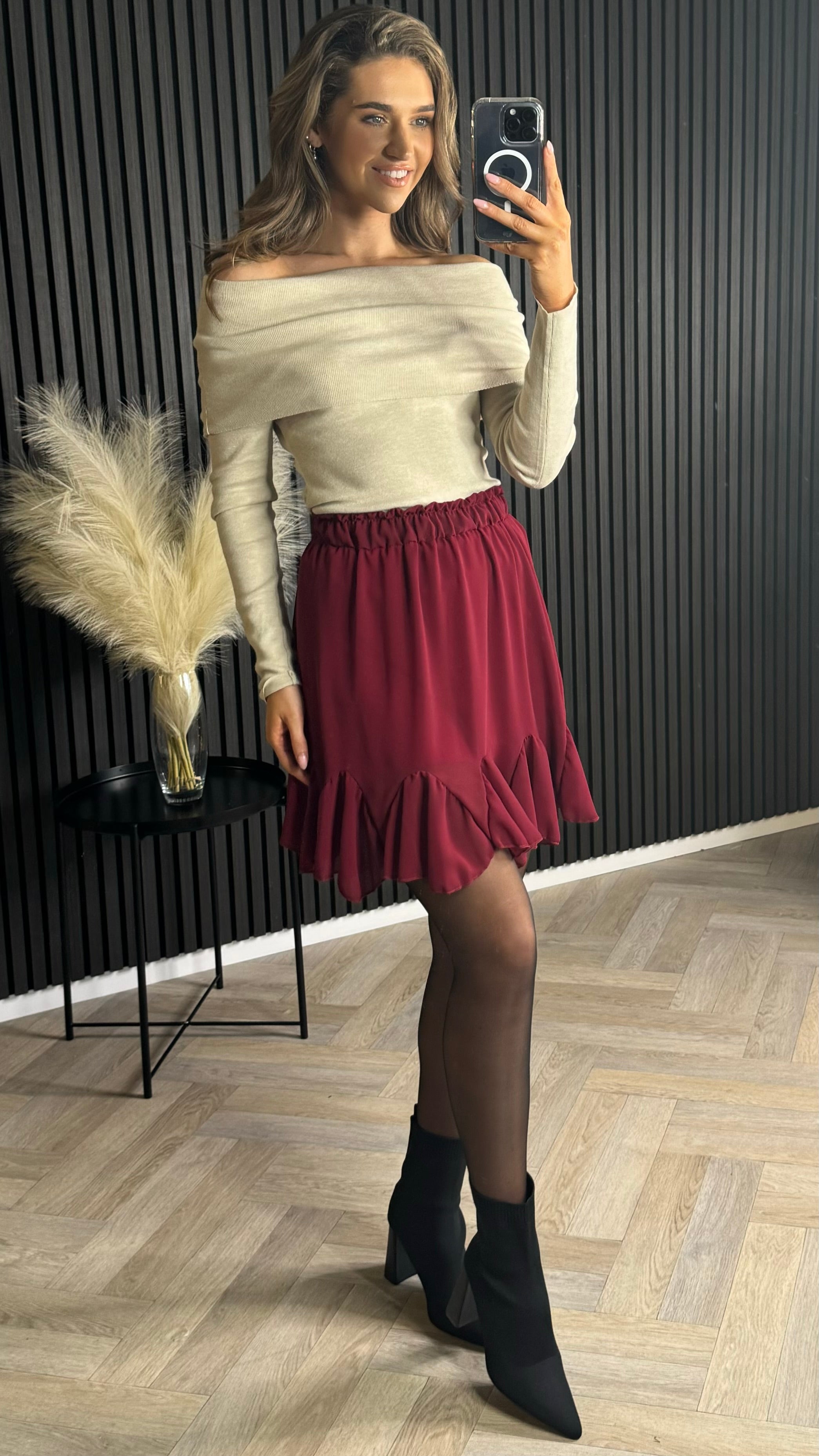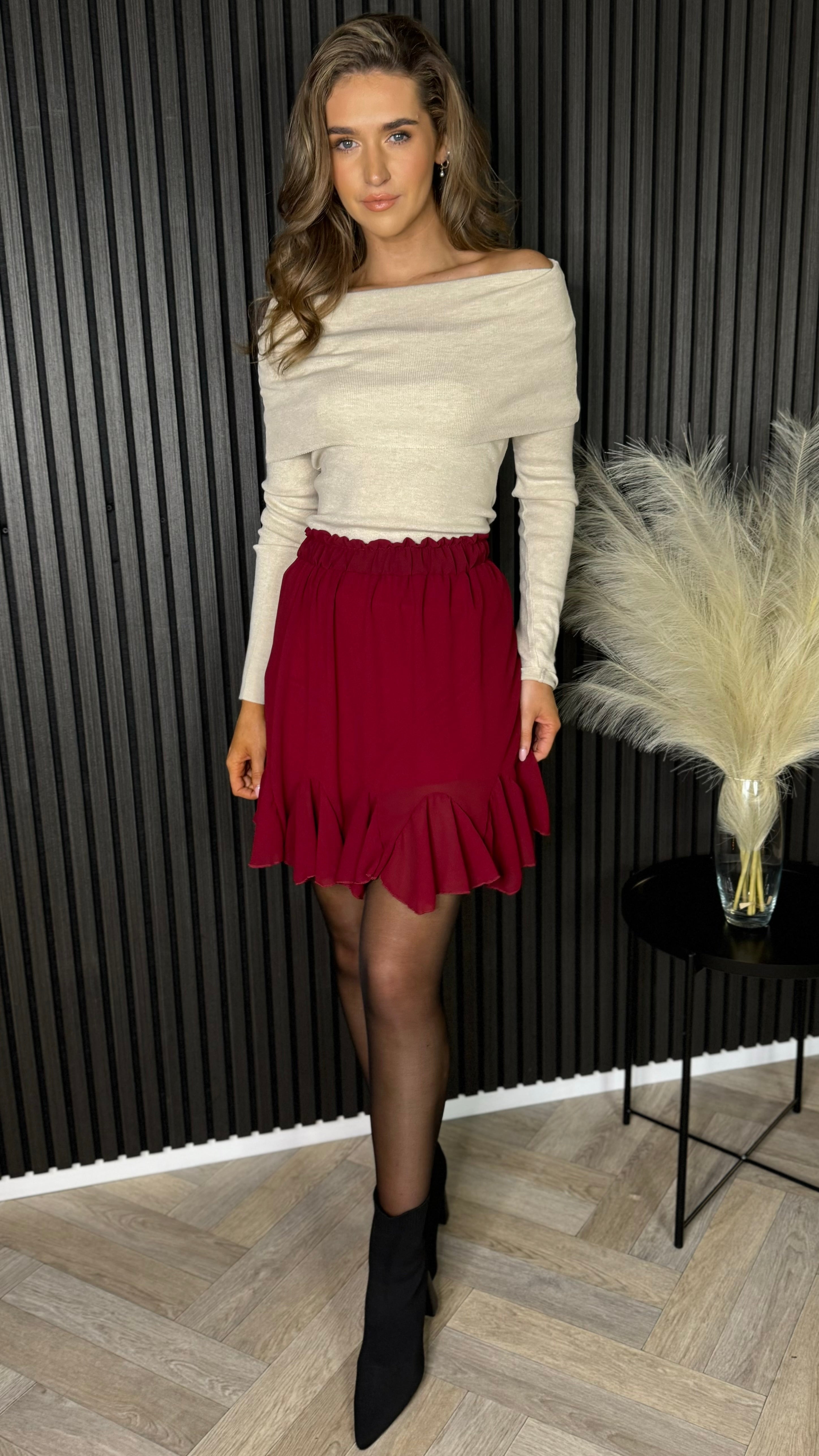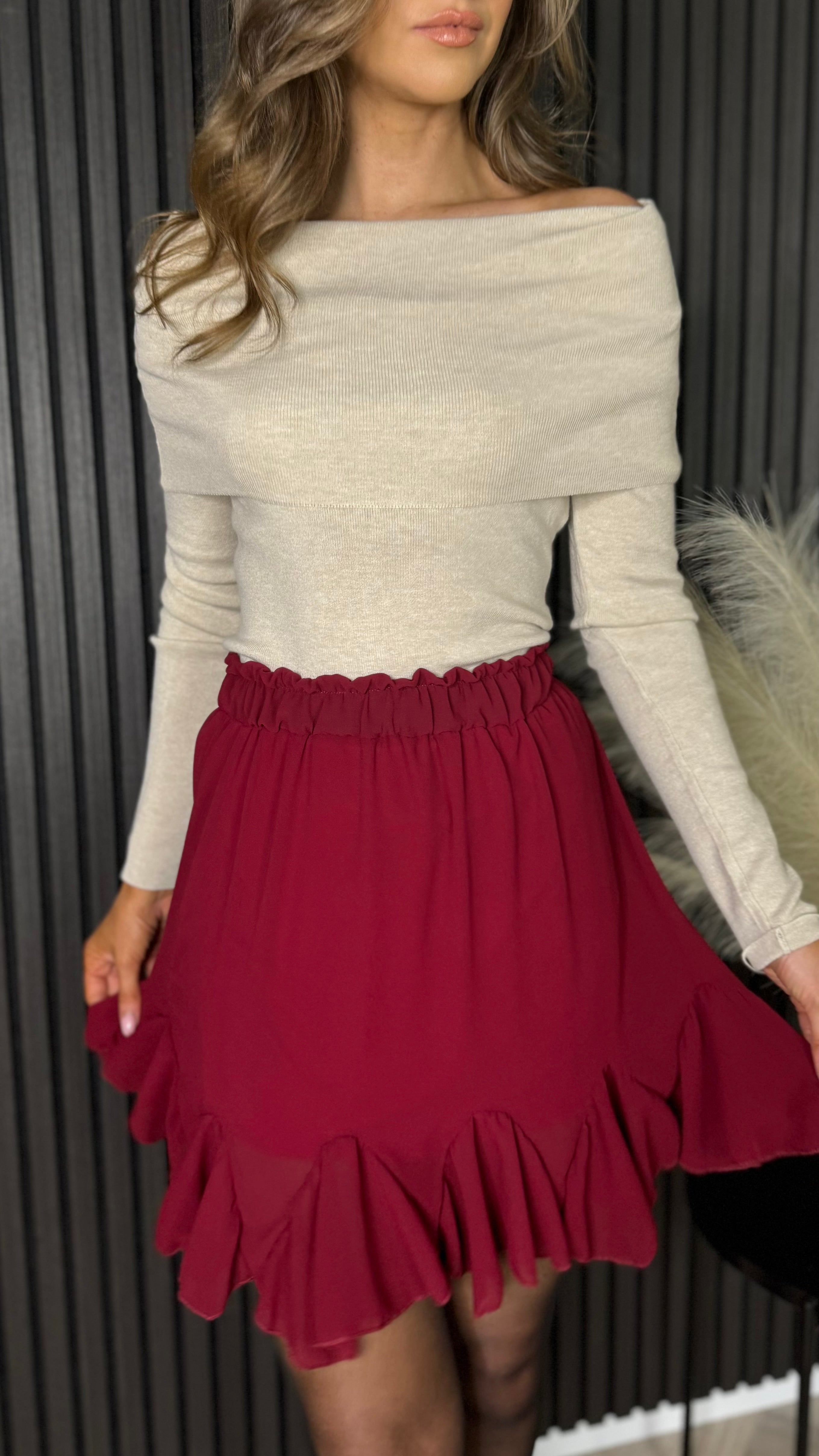 Jayne Burgundy Frill Hem Mini Skirt