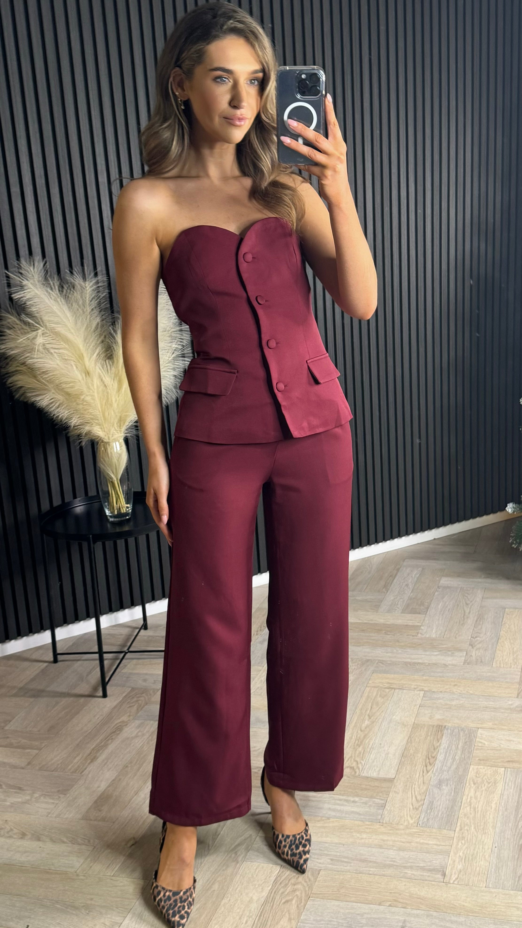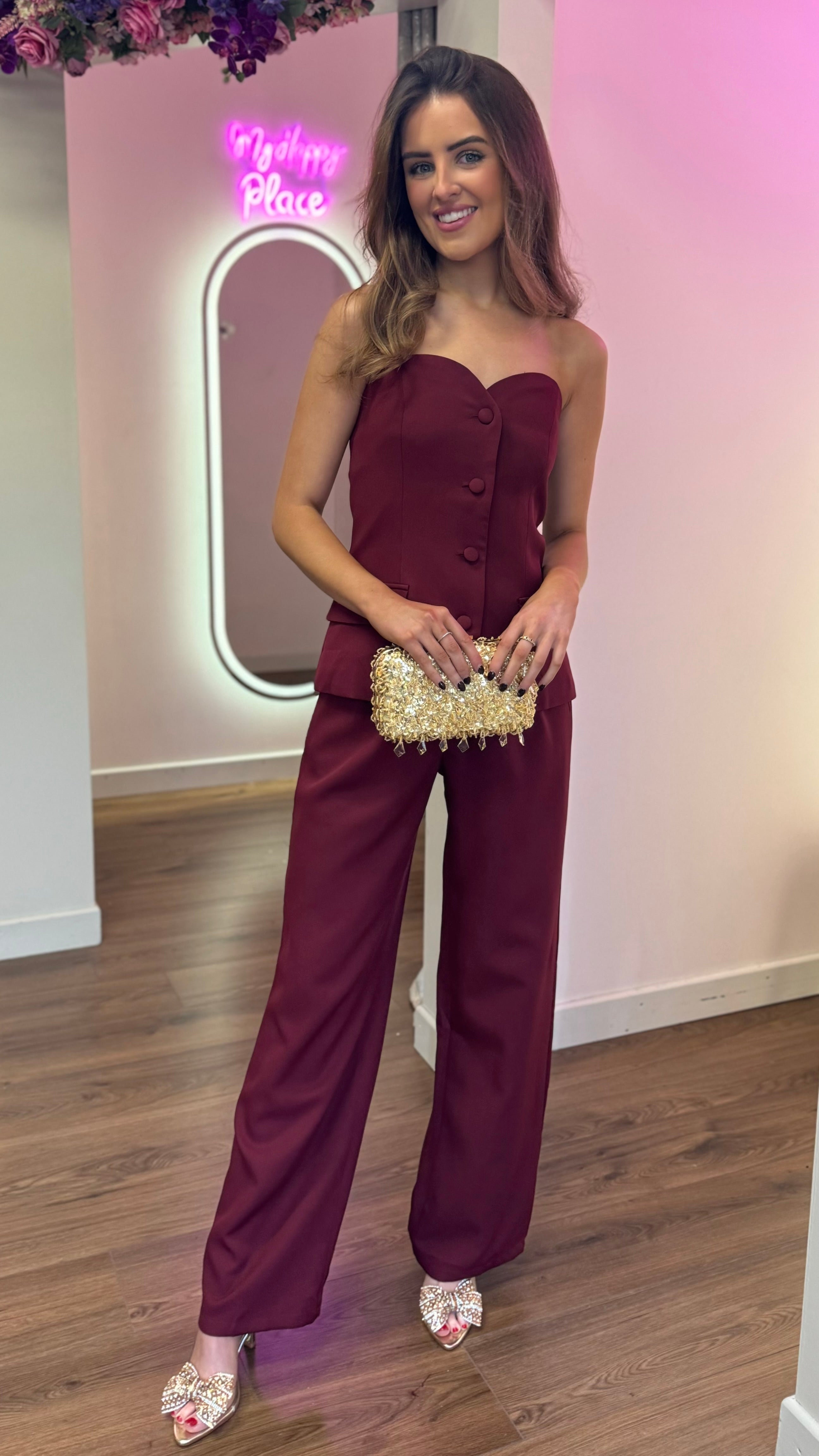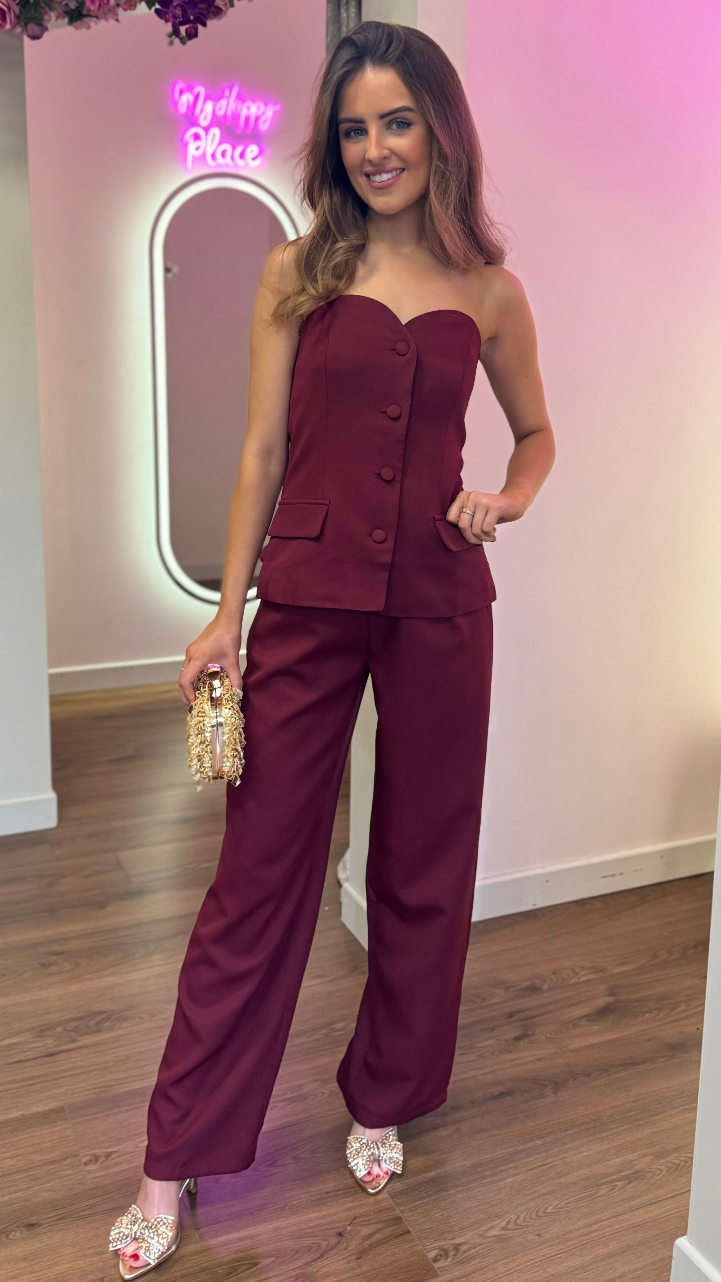 Farrah Burgundy Bustier Top & Trousers Co-Ord