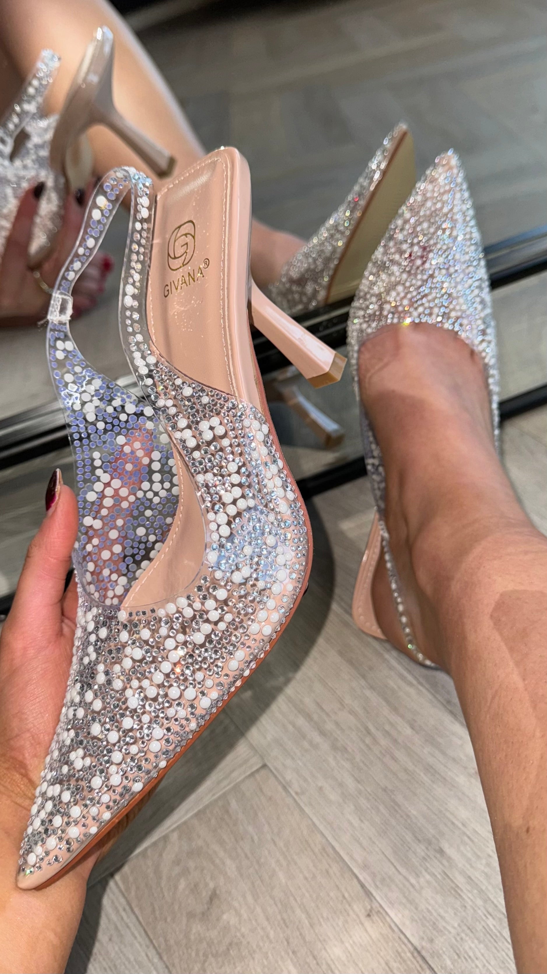 Christie Beige Diamante & Pearl Embellished Slingback Stilettos