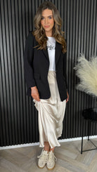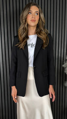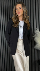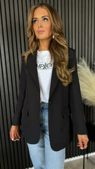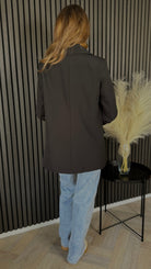 This Toni Black Oversized Blazer brings a playful and quirky touch to your wardrobe. Its collared design and faux pockets add a touch of sophistication, while the oversized fit allows for comfort and versatility. An essential addition for anyone looking to show off their unique style.