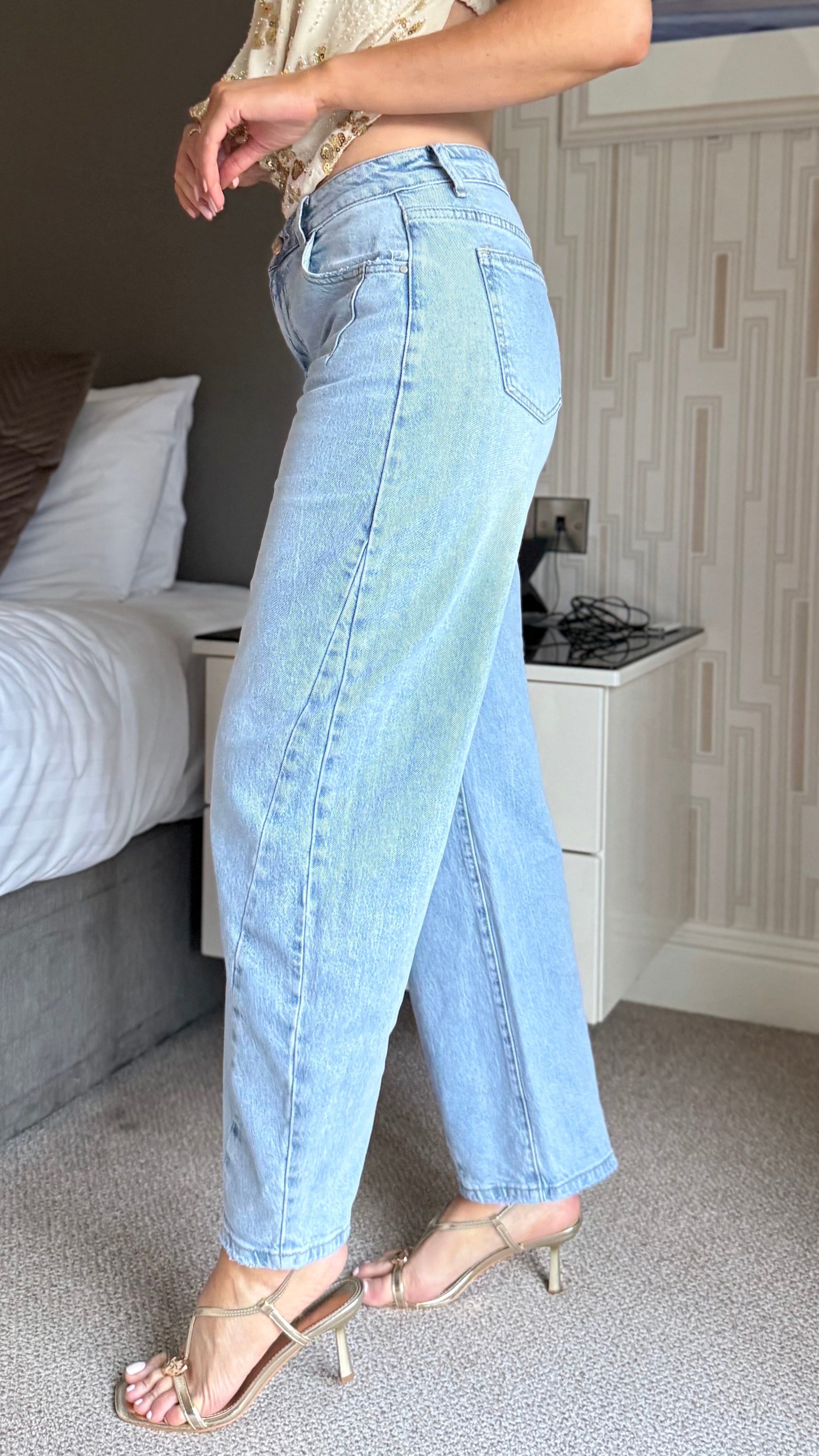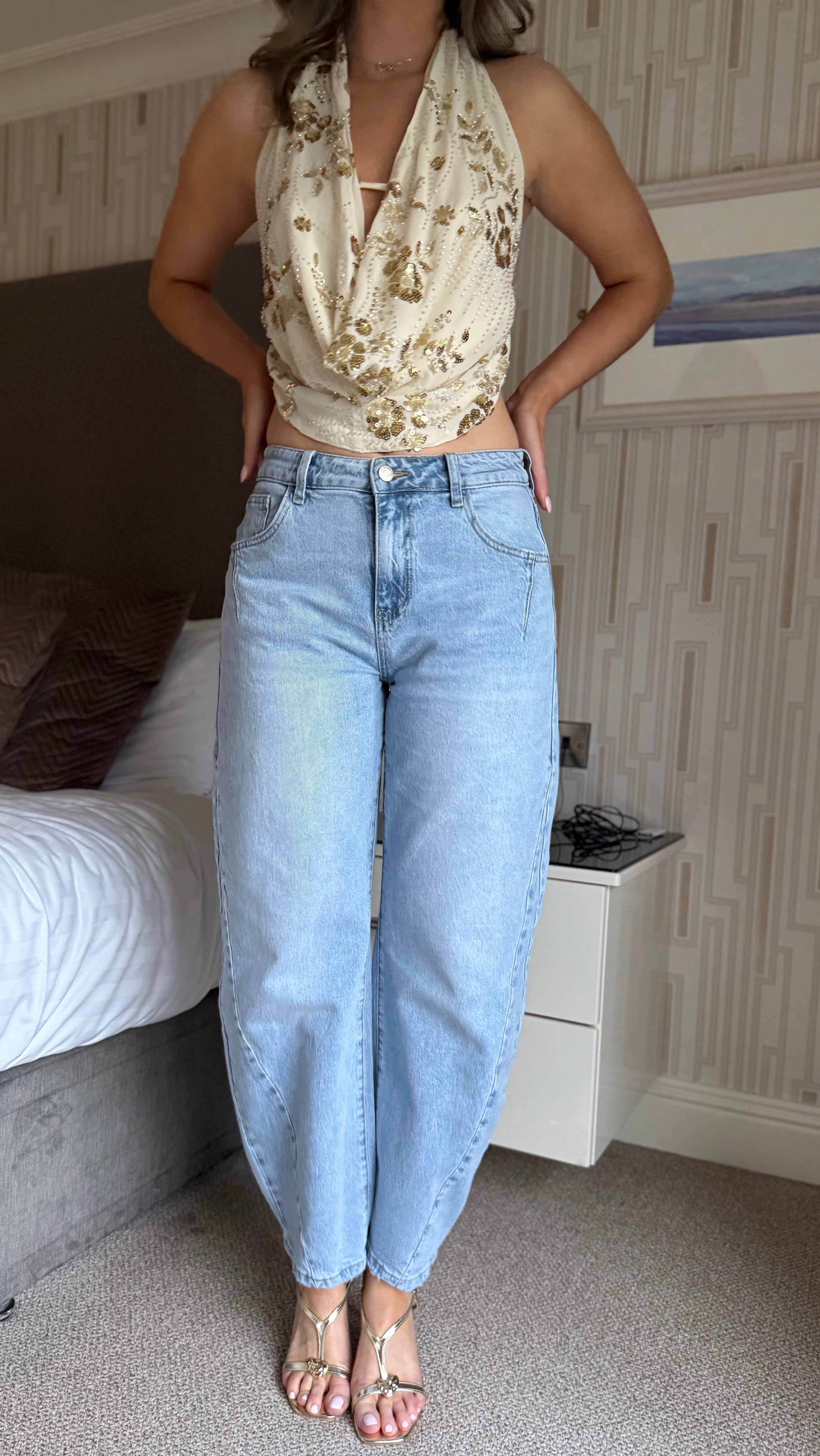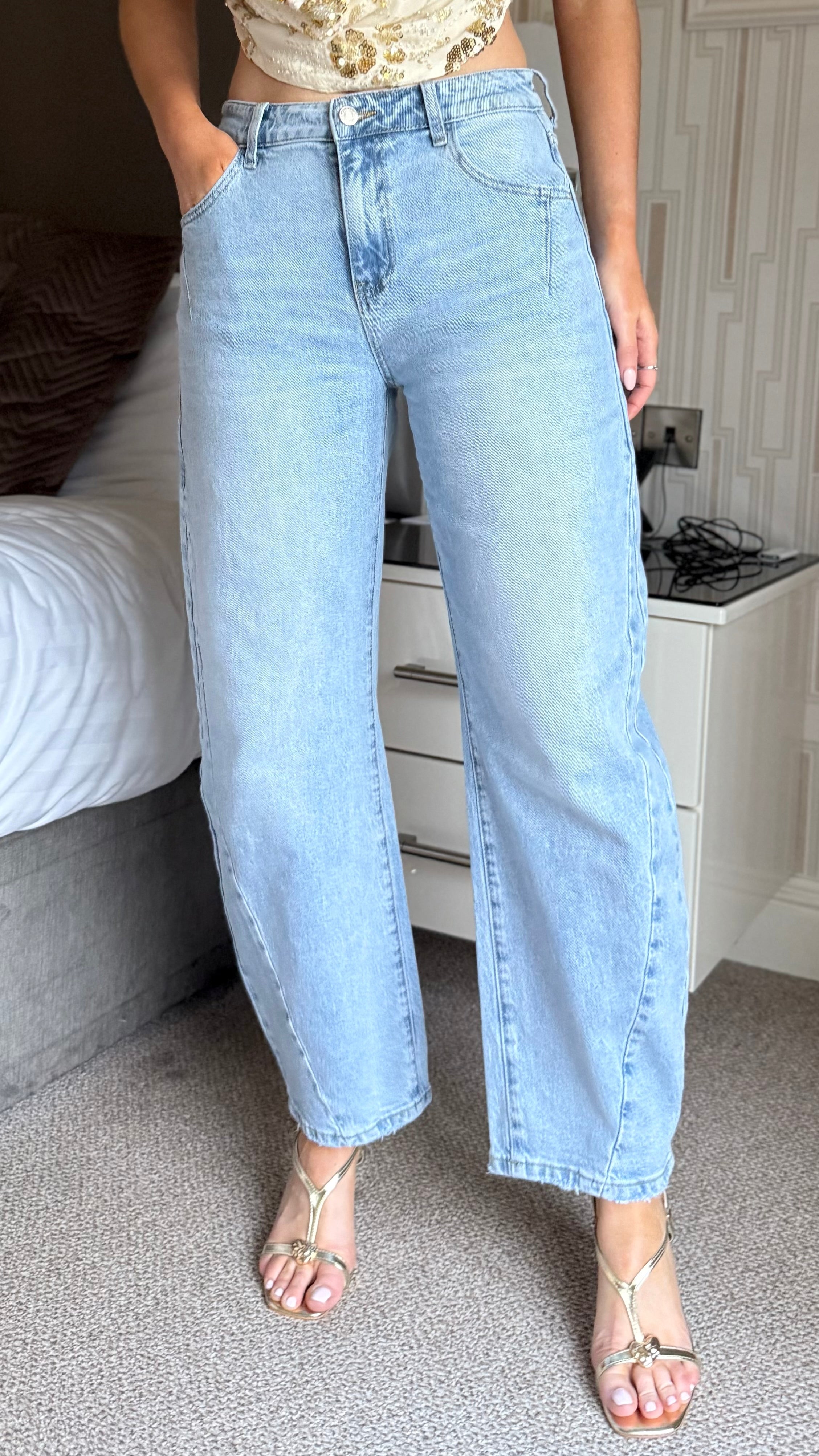 ✨ Introducing the Fenna Light Blue Barrel Jeans – your new go-to for effortless cool! 👖 These barrel-leg beauties feature a relaxed, trendy silhouette that works with everything in your wardrobe. The crisp light blue wash keeps things fresh and versatile, perfect for dressing up or down. Comfort meets style in this must-have denim piece! 💙