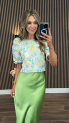 Harper Green & Blue Floral Printed Puff Sleeve Top