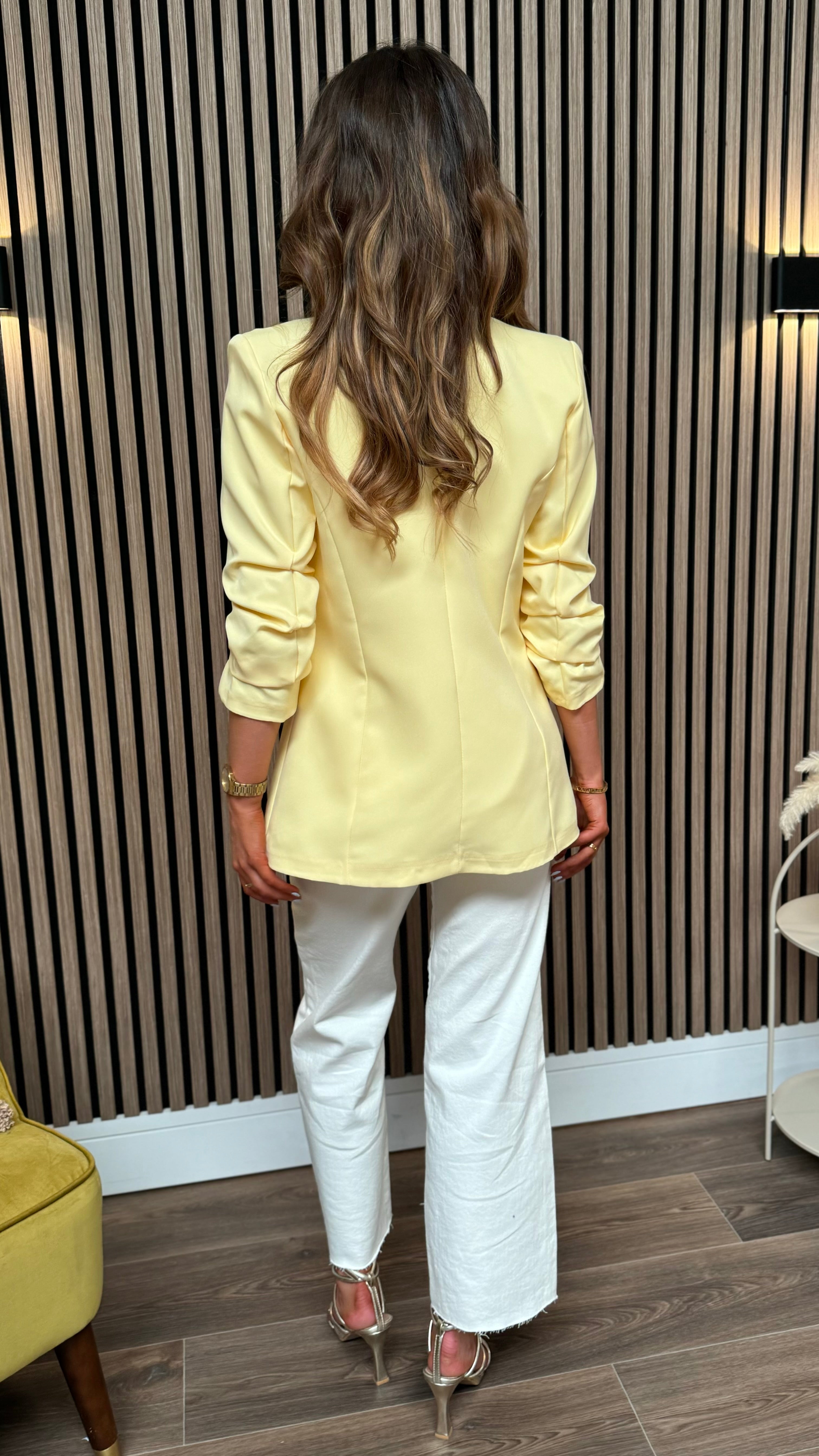 Look sharp and feel comfy with this McKinley Lemon Ruched Sleeve Blazer! It's got all the features you need and then some: ruched sleeves, a trendy collar detail, faux pockets, and a lining to keep you comfortable 🔥
