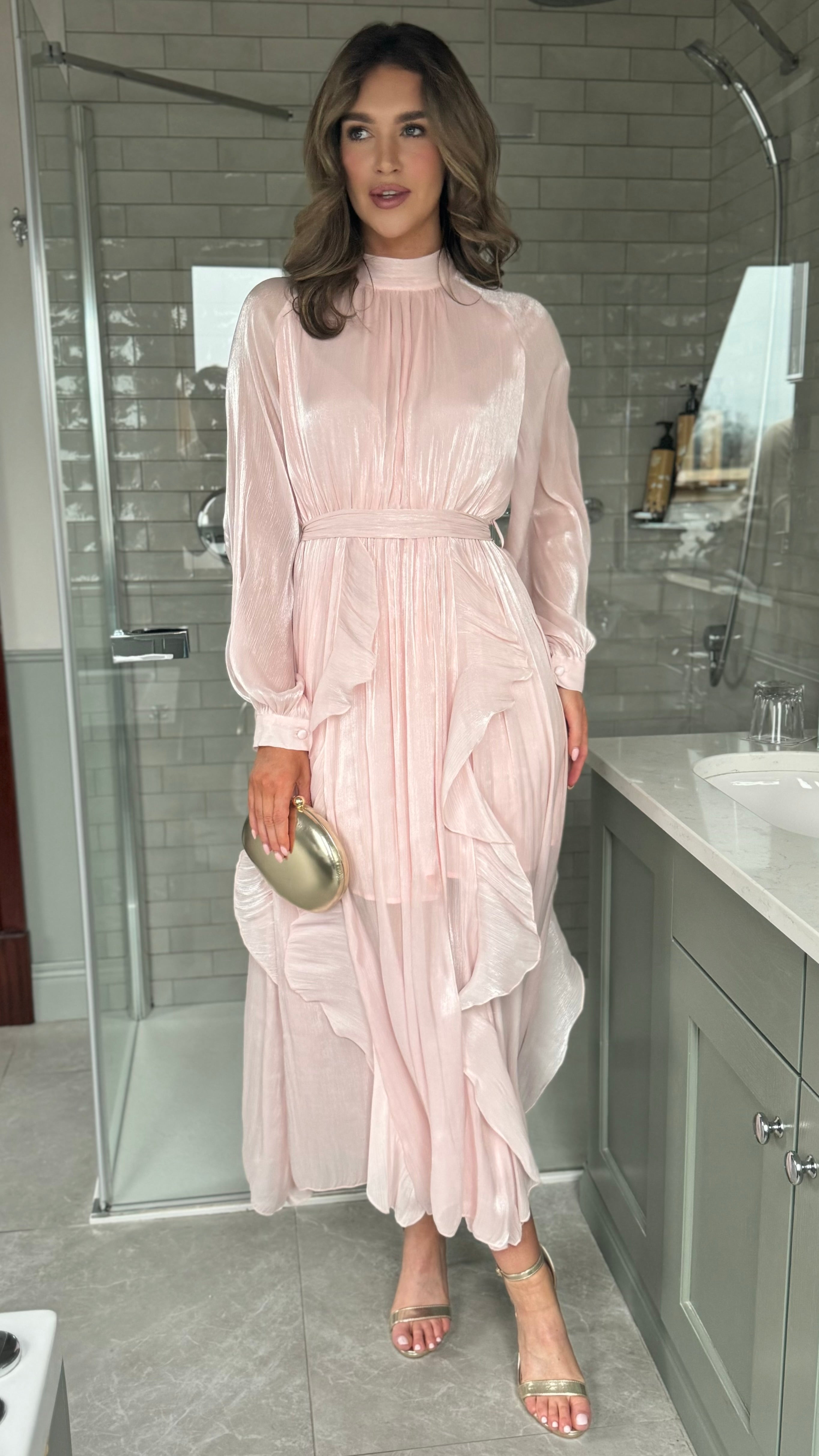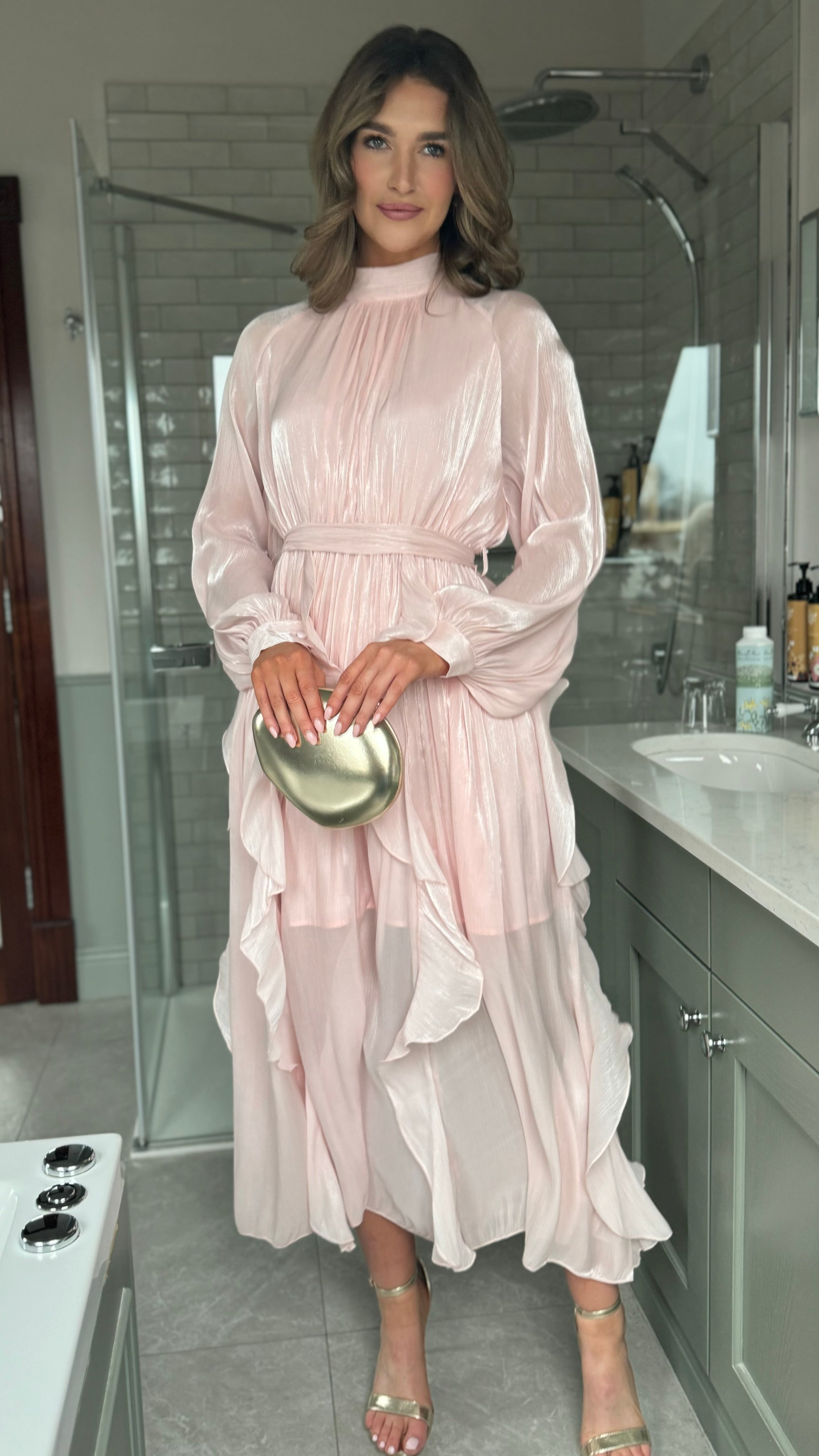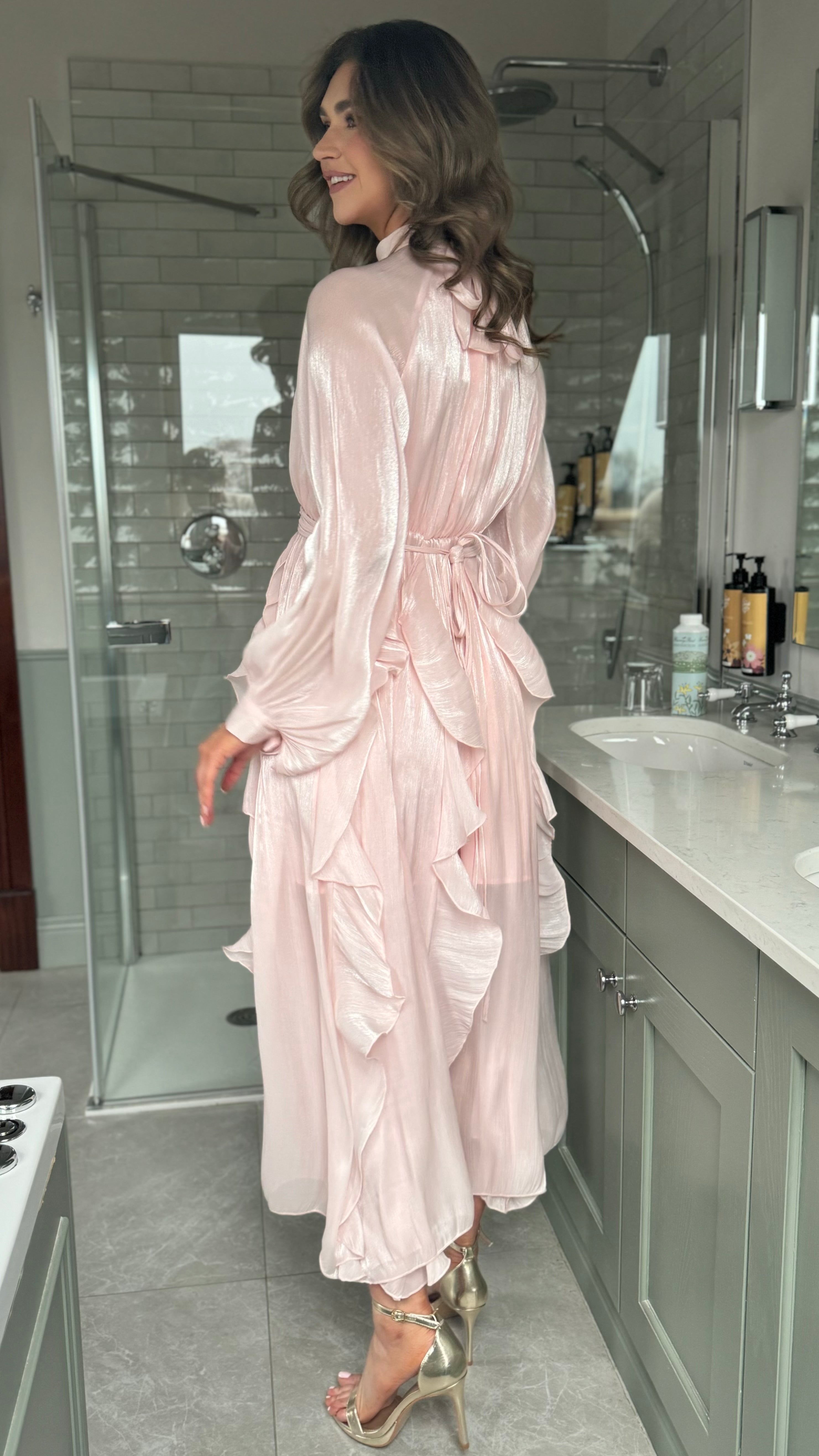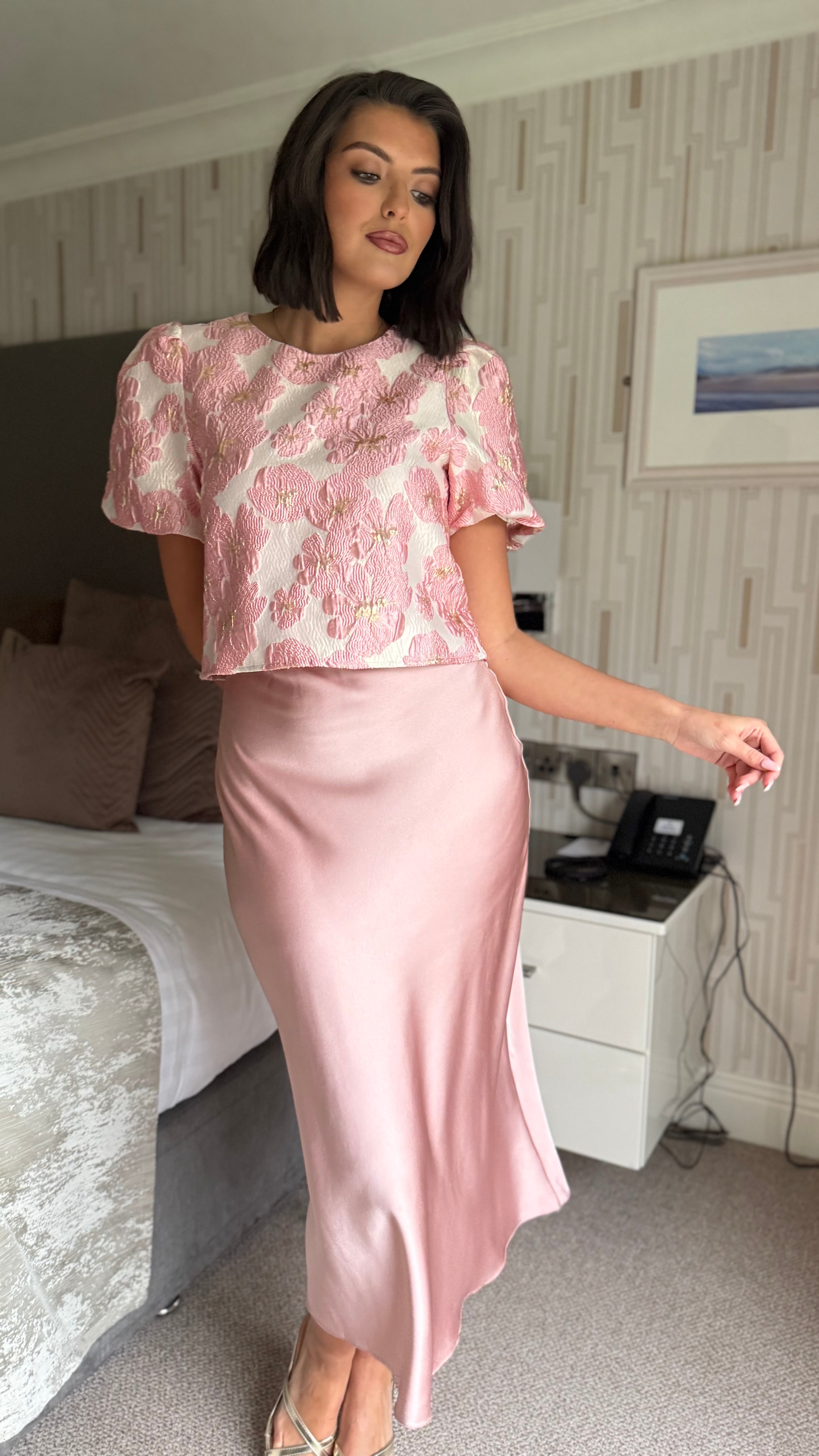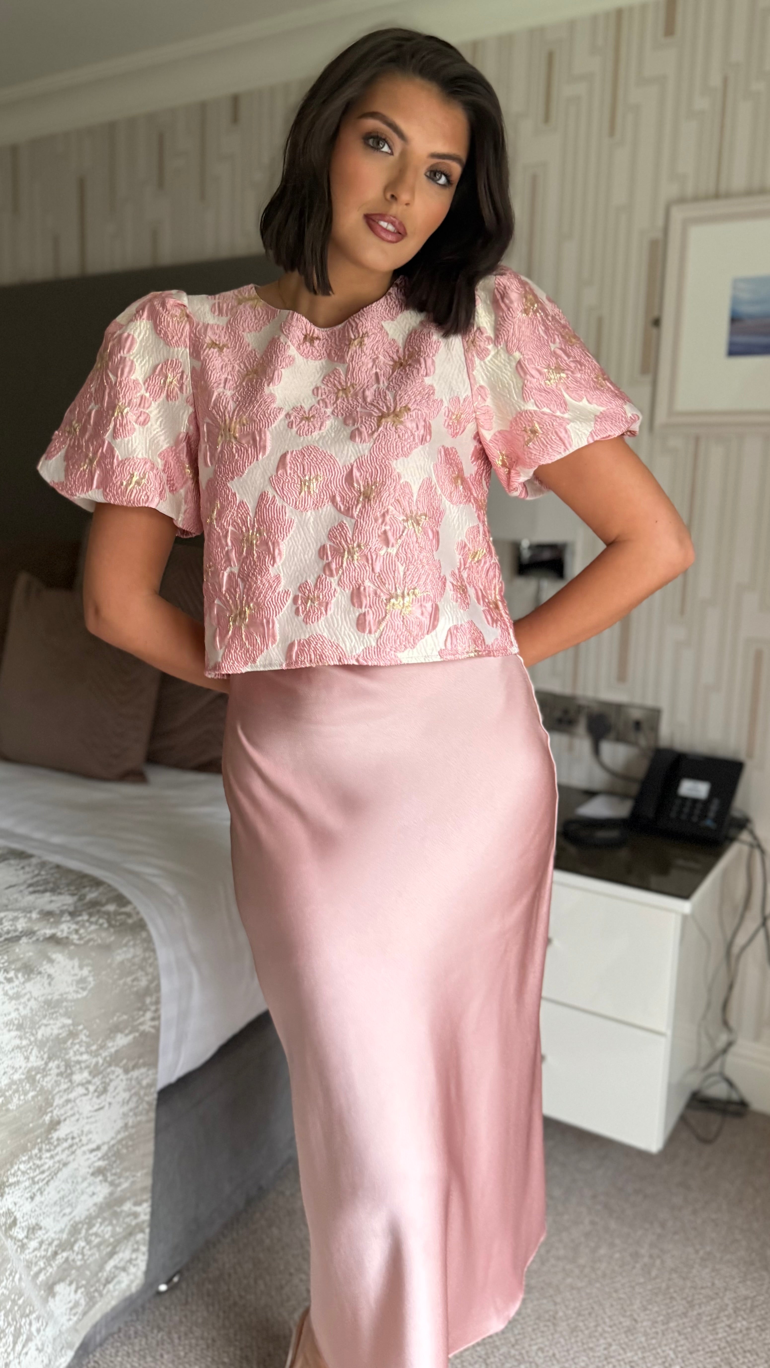 Anaya Light Pink Floral Brocade Puff Sleeve Top