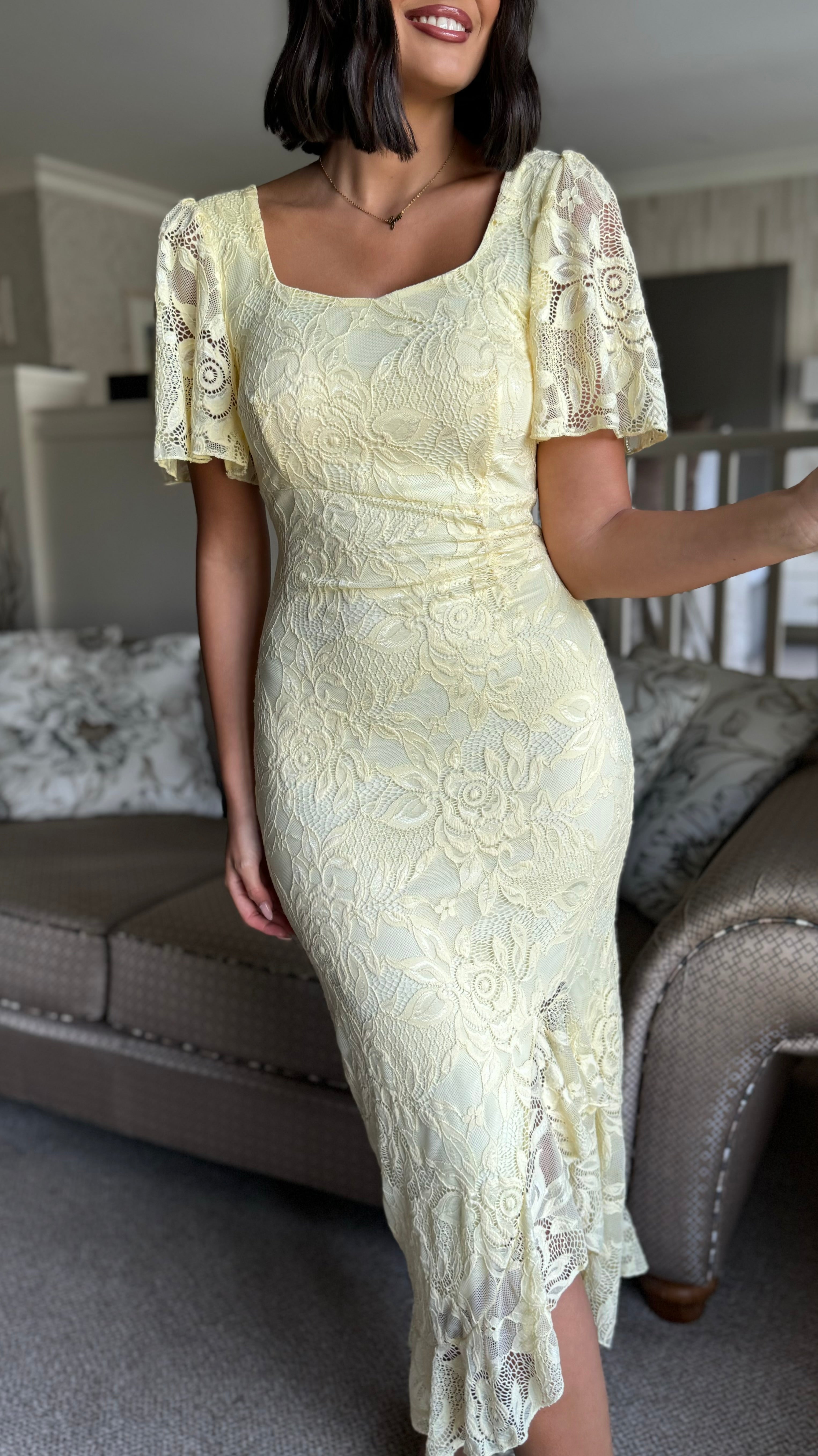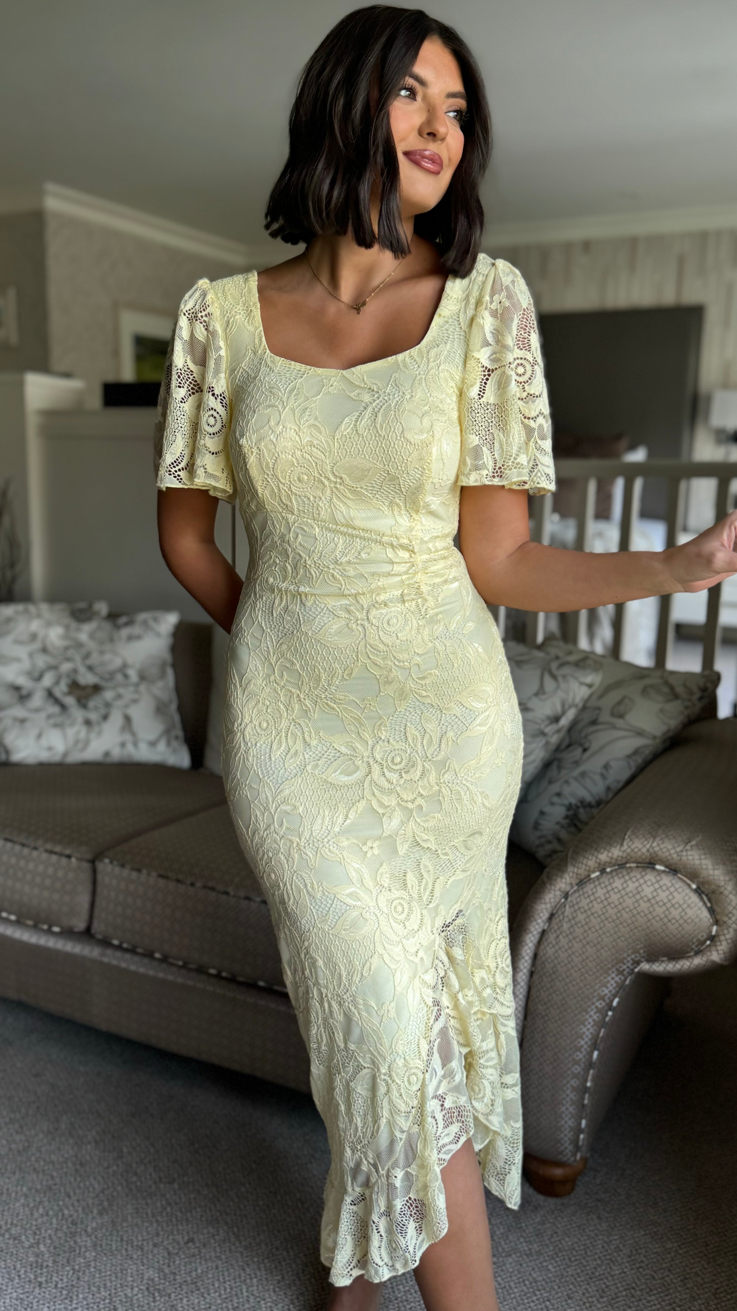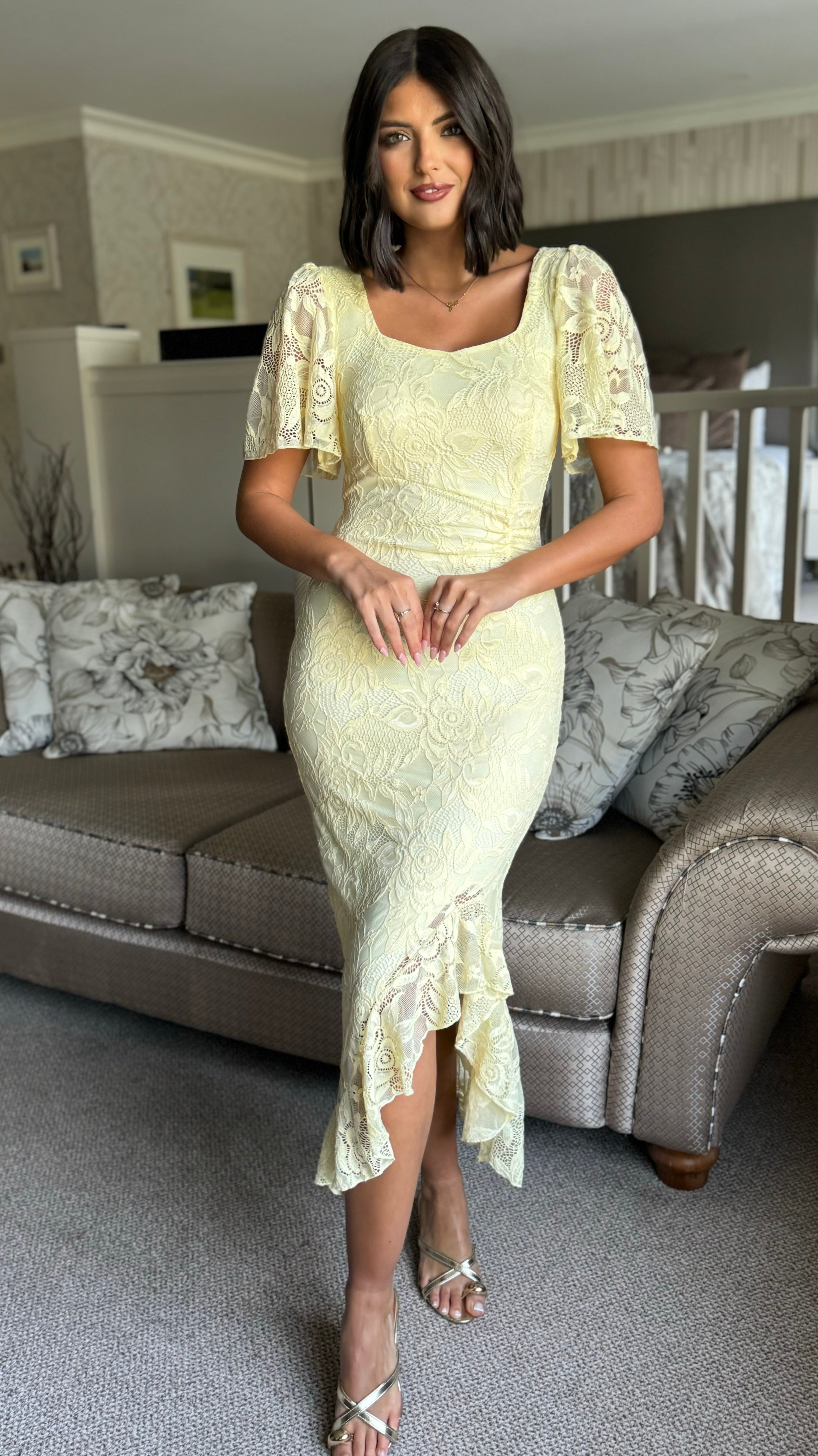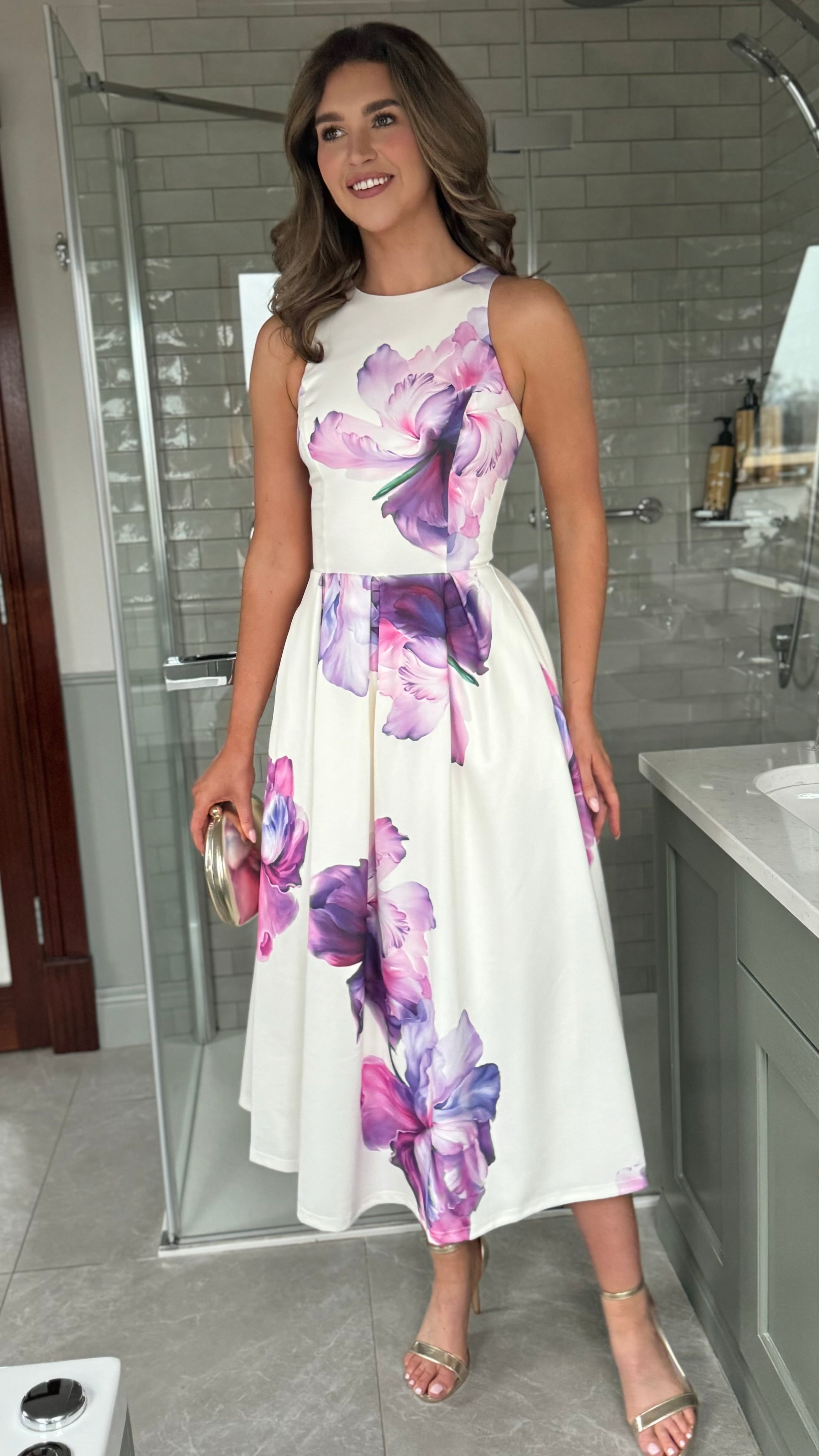 Eden Cream & Lilac Floral Pleated Midi Dress