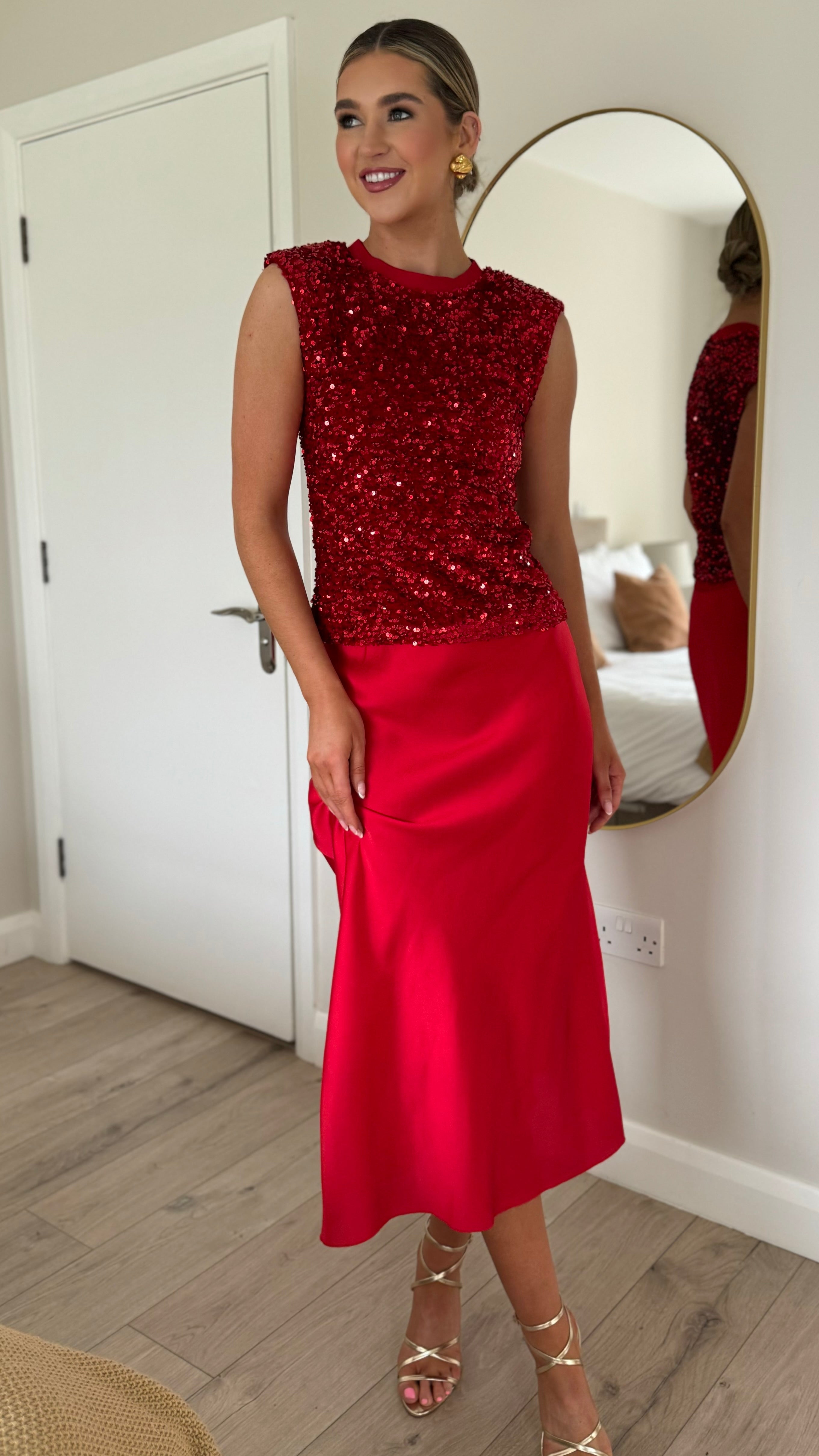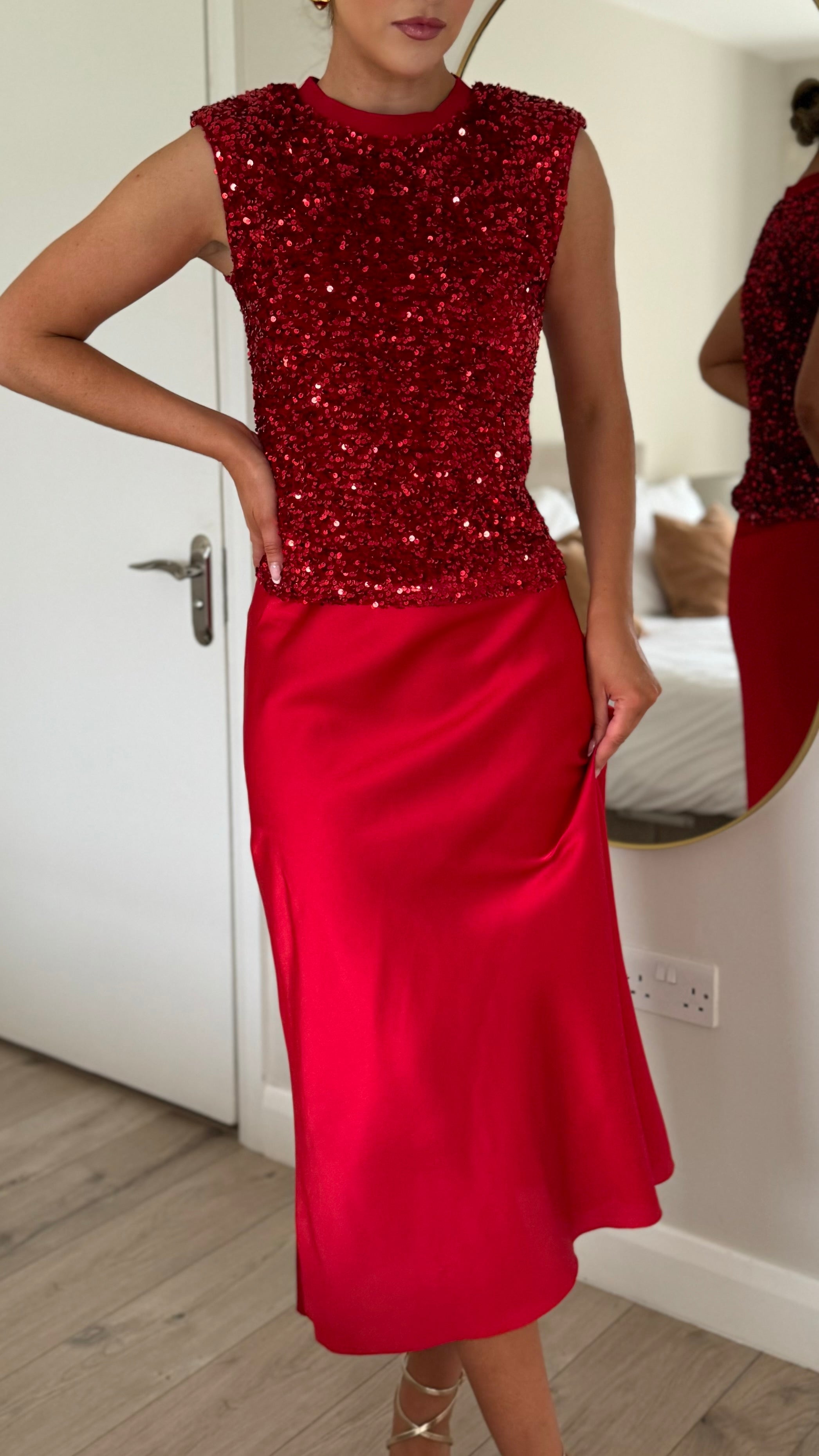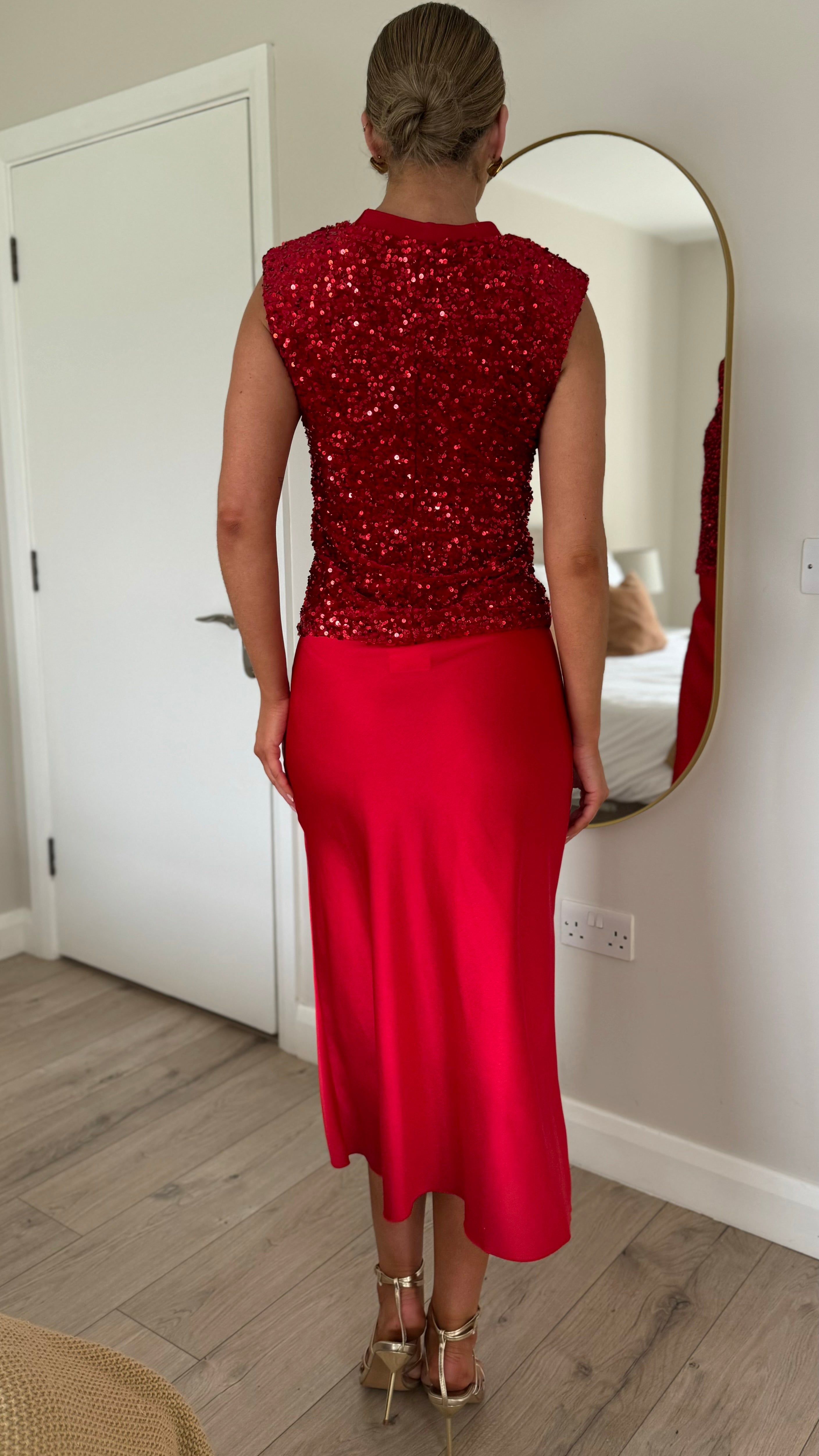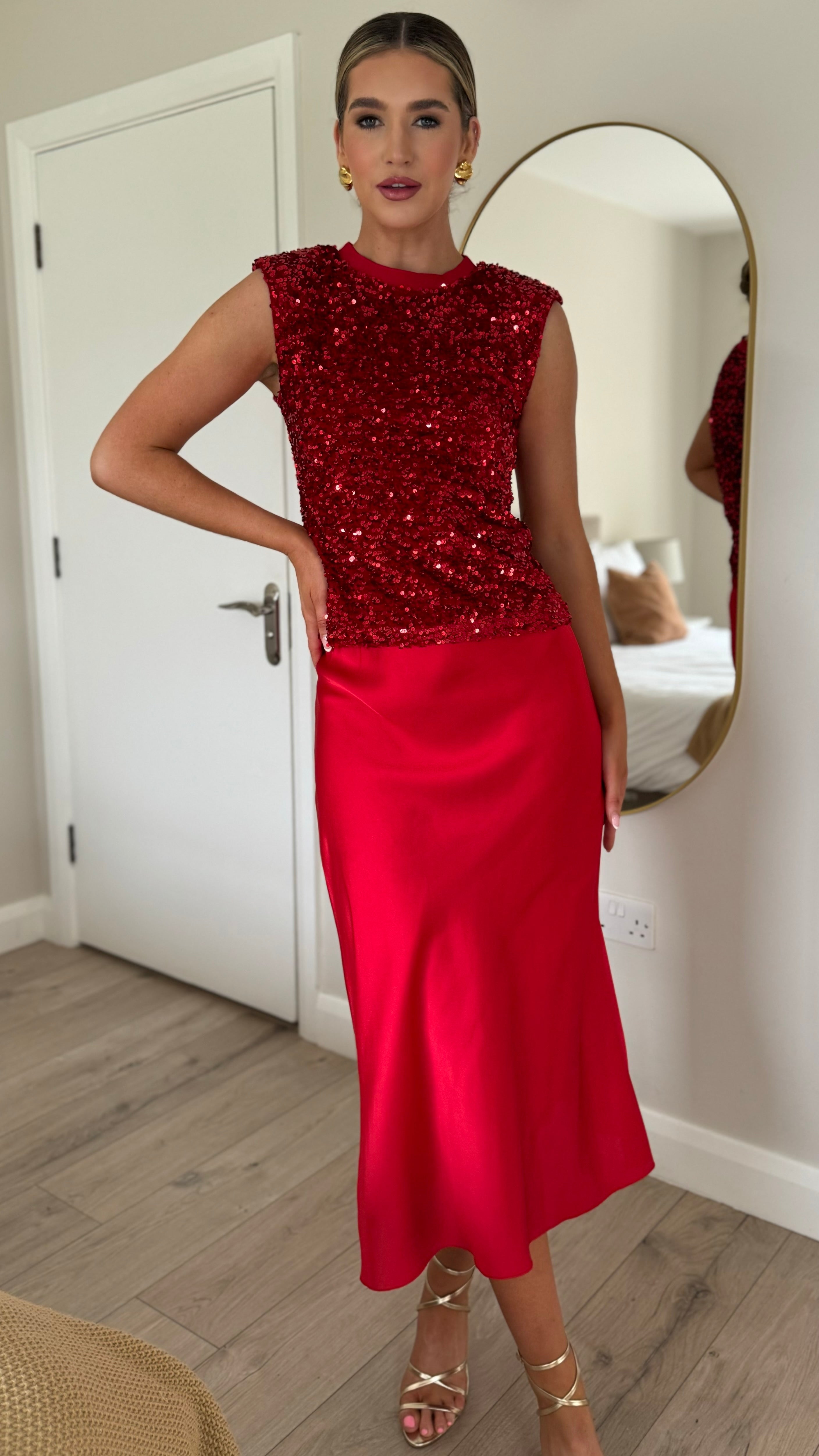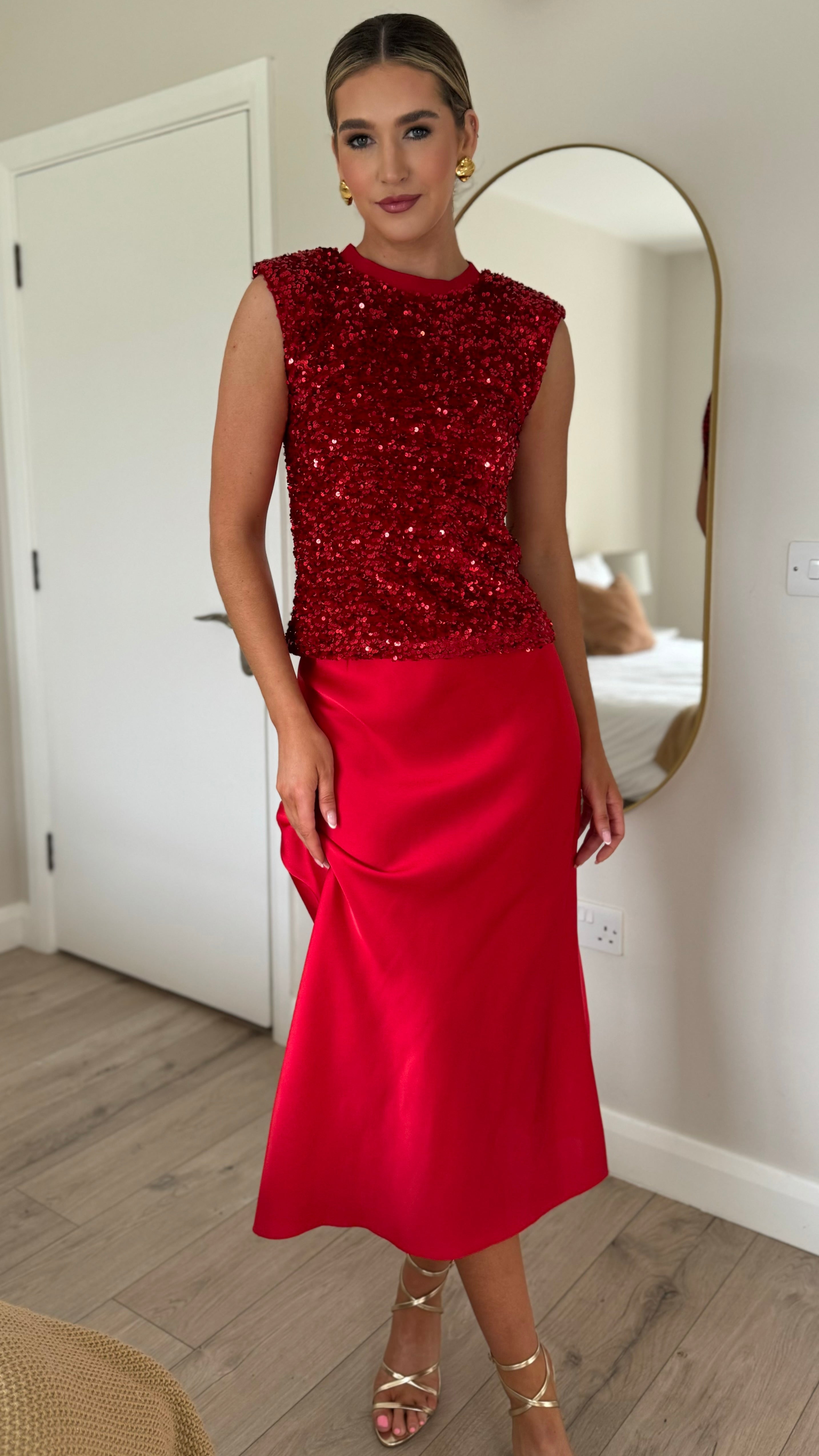 Yaella Red Midi Skirt