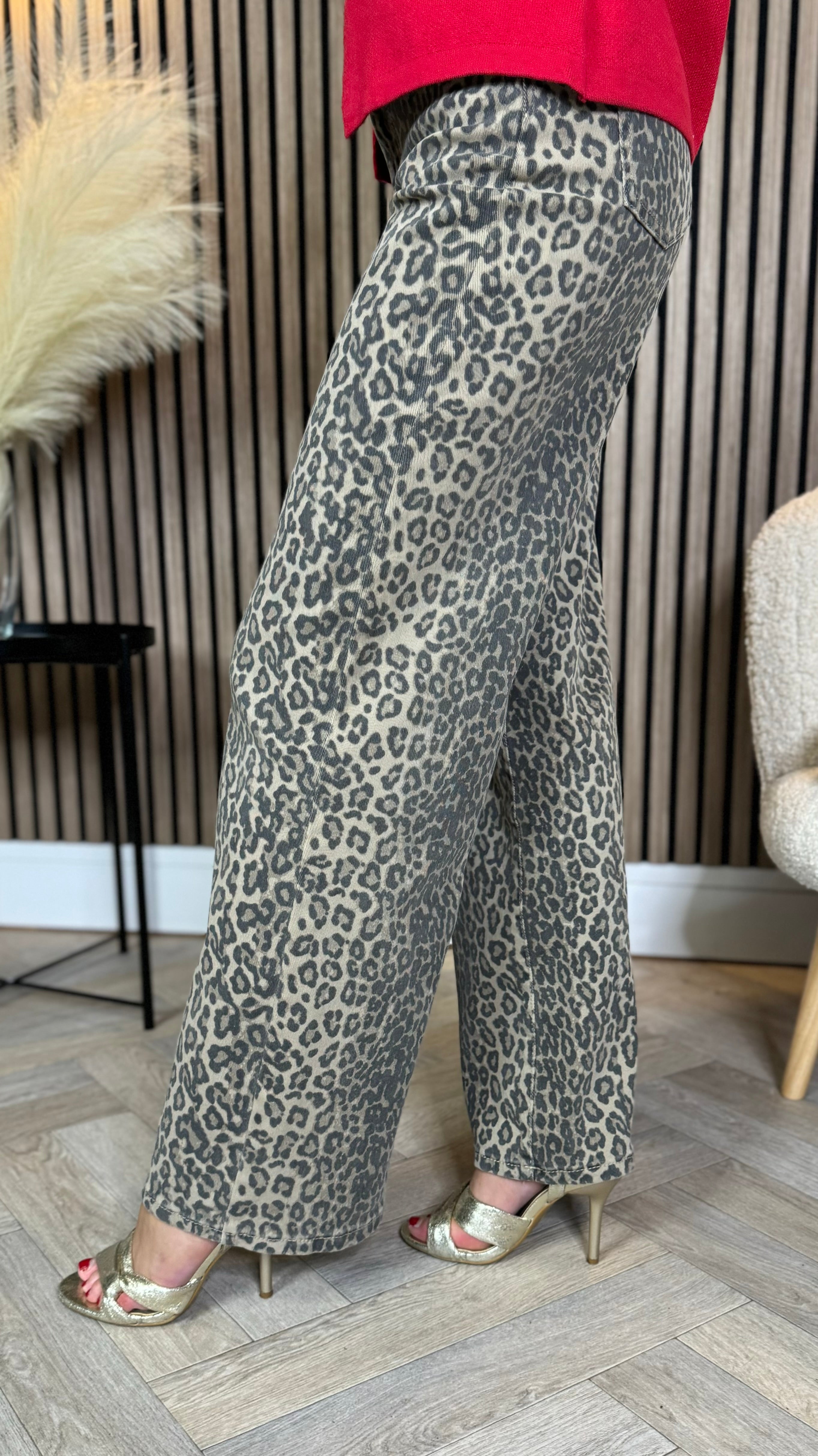 Adley Beige & Black Leopard Print Dad Fit Mid Rise Jeans