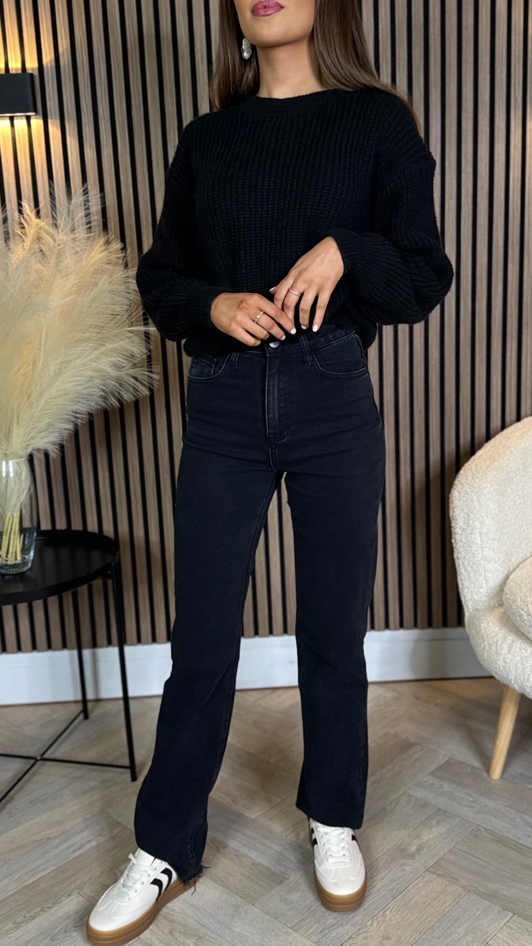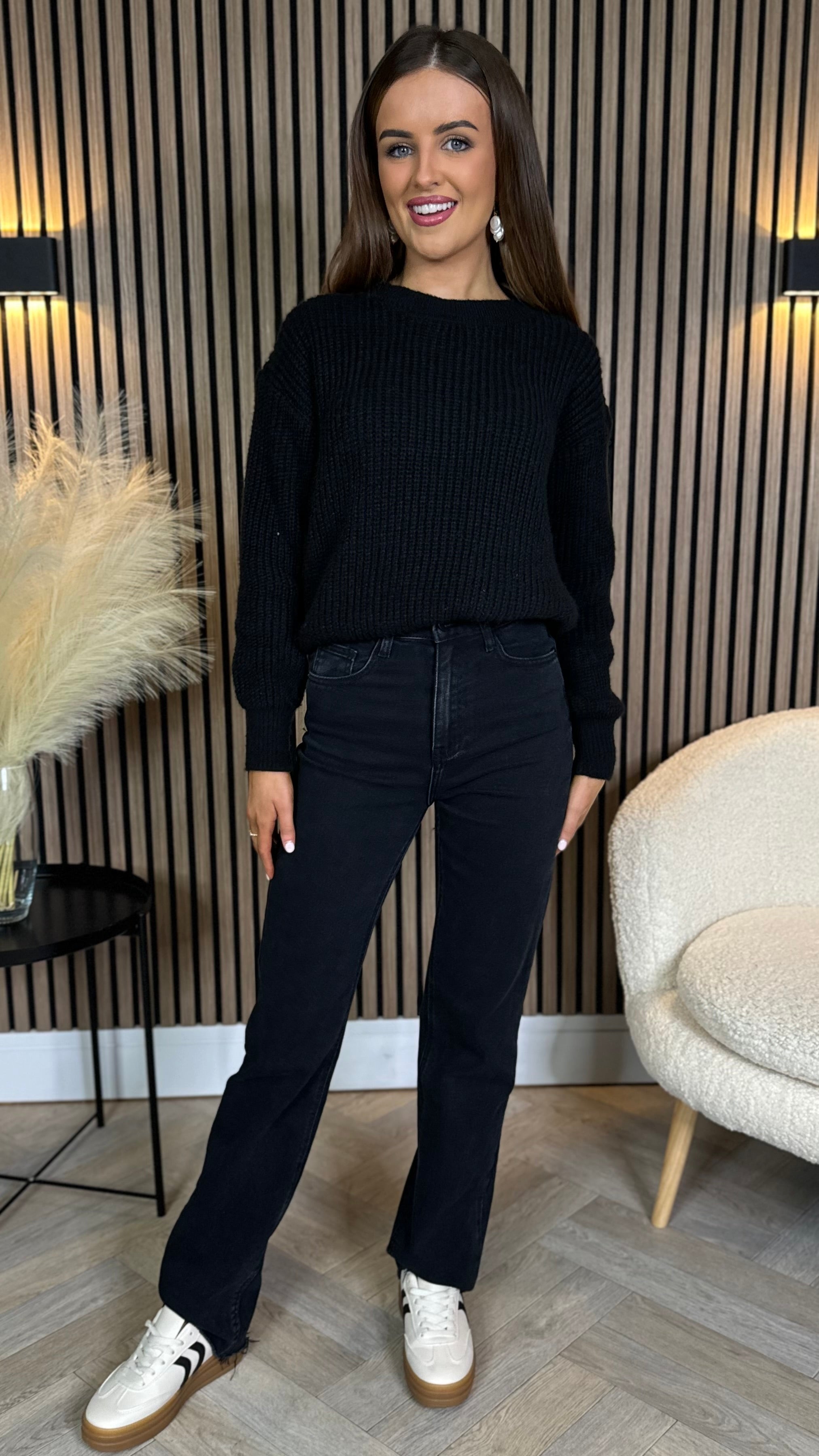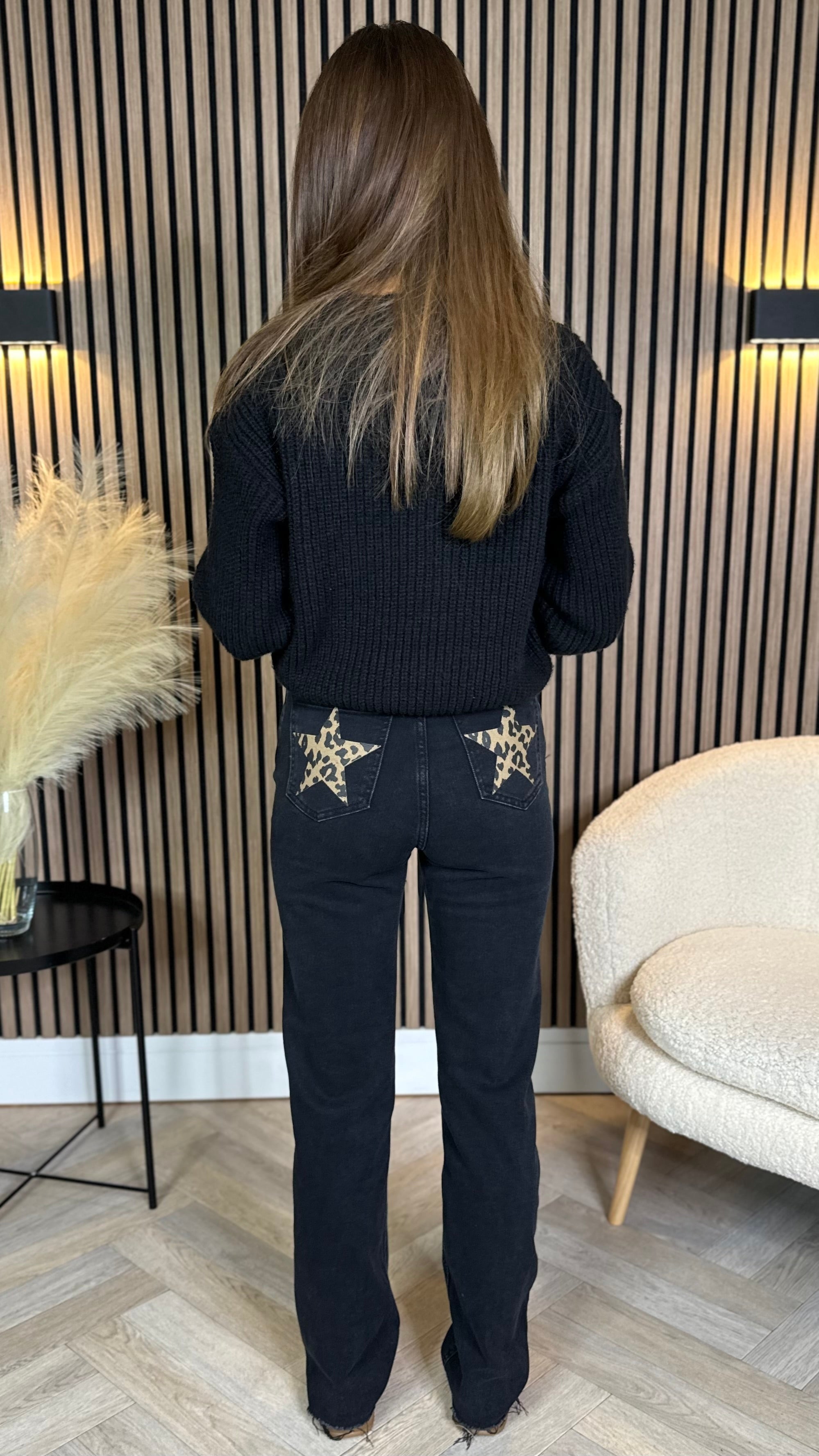 Quest Black Straight Leg Frayed Hem Pocket Detail Jeans