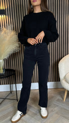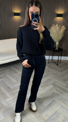 Quest Black Straight Leg Frayed Hem Pocket Detail Jeans