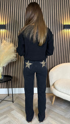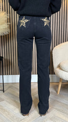Upgrade your denim game with Quest Black Straight Leg Frayed Hem Pocket Detail Jeans! 🦁 Perfect for any occasion, these black jeans feature a playful frayed hem and trendy leopard pocket detail. Don't miss out on adding these to your wardrobe! 🌟