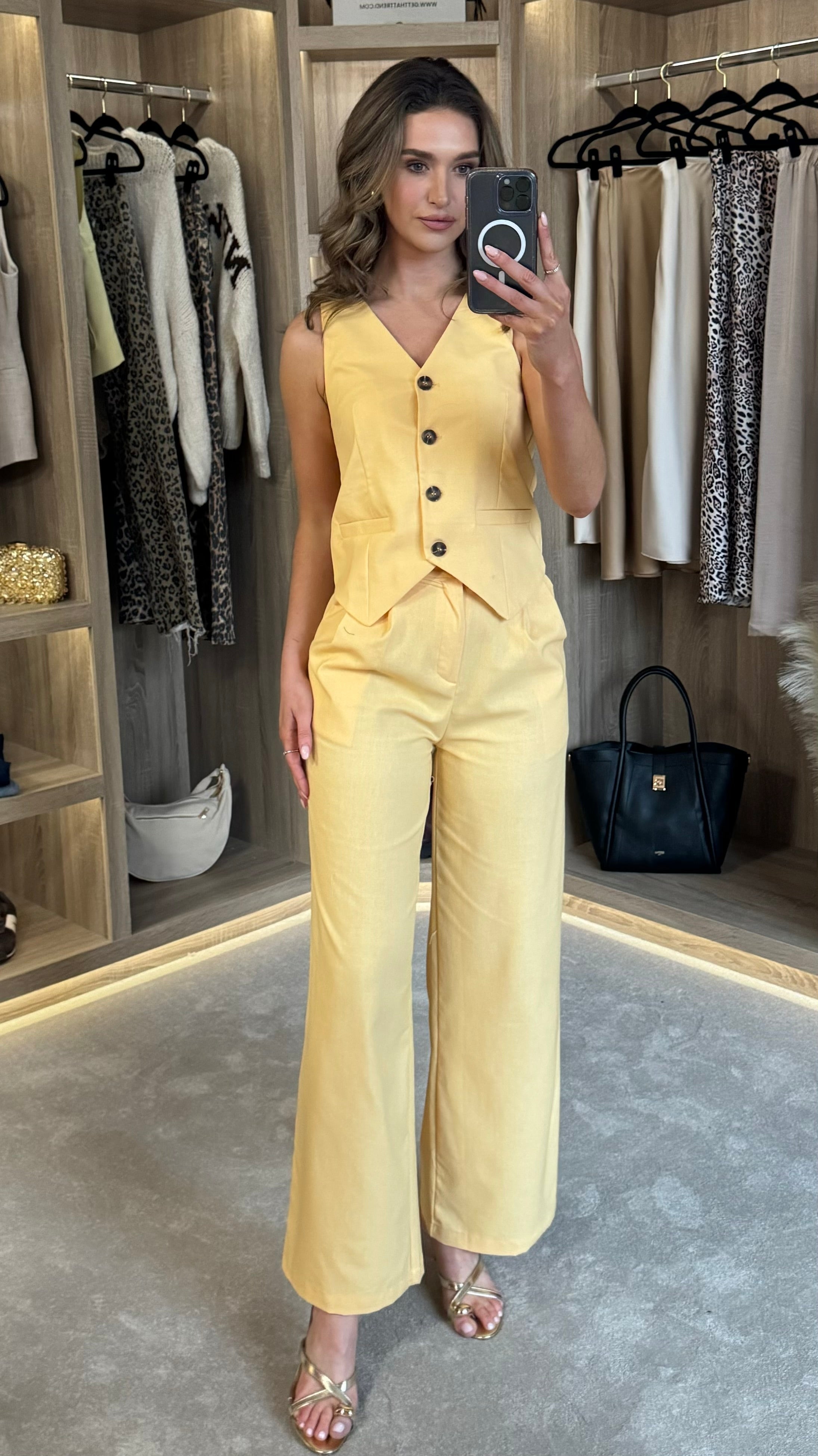 Alice Golden Yellow Waistcoat and Wide Leg Trouser Co-Ord