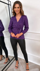 Make heads turn everywhere you go with the Bowie Purple Sequin Long Sleeve Top! Show off your style with this statement piece featuring dazzling purple sequins that'll glimmer and shine with every step. Step out in style and let your creative sparkle! 🤩 💜