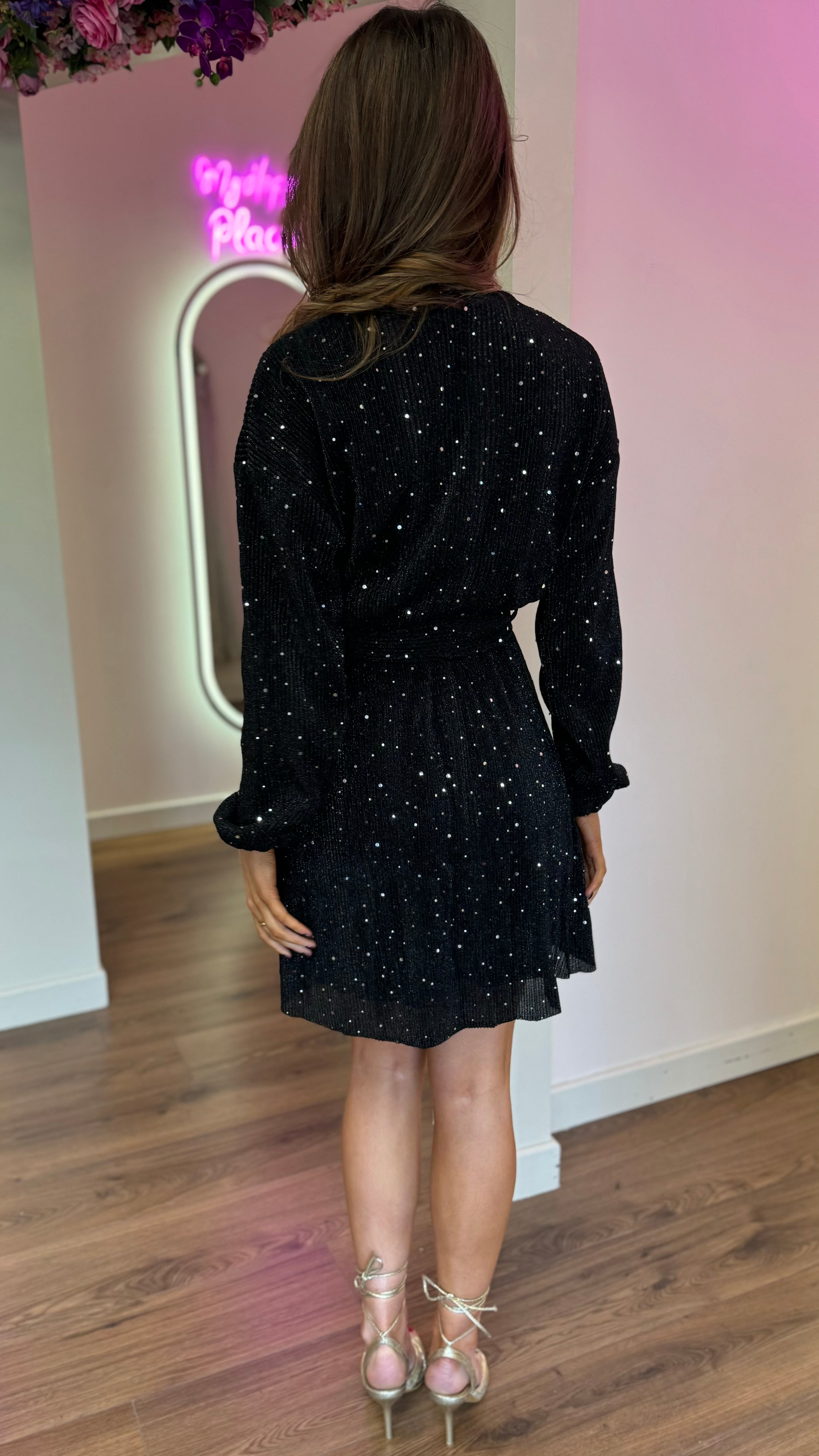 Christina Black Sequin Detail Long Sleeve Mini Dress
