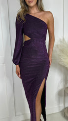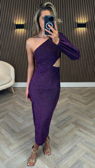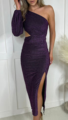 Milana Purple Sequin One Sleeve Cut Out Midi Dress