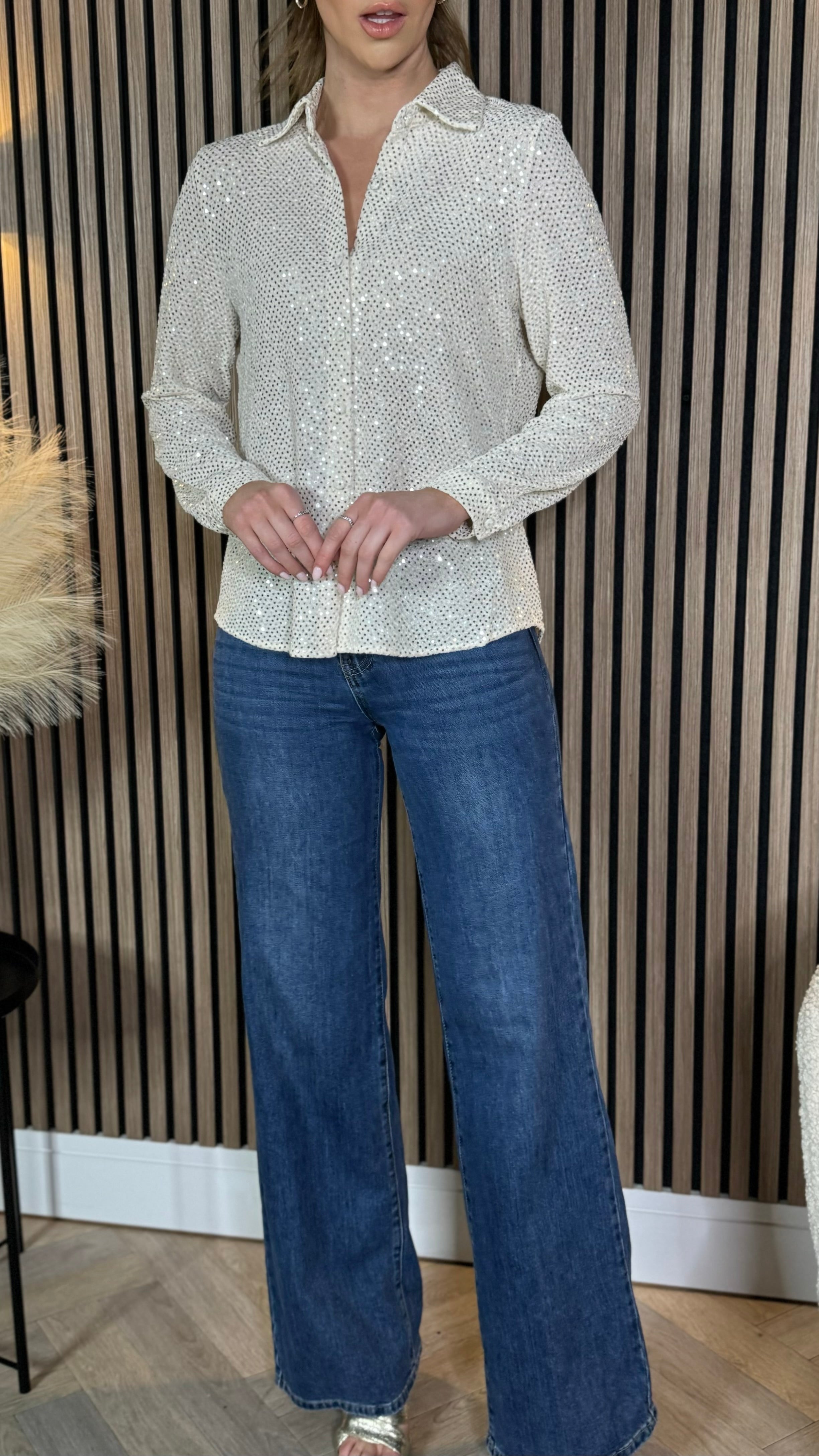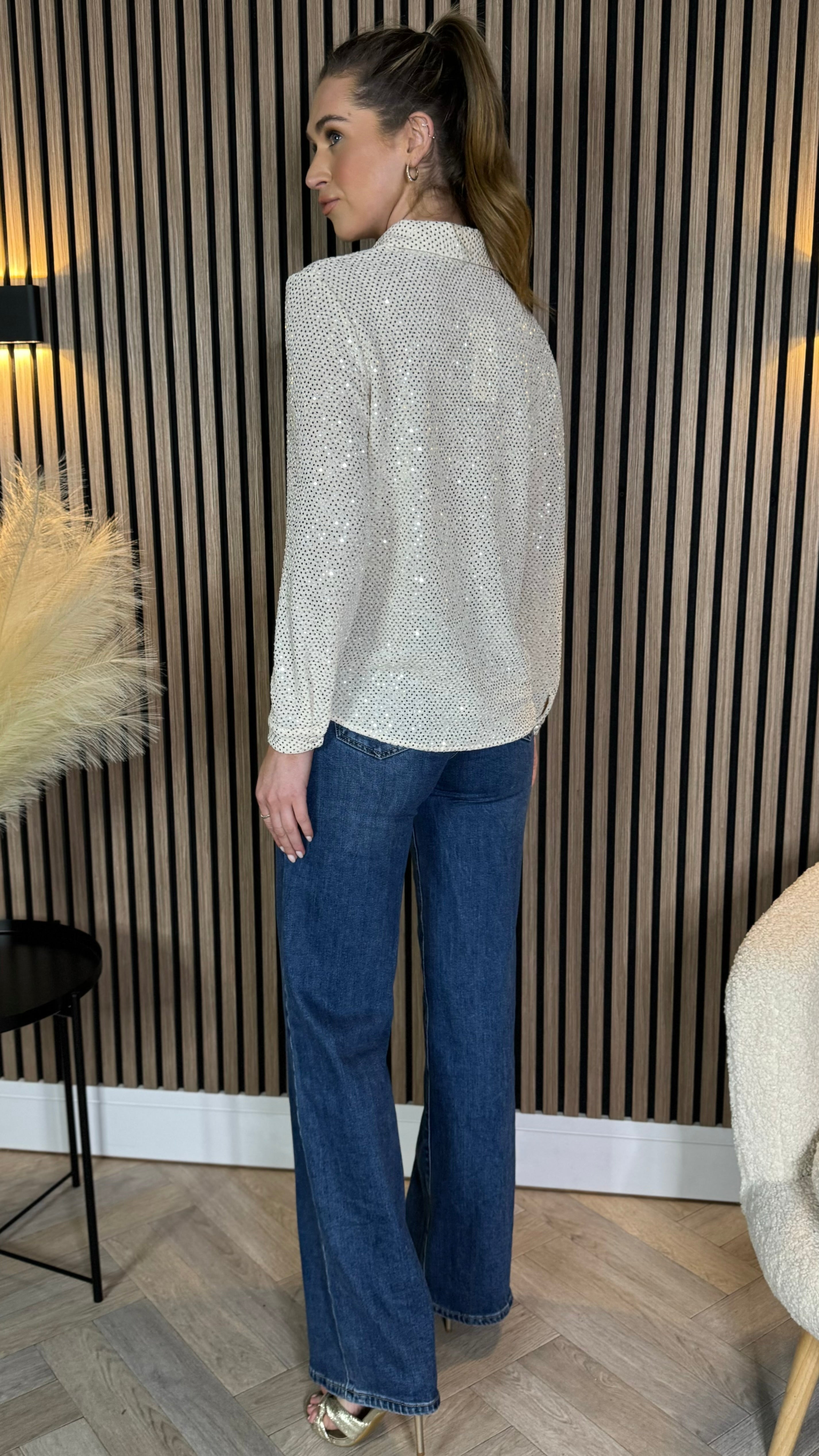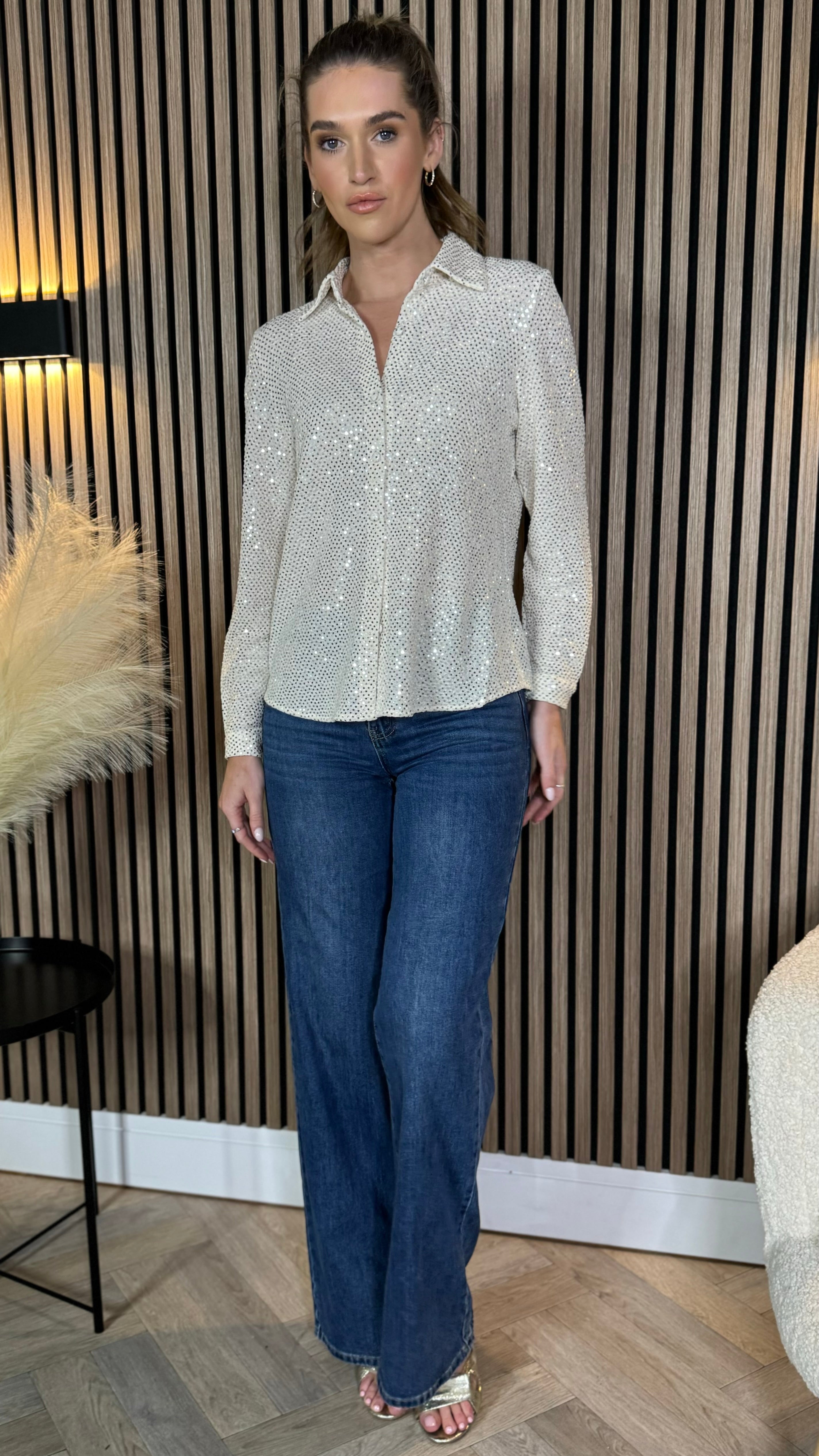 This Milani Beige Sequin Detail Shirt adds a touch of glam to your wardrobe with delicate sequin accents and covered buttons. Be effortlessly stylish and stand out in any setting with this must-have shirt! ✨