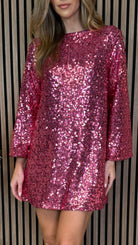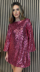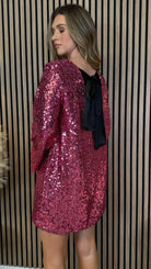 Get ready to shine with the Nikita Pink Sequin Mini Dress! With its dazzling sequins and adorable black bow detail, this dress is the perfect balance of fun and elegance. Don't be afraid to stand out and make a statement with this unique and playful dress. 💫🎀