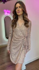 Paulina Gold Sequin Detailed Wrap Mini Dress