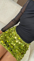 Shaina Olive Green Sequin Disc Mini Skirt
