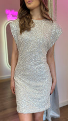 Stephanie Beige Sequin Mini Dress is ready to sparkle and shine! The defined lightly padded shoulders add a touch of sophistication to this playful and flirty mini dress. Perfect for a night out or special occasion, this dress will make you the center of attention!