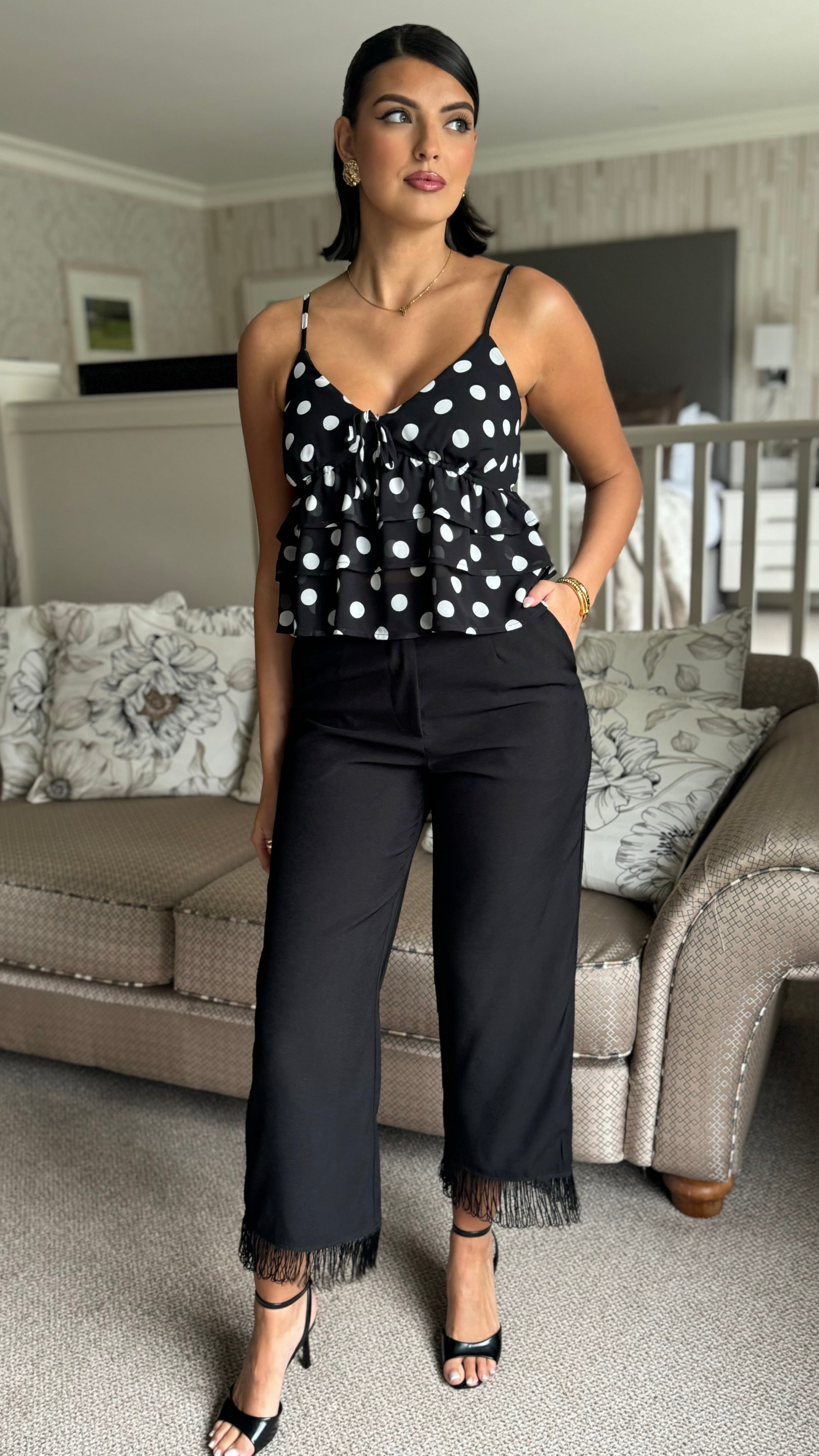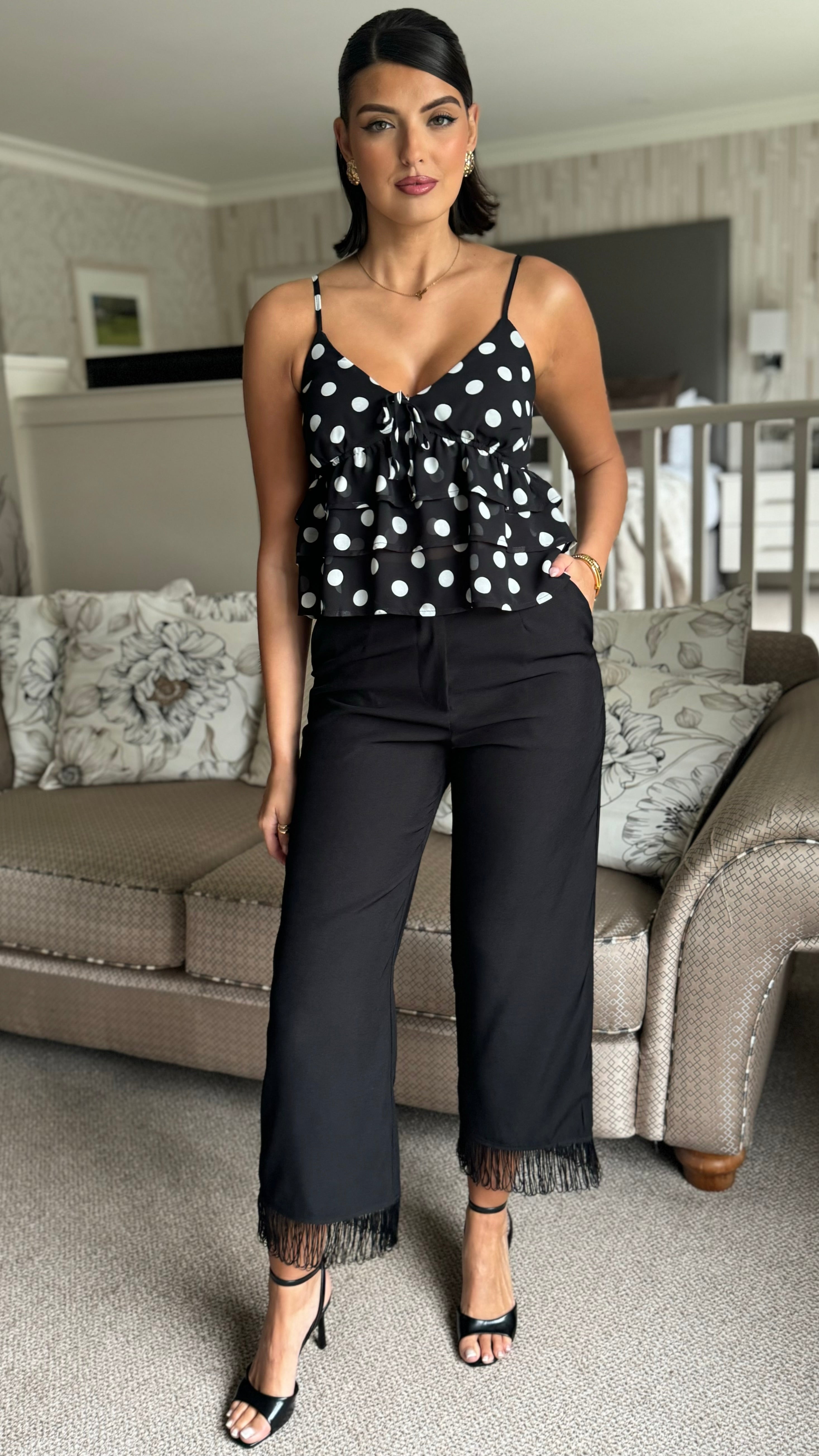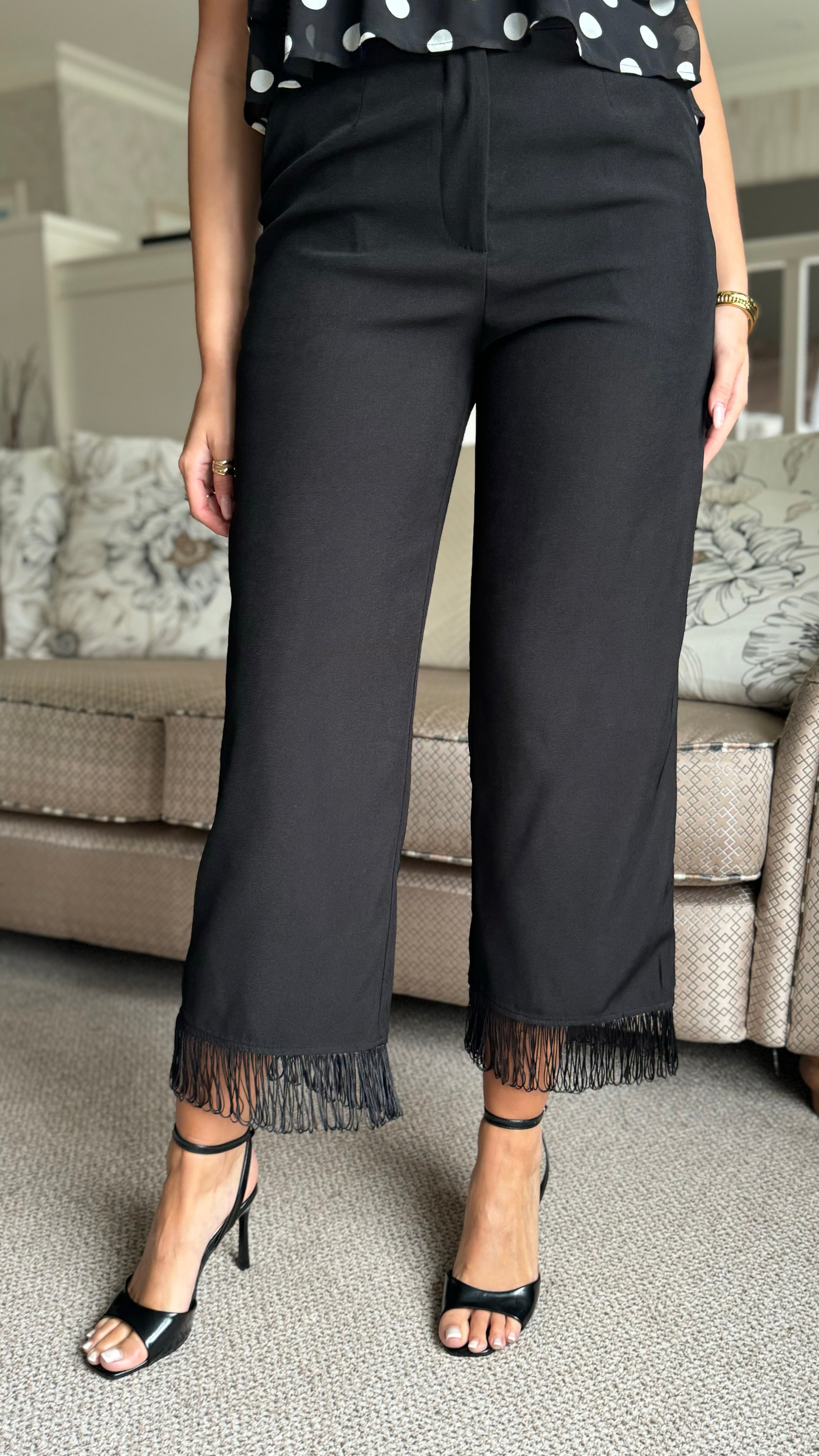 Whitley Black Fringe Hem Trousers