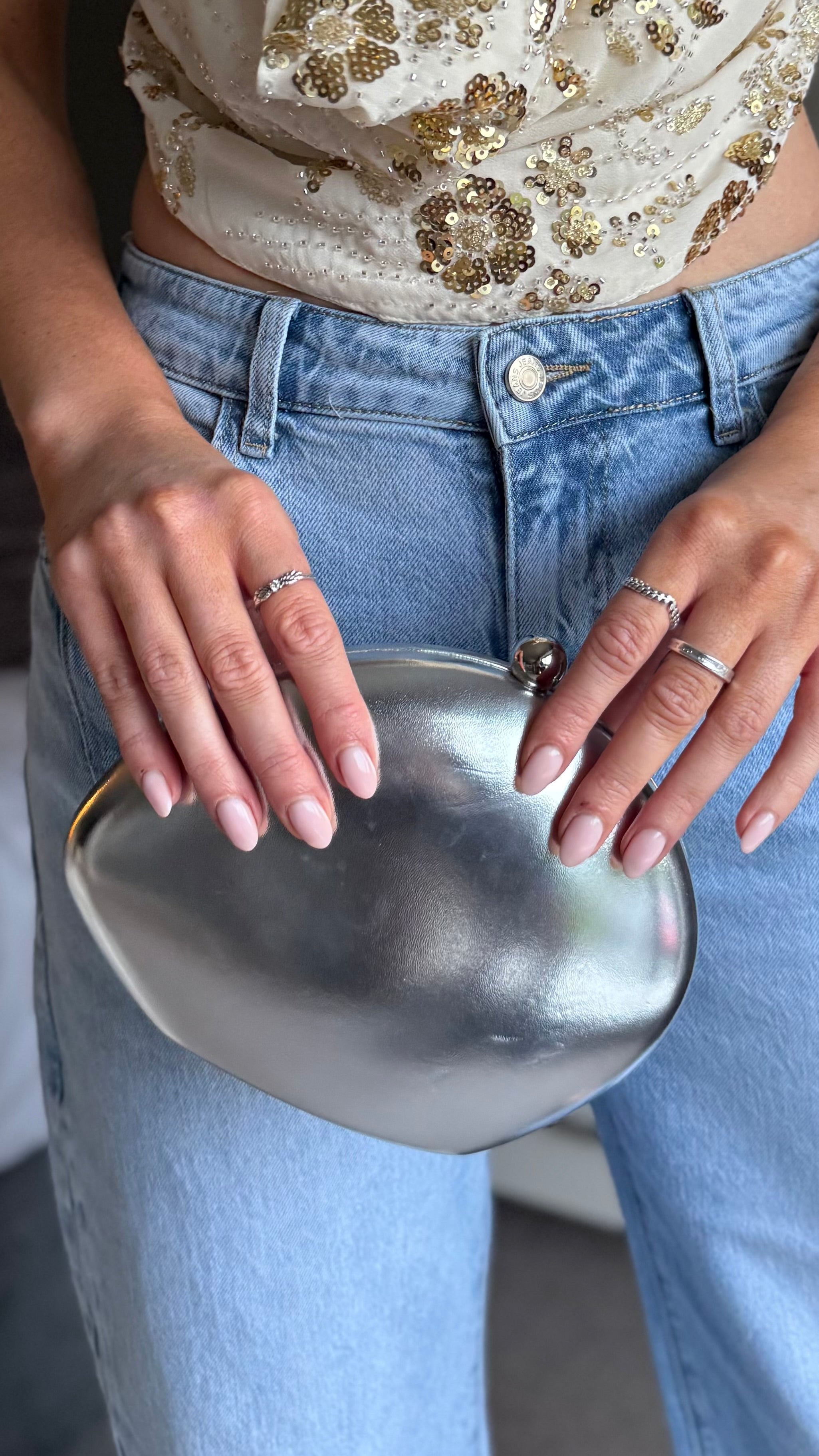Elevate your evening look with the Malaya Silver Shiny Clutch Bag—a dazzling accessory that catches every light. Crafted with a rigid structure that holds its shape beautifully, this clutch features a lustrous finish that screams sophistication. The removable chain strap gives you styling flexibility: wear it as a clutch for an intimate gathering or sling it across your body for hands-free fun. Whether you're heading to cocktails or a night out with friends, this golden stunner is your ticket to turning heads and feeling fabulous.