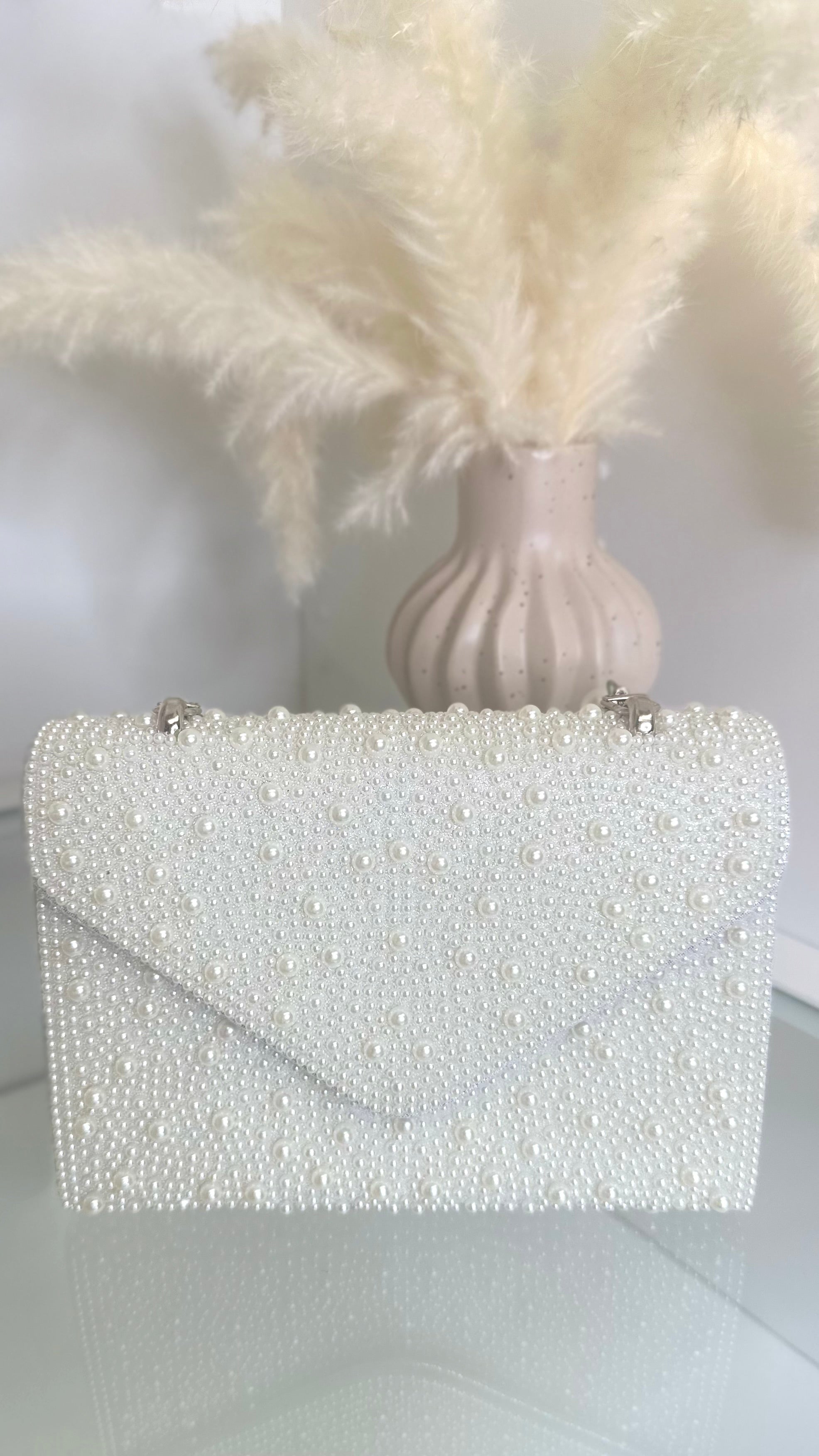 The Sophia Pearl & Silver Detail Bag combines classic elegance with a modern touch. Featuring a smooth pearl finish and delicate silver details, this handbag adds a refined sparkle to any outfit. Perfect for special occasions or stylish everyday use, it offers both beauty and practicality in one chic design. ✨👜