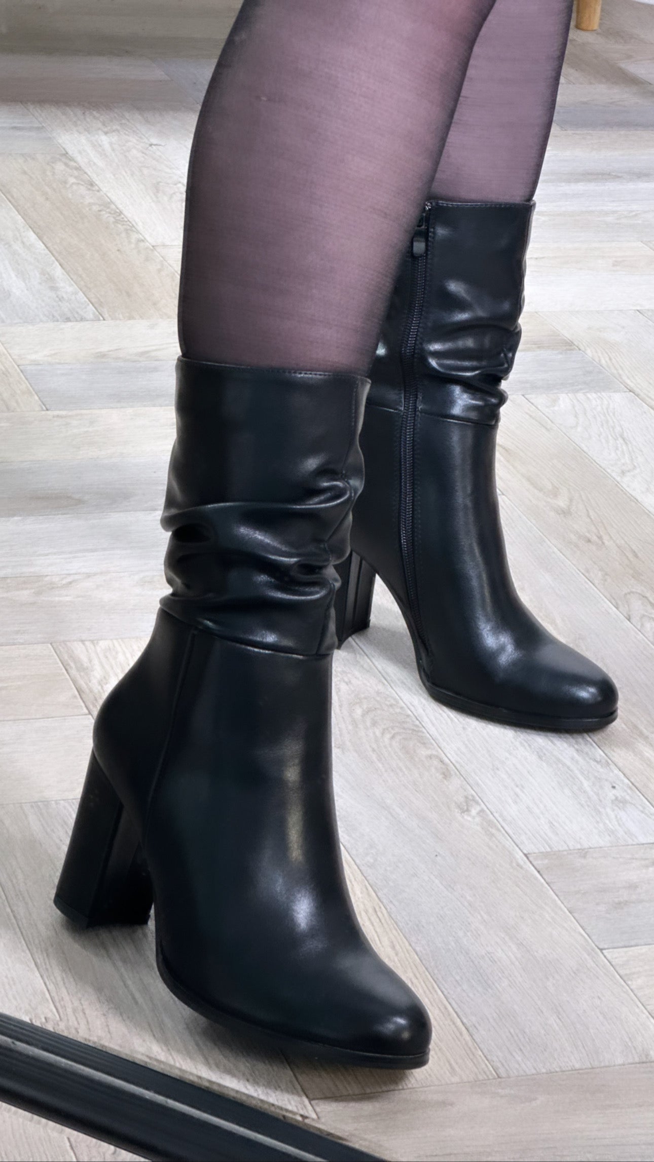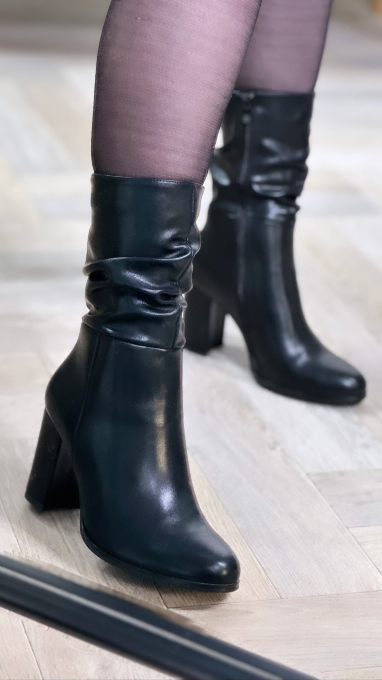 Don't let your style be anything less than ~stellar~ with these Griffin Black Ruched Block Heeled Boots! They'll instantly elevate your style with their sleek black finish and ruched design, as well as provide a comfortable fit and steady heel. Let your fashionista flag fly! 🛩️ 🎉
