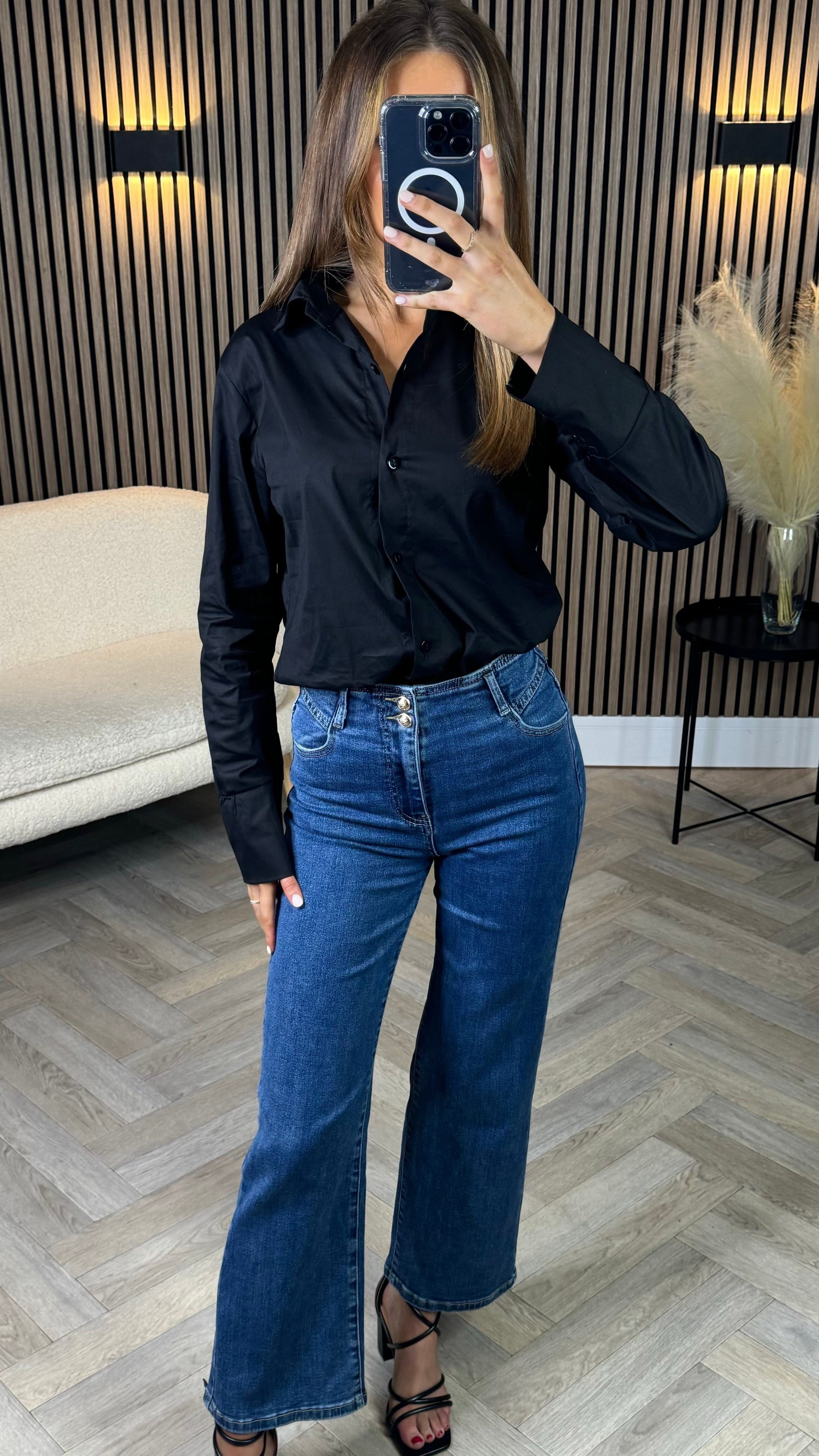 Transform any outfit from "meh" to "wow" with the Skye Black Collared Shirt! This bold and playful piece adds a pop of personality with its black hue and classic collar. Perfect for adding a touch of quirkiness to your wardrobe. 🔥