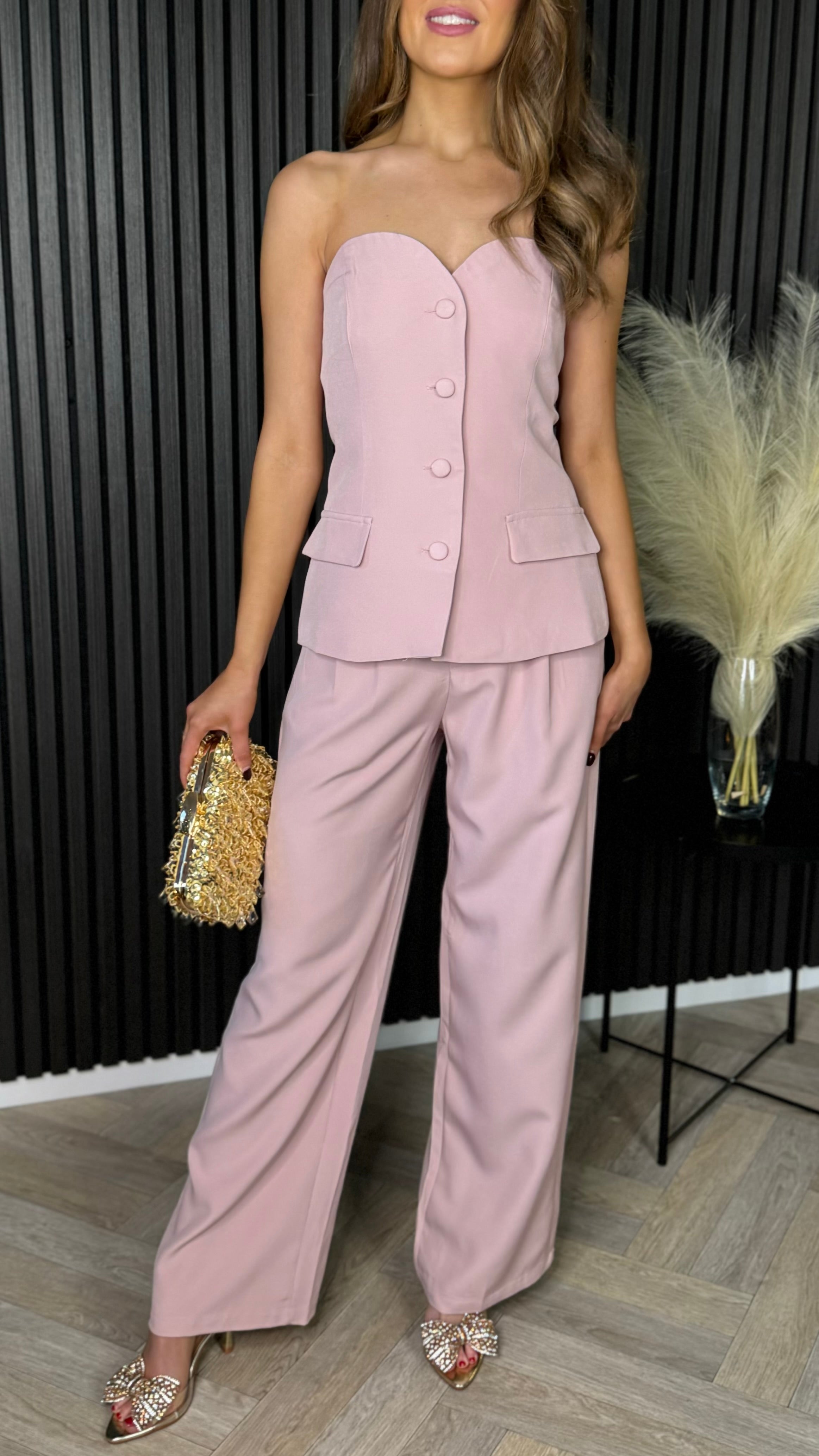 Farrah Pink Bustier Top & Trousers Co-Ord