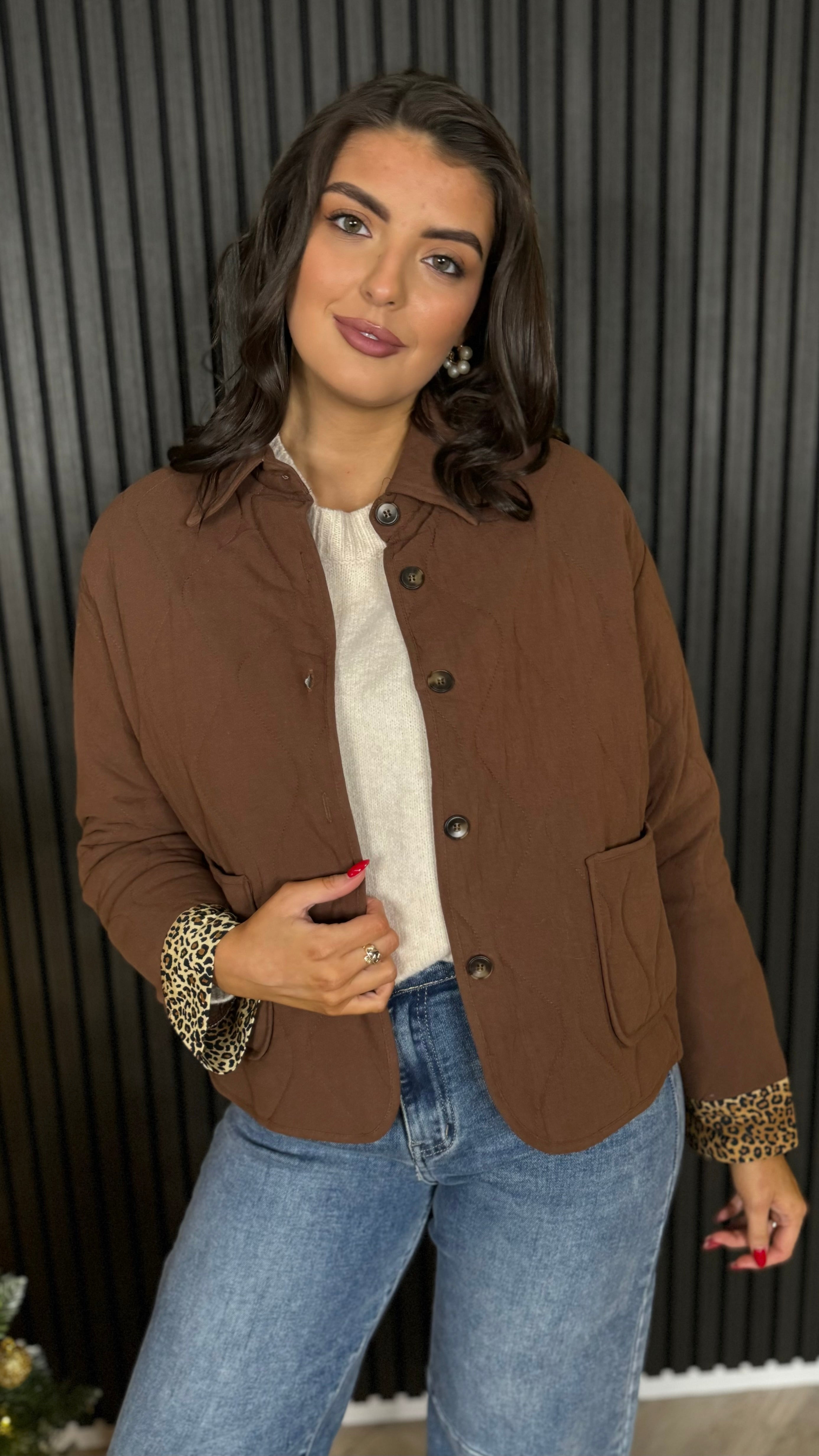 Zaynee Chocolate Brown & Leopard Cuff Jacket