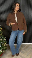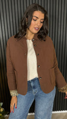 Adding a twist to classic cool, the Zaynee Chocolate Brown & Leopard Cuff Jacket features a cozy quilted design with playful leopard print cuffs that sneak in some wild style. Its button-up front and functional pockets make it as practical as it is fun, perfect for chilly days when you want to stand out with a nod to bold details.