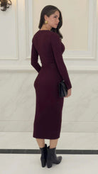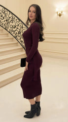 Aifric Burgundy Rib Knit Gold Buckle Detail Midi Dress
