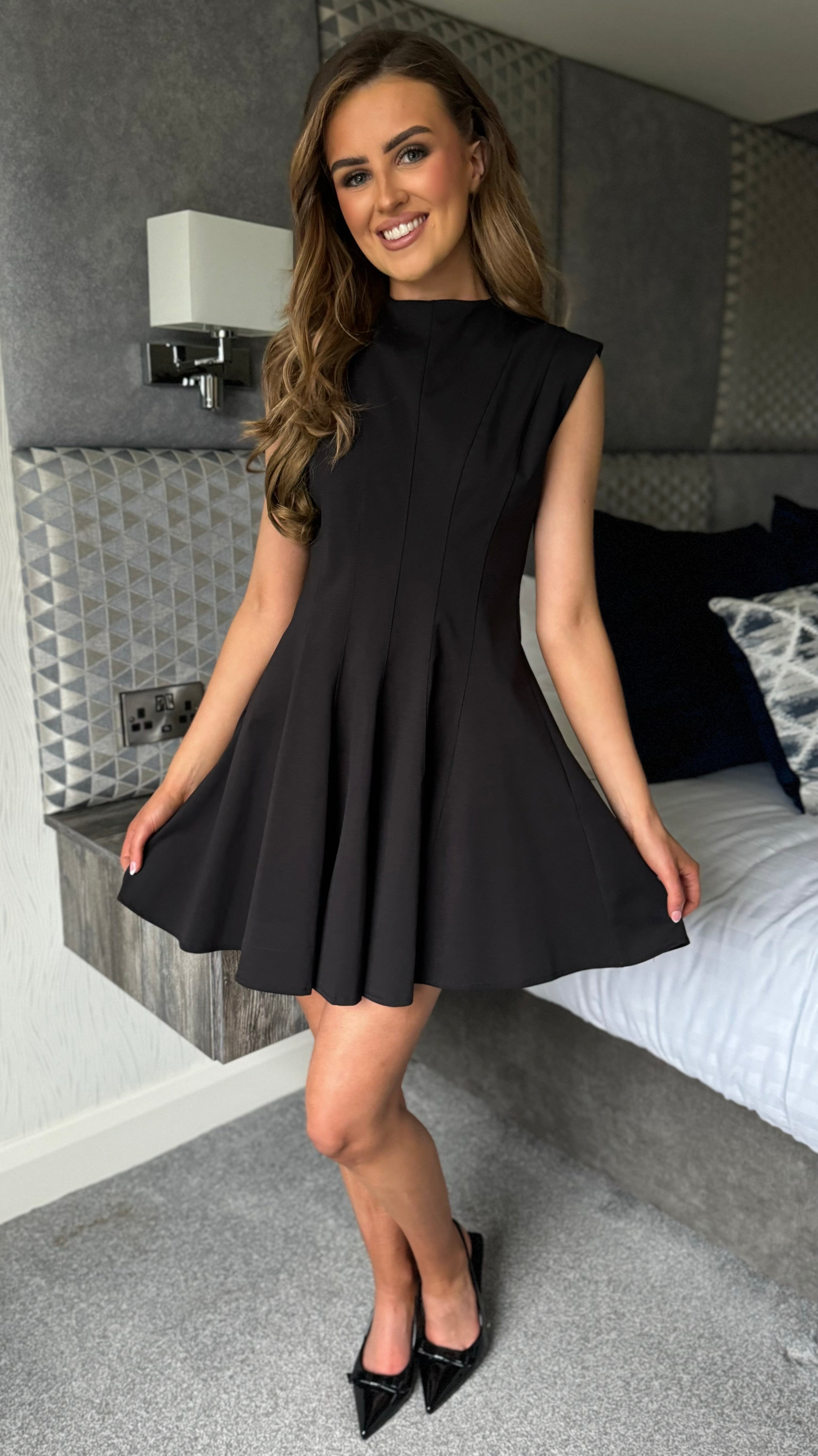 Andie Black High Neck Skater Mini Dress