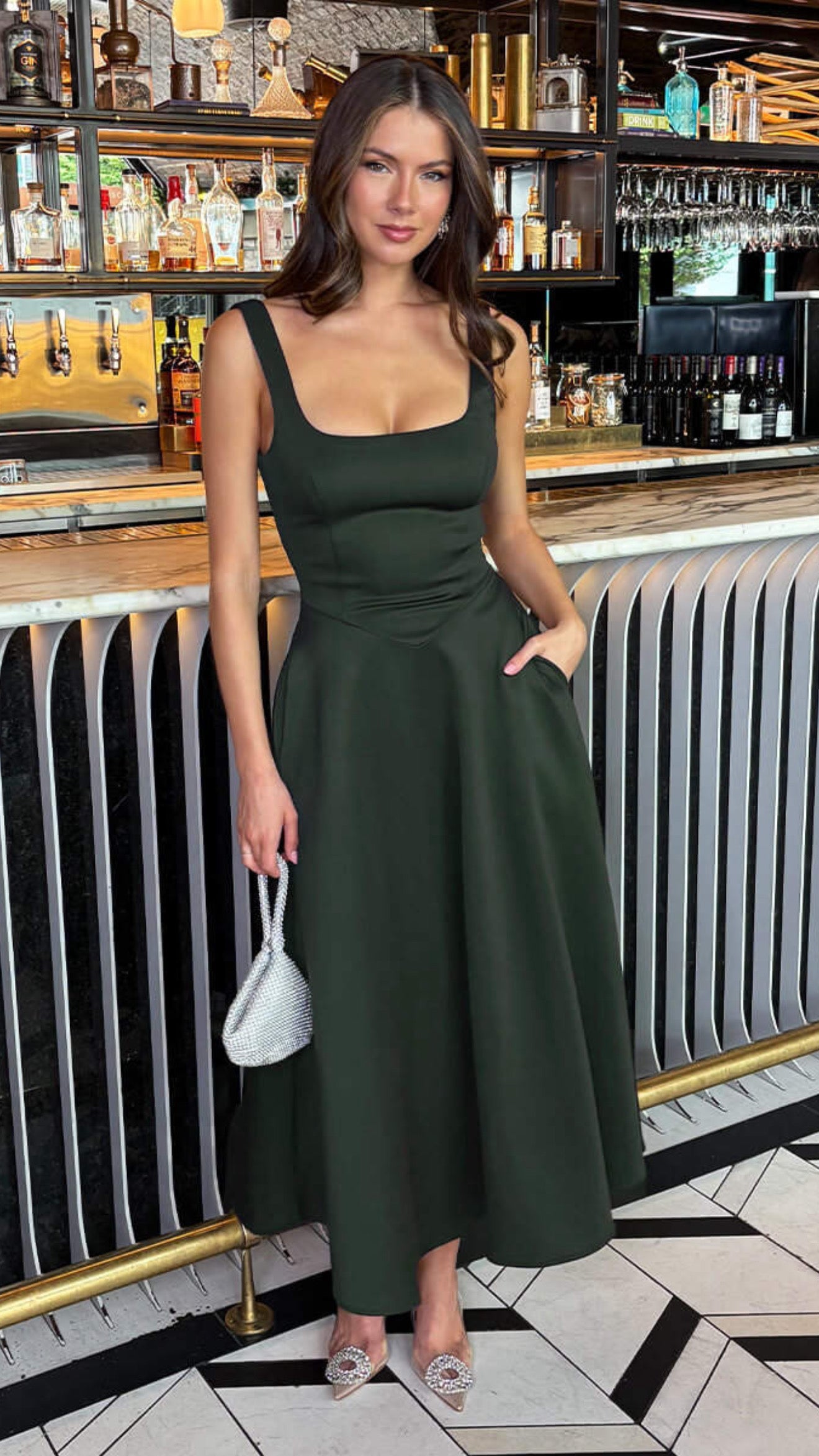 Elevate your wardrobe with the Avani Forest Green Square Neck Pocketed Midi Dress 🍂. Featuring a refined square neckline and practical pockets, this midi dress combines elegance with everyday functionality. Its rich green hue adds a touch of sophistication, perfect for both daytime events and evening occasions. Experience comfort and style seamlessly blended in one timeless piece. ✨