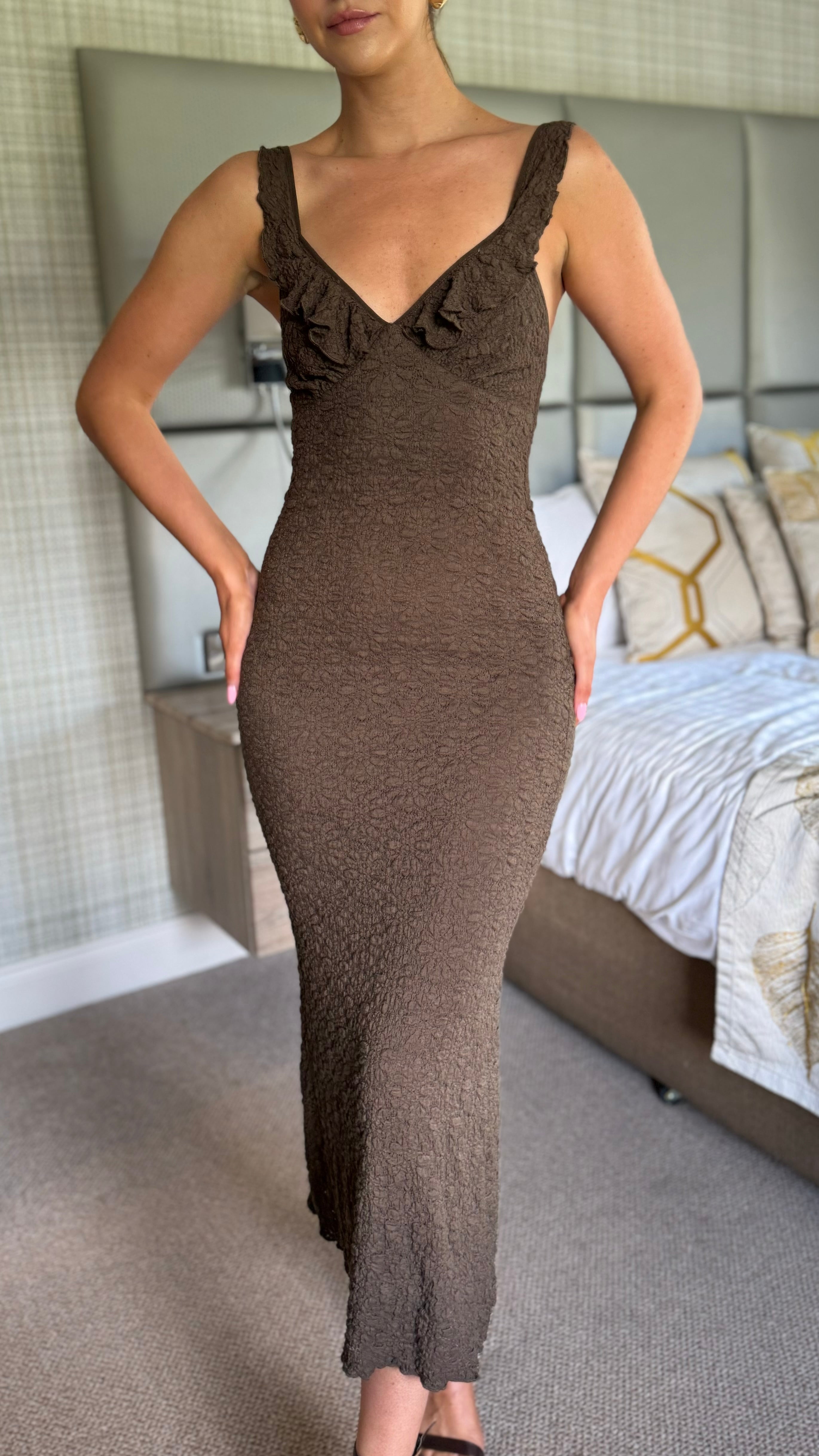 Discover effortless style with the Casey Brown Cami Frill Waffle Detail Midi Dress 🌟. Its soft waffle texture and delicate frill accents create a charming, feminine look perfect for day or night. The midi length offers flattering coverage, while the cami straps provide a cool, comfortable fit. Whether for brunch or a casual outing, this dress combines comfort and chic in one must-have piece 💃.