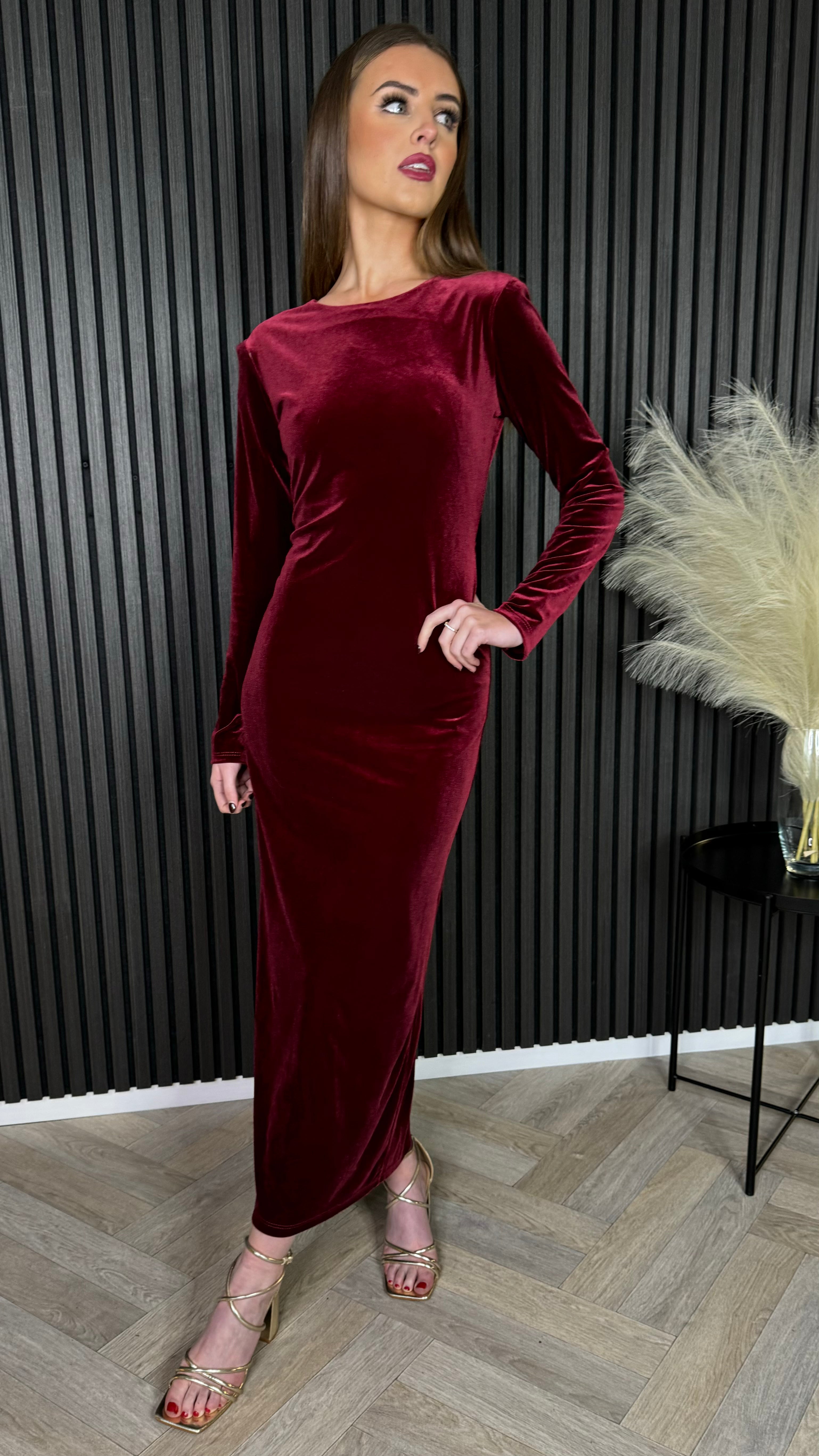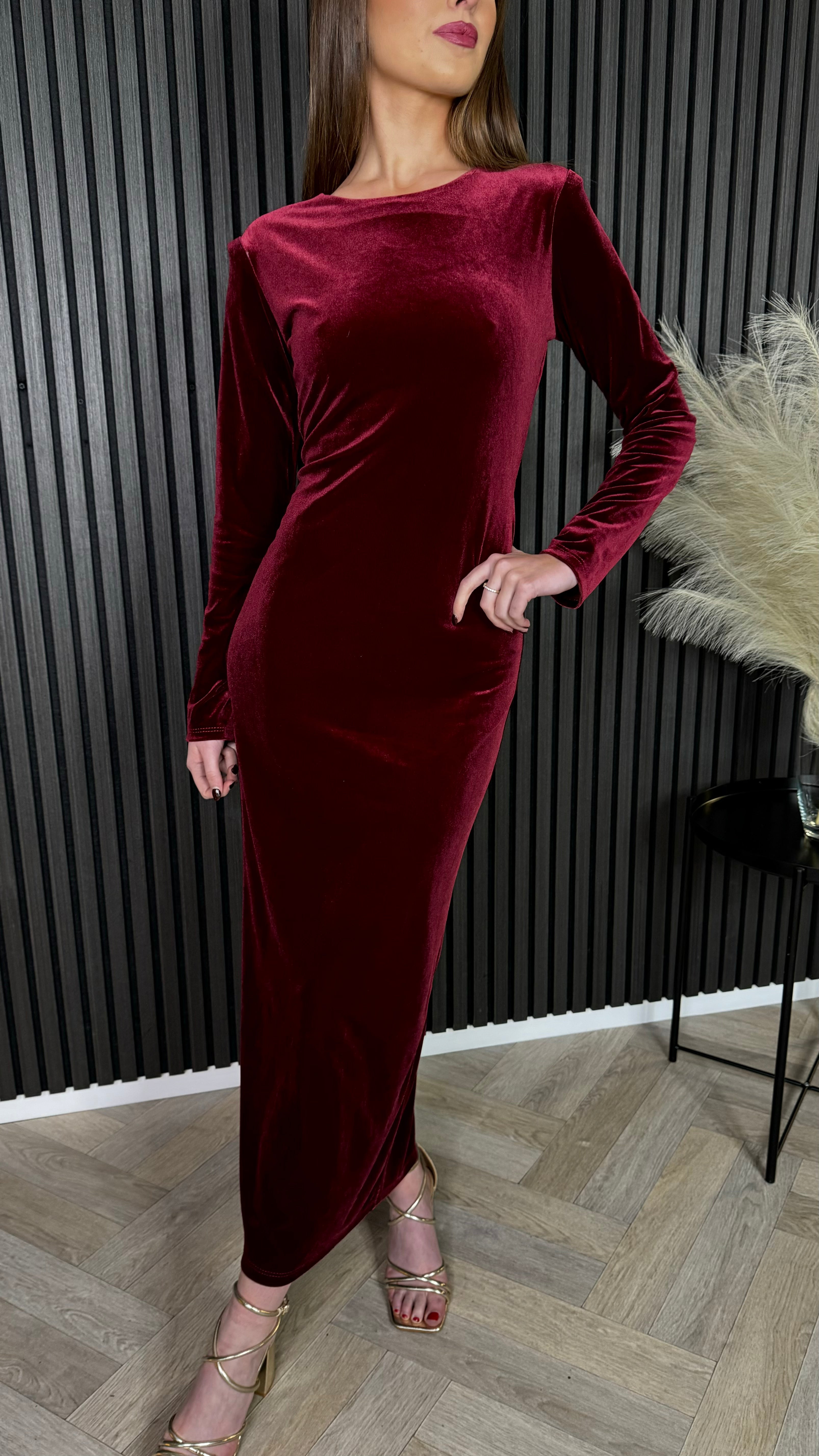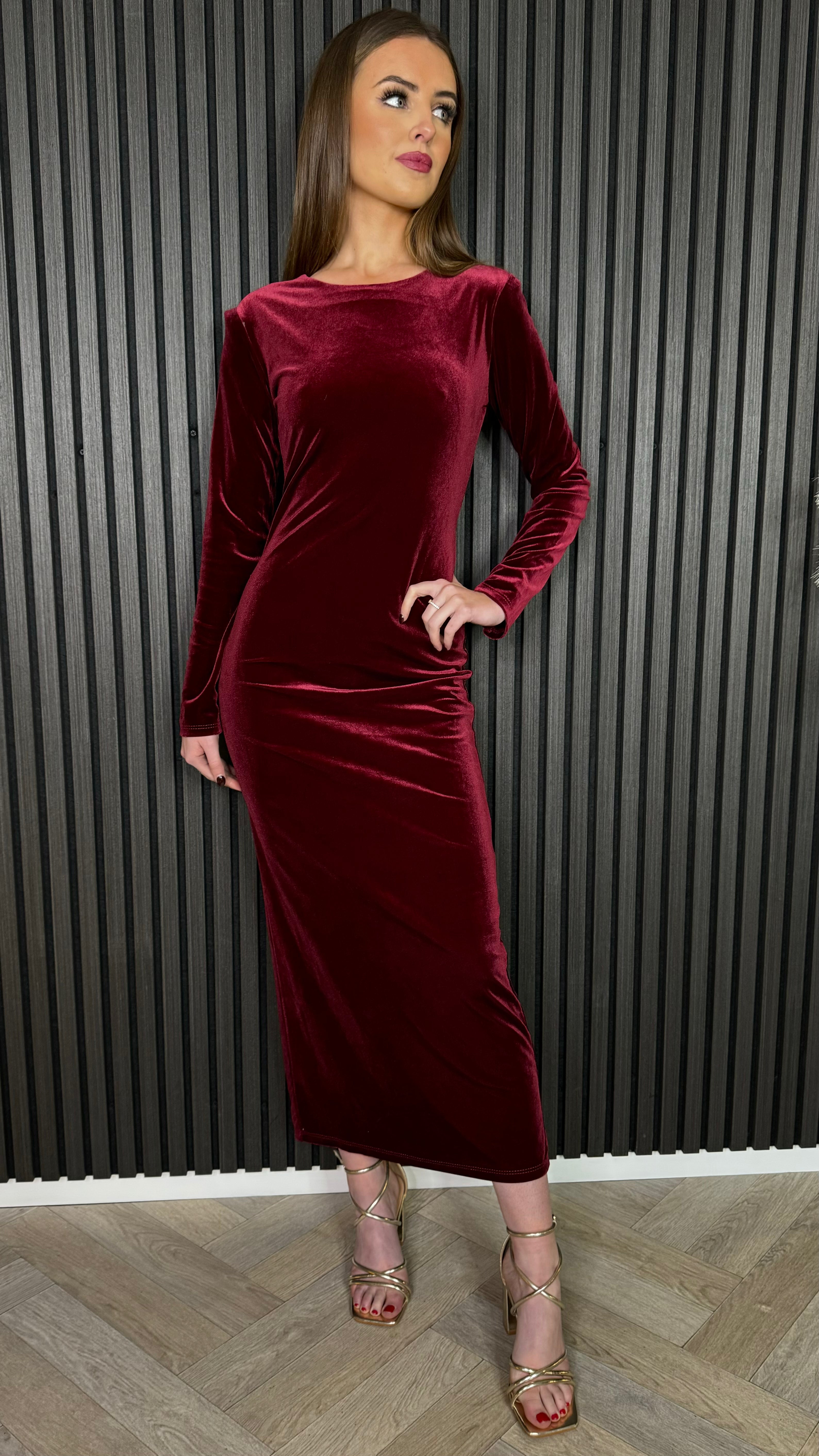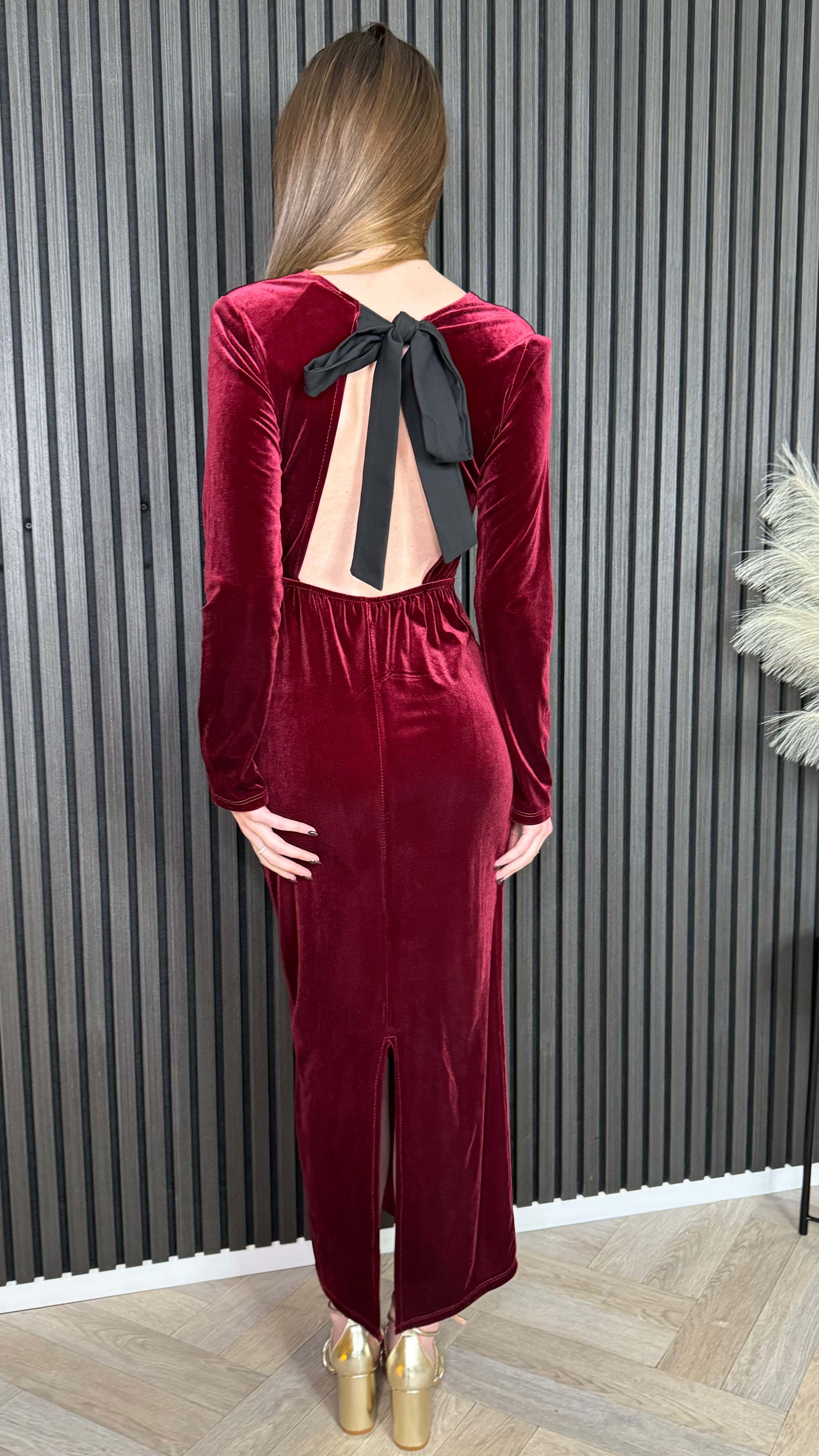 Make a statement in our Clarice Burgundy Back Bow Detail Midi Dress! Featuring a playful back cut out detail and elegant long sleeves, this dress is perfect for any occasion. The back split adds a touch of flair and the rich burgundy color is sure to turn heads. (Bow-tiful!)