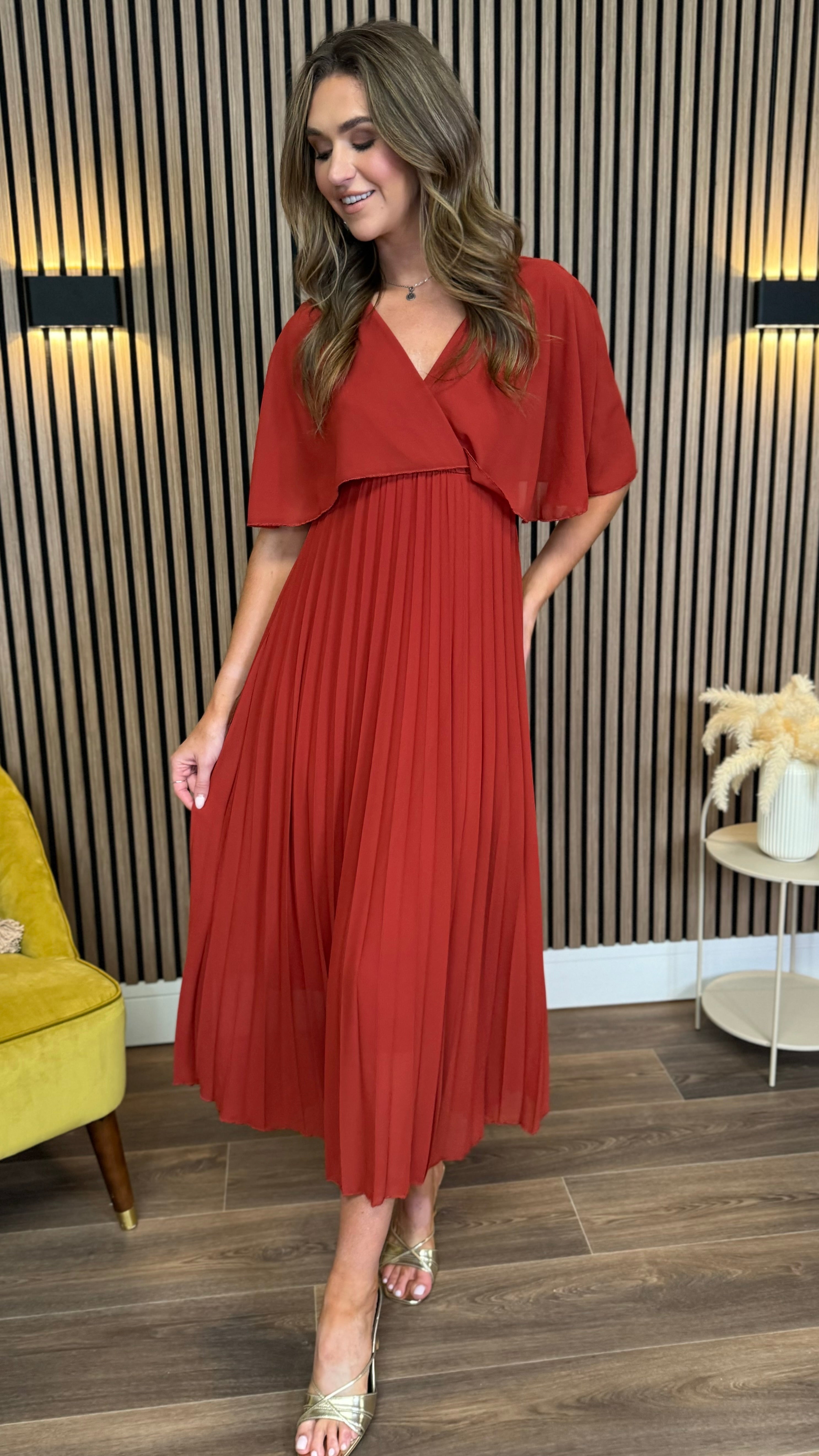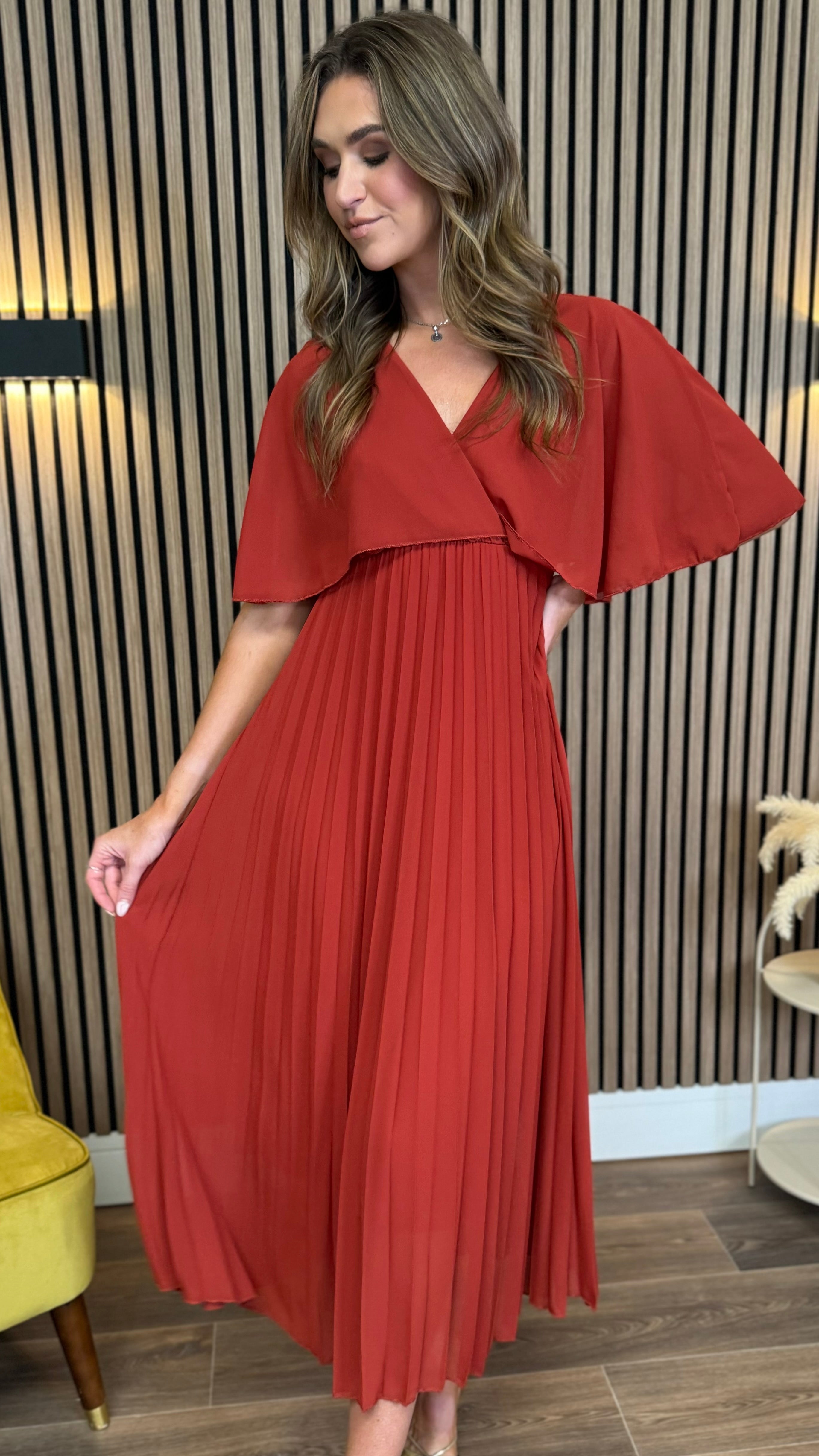 Dahlia Rust V Neck Draped Sleeve Midaxi Dress