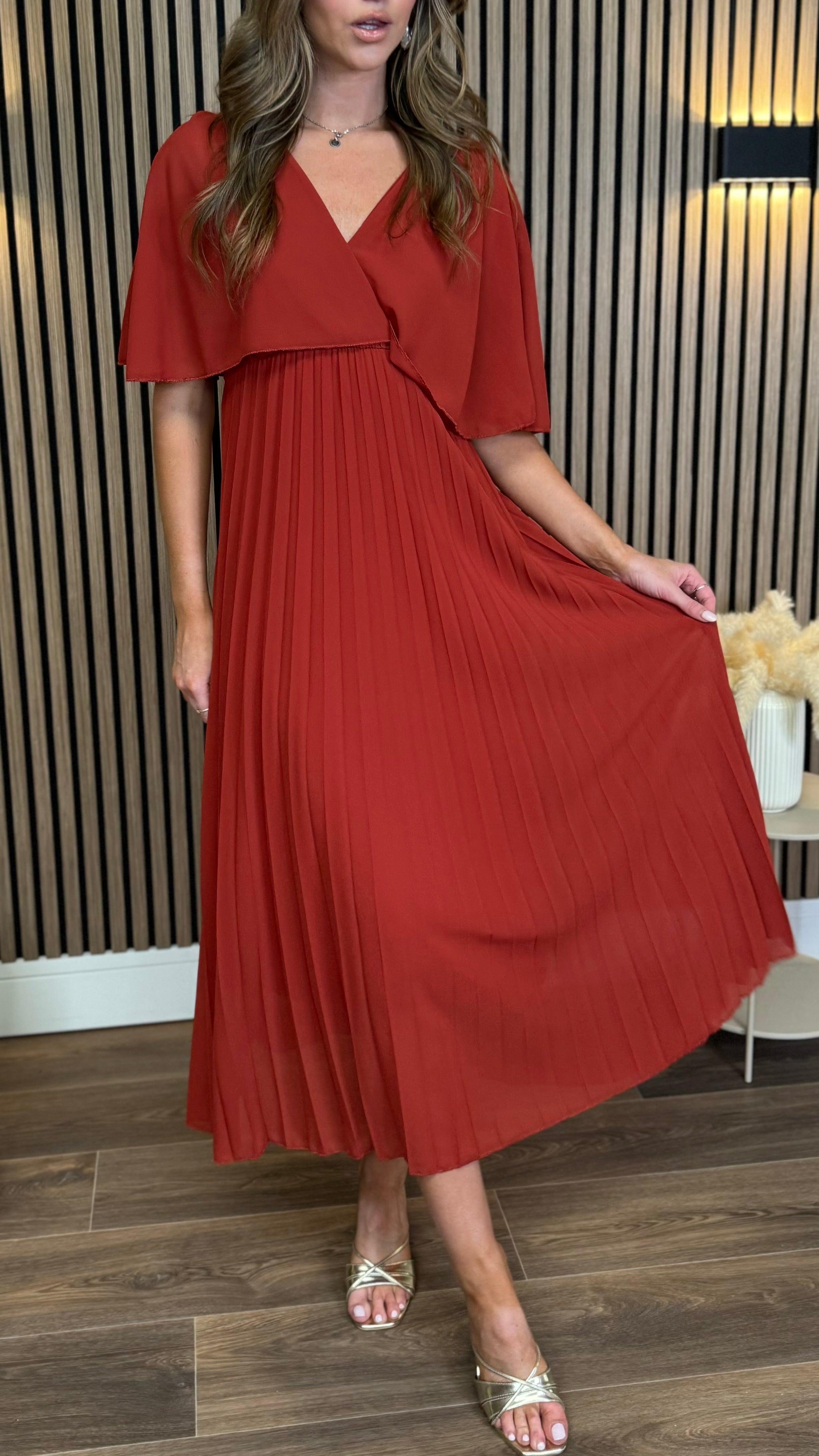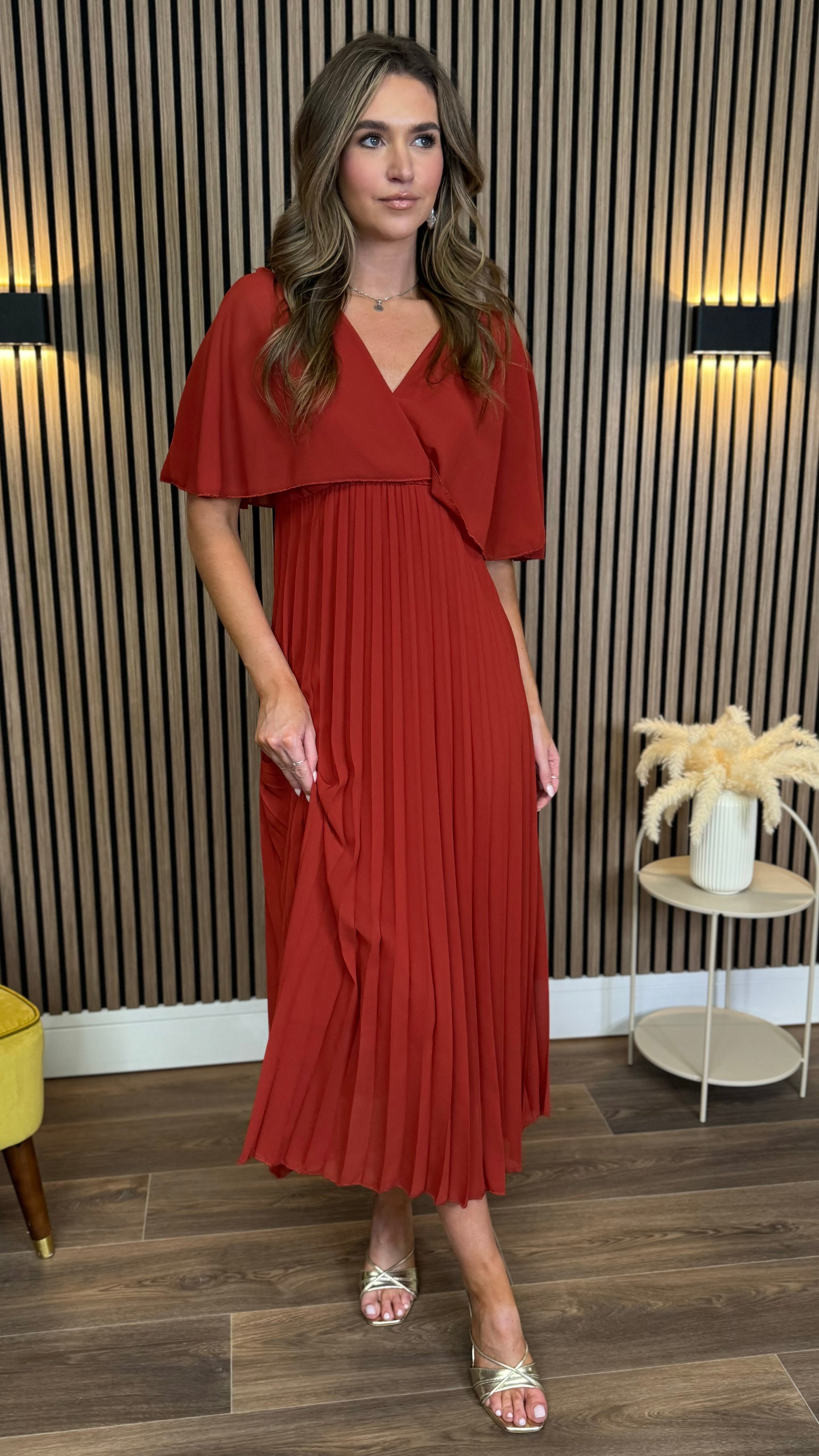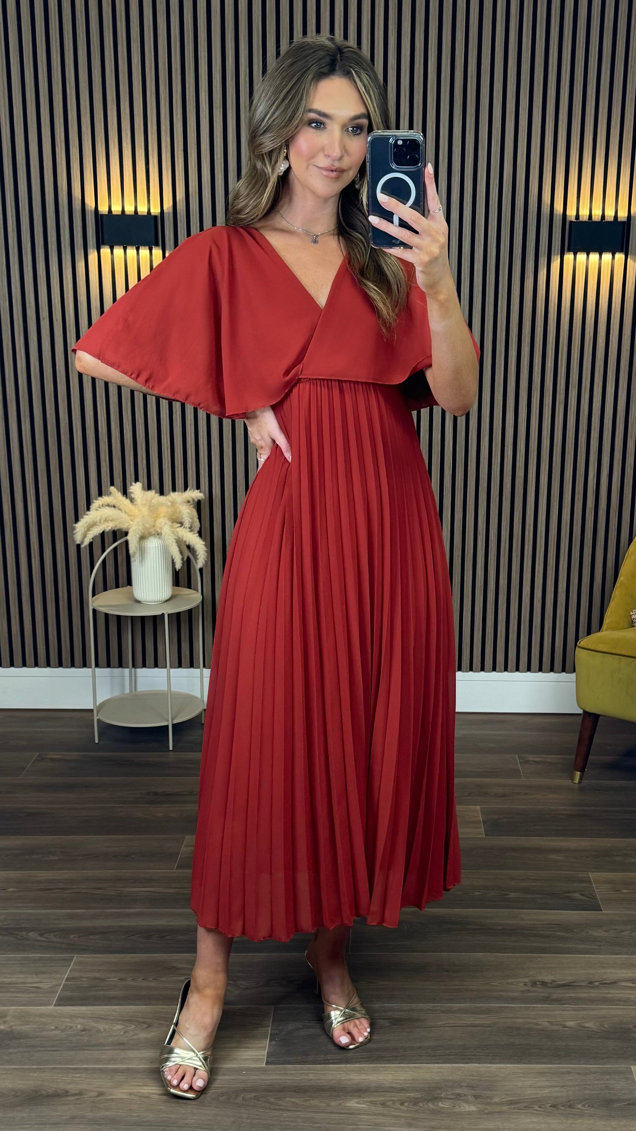 The Dahlia Rust V Neck Draped Sleeve Midaxi Dress offers a sophisticated silhouette with its elegant draped sleeves and flattering V neckline. The rich rust colour adds warmth and charm, making it ideal for refined occasions or stylish everyday wear. Perfectly balanced between comfort and grace, this dress is a timeless wardrobe essential. 🍂✨
