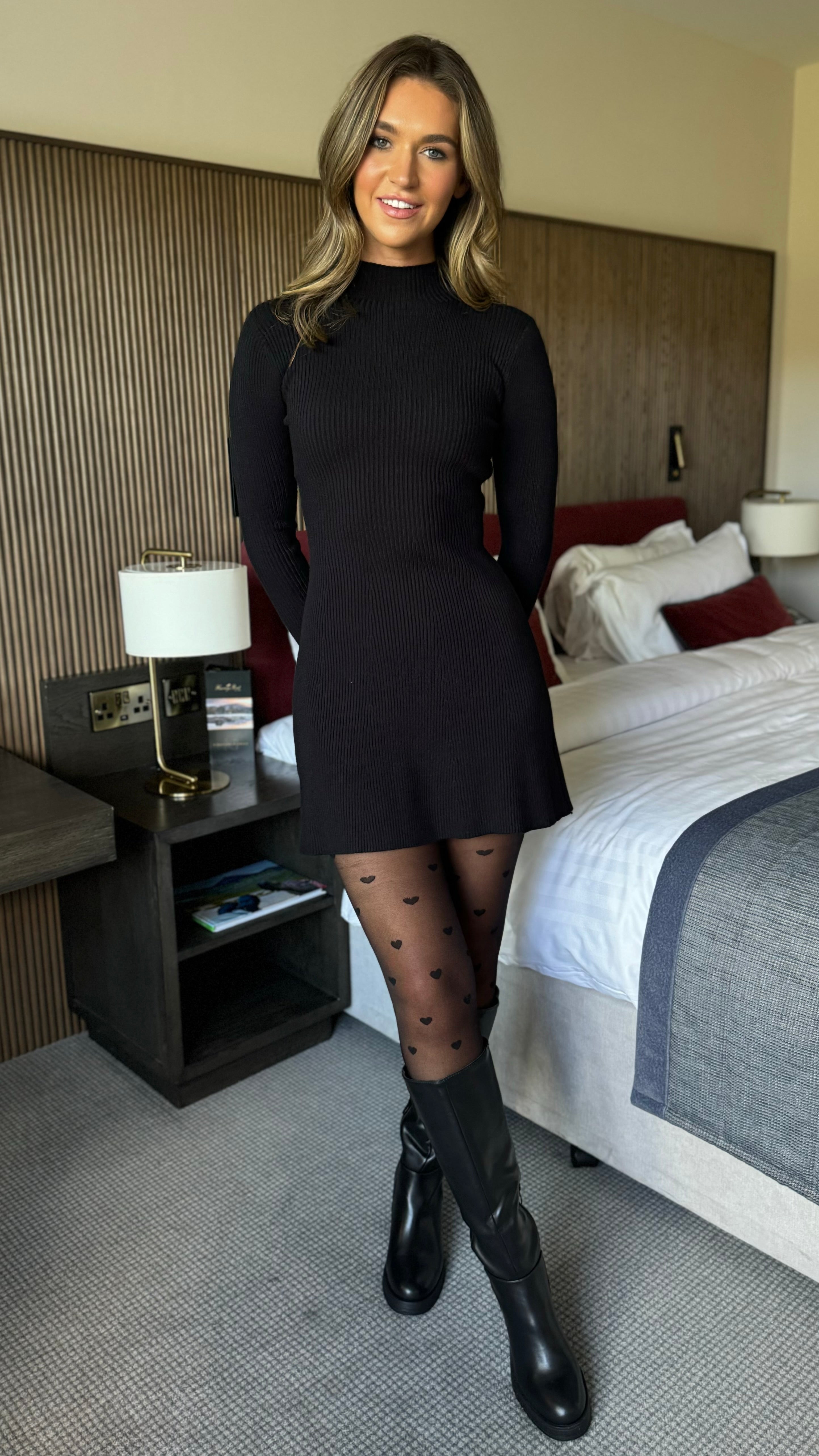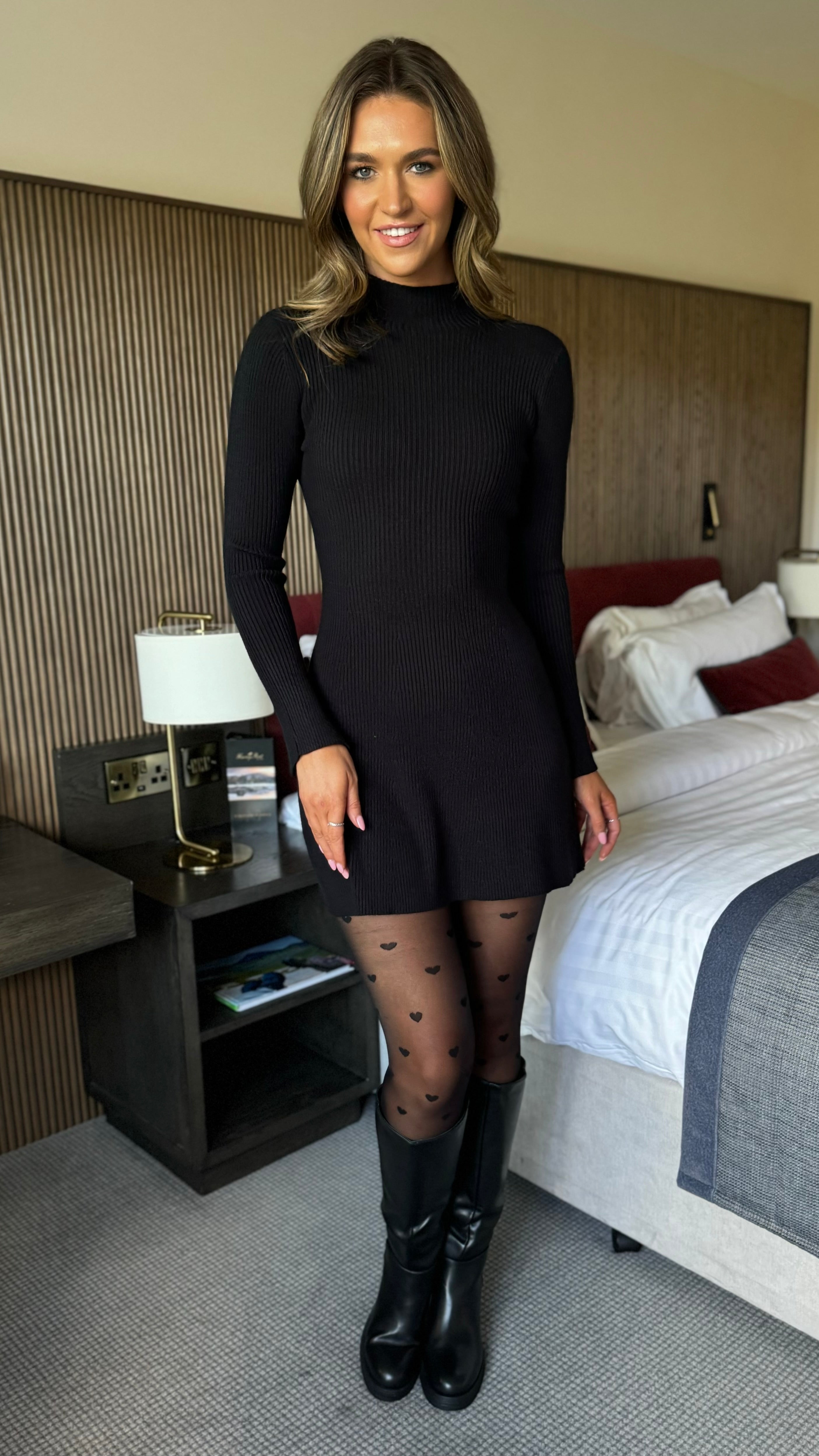 Deirdre Black High Neck Knitted Mini Dress