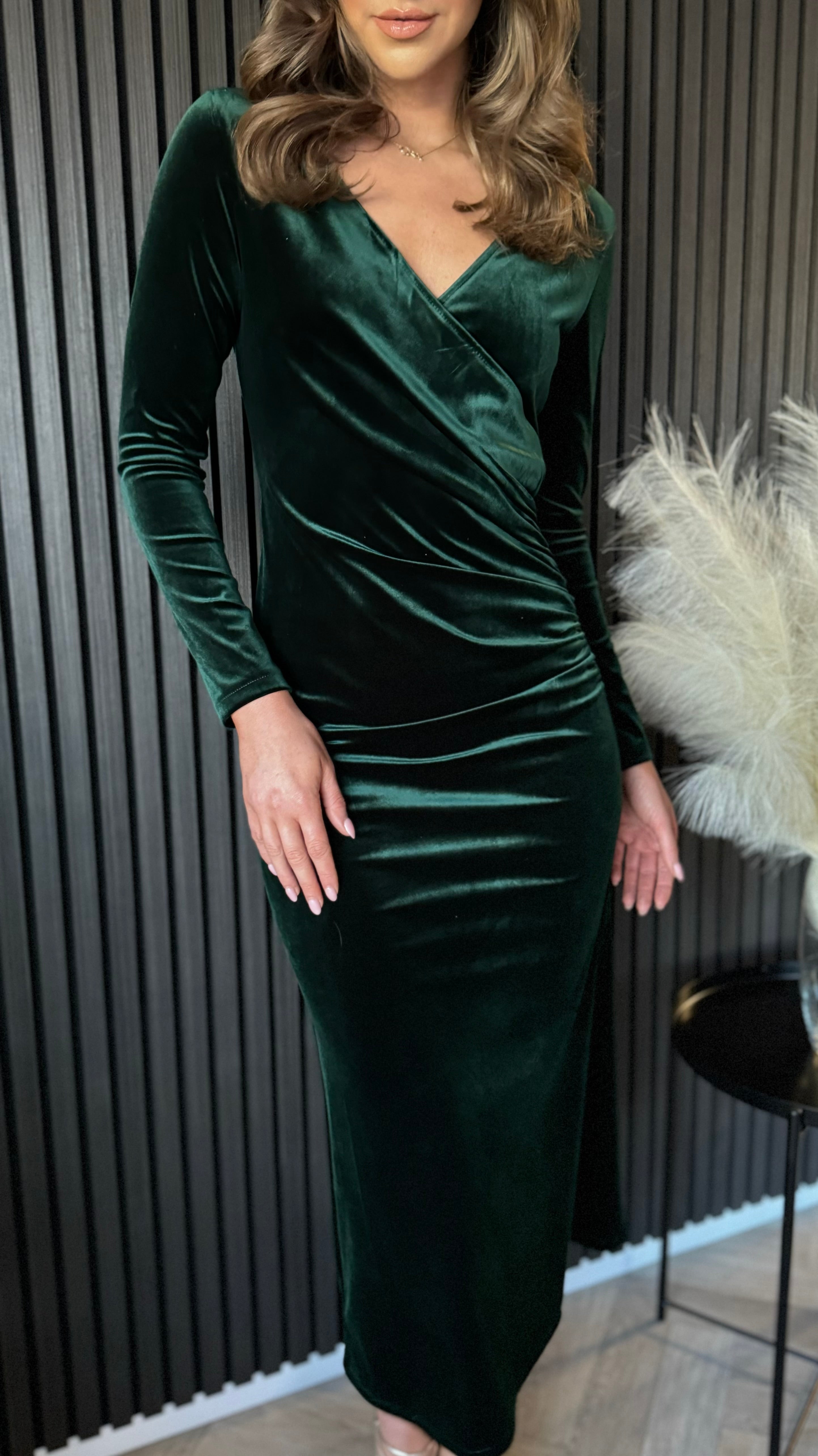 Slip into style with the Edina Forest Green Wrap Effect Midi Dress! Featuring a unique wrap effect and ruched detailing, this dress is perfect for any occasion. The deep navy color adds a touch of sophistication, while the playful design keeps things fun and flirty. 🌟