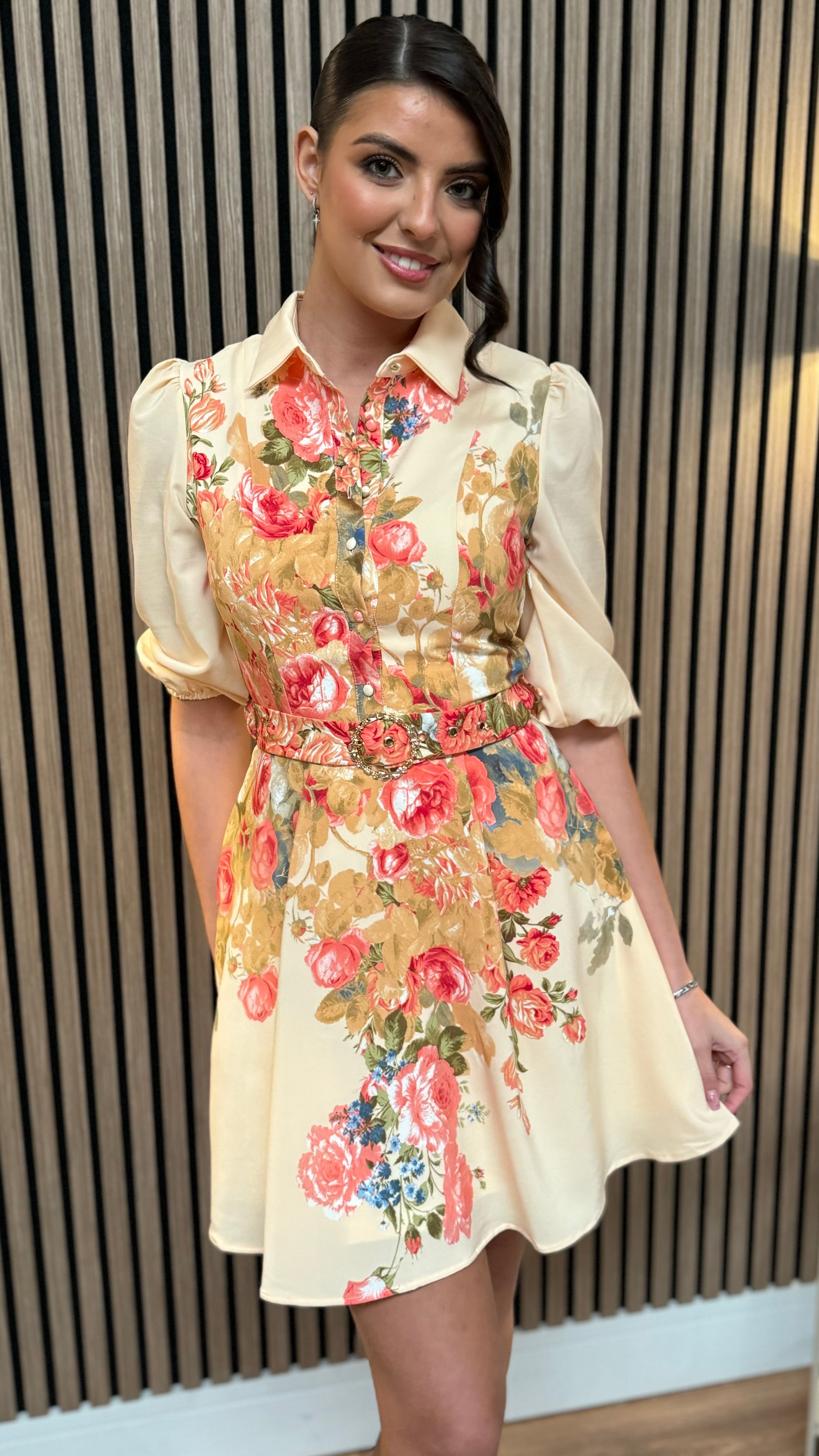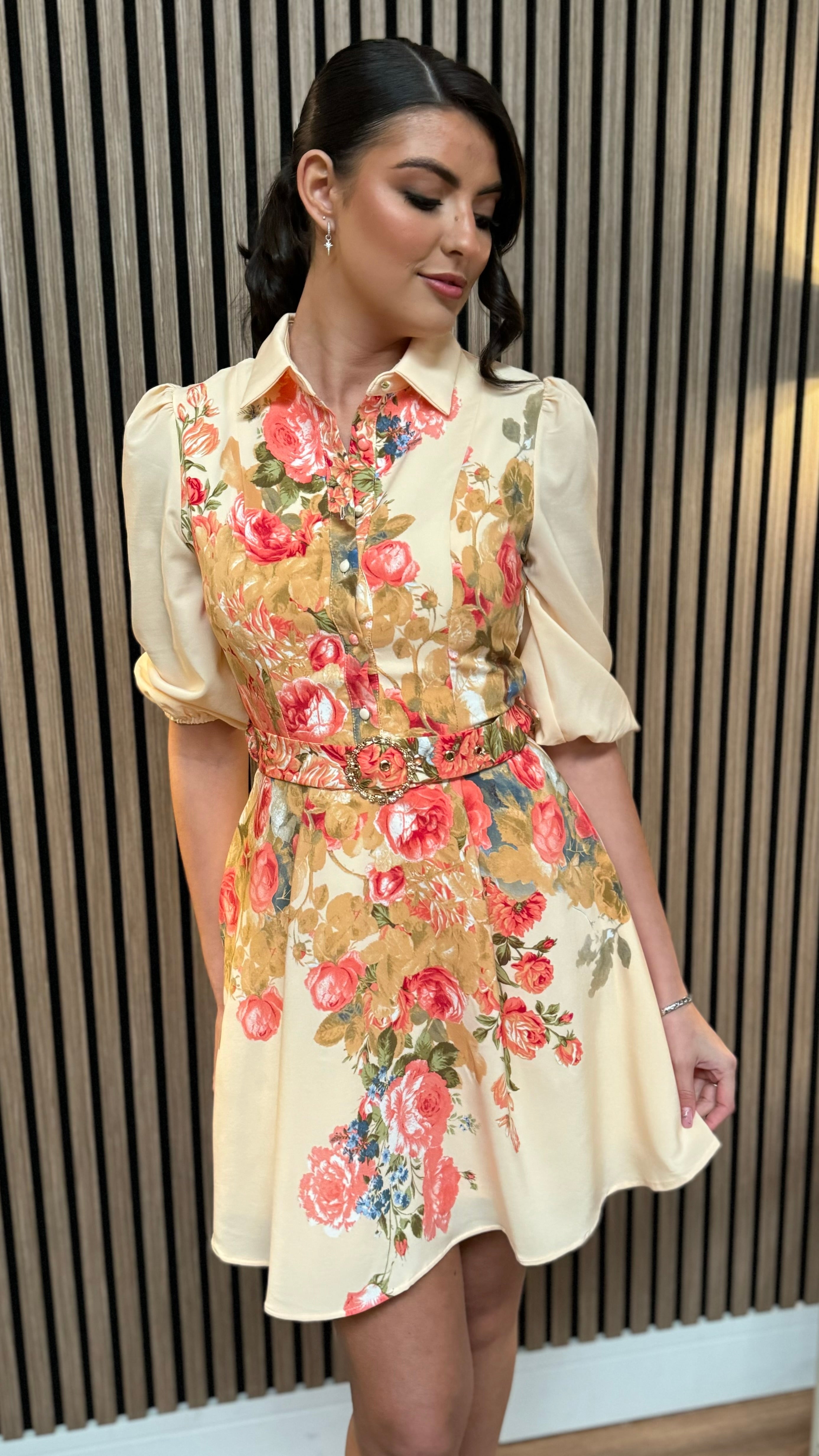 Esmeralda Cream Boarder Print Collared Mini Dress
