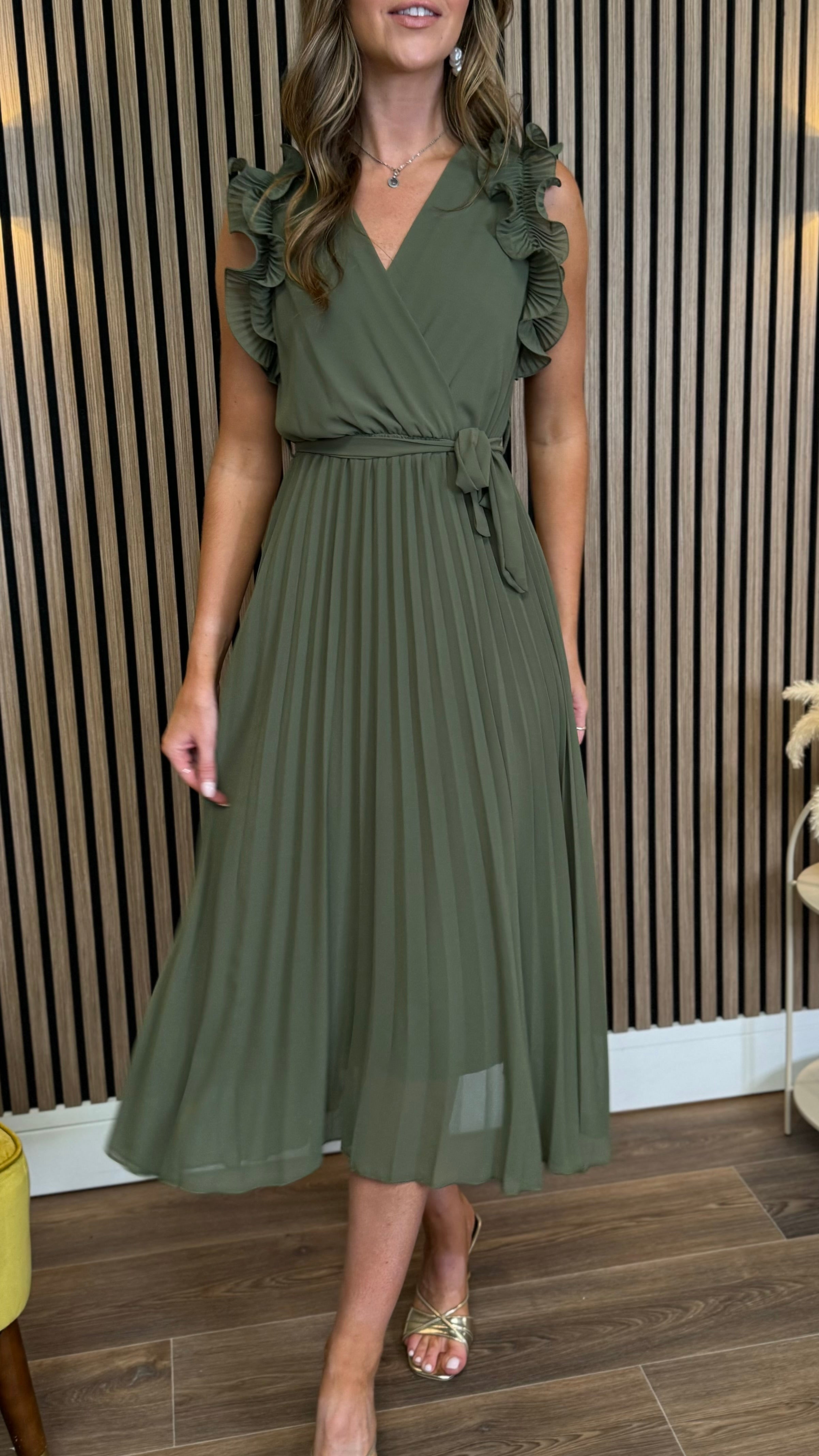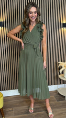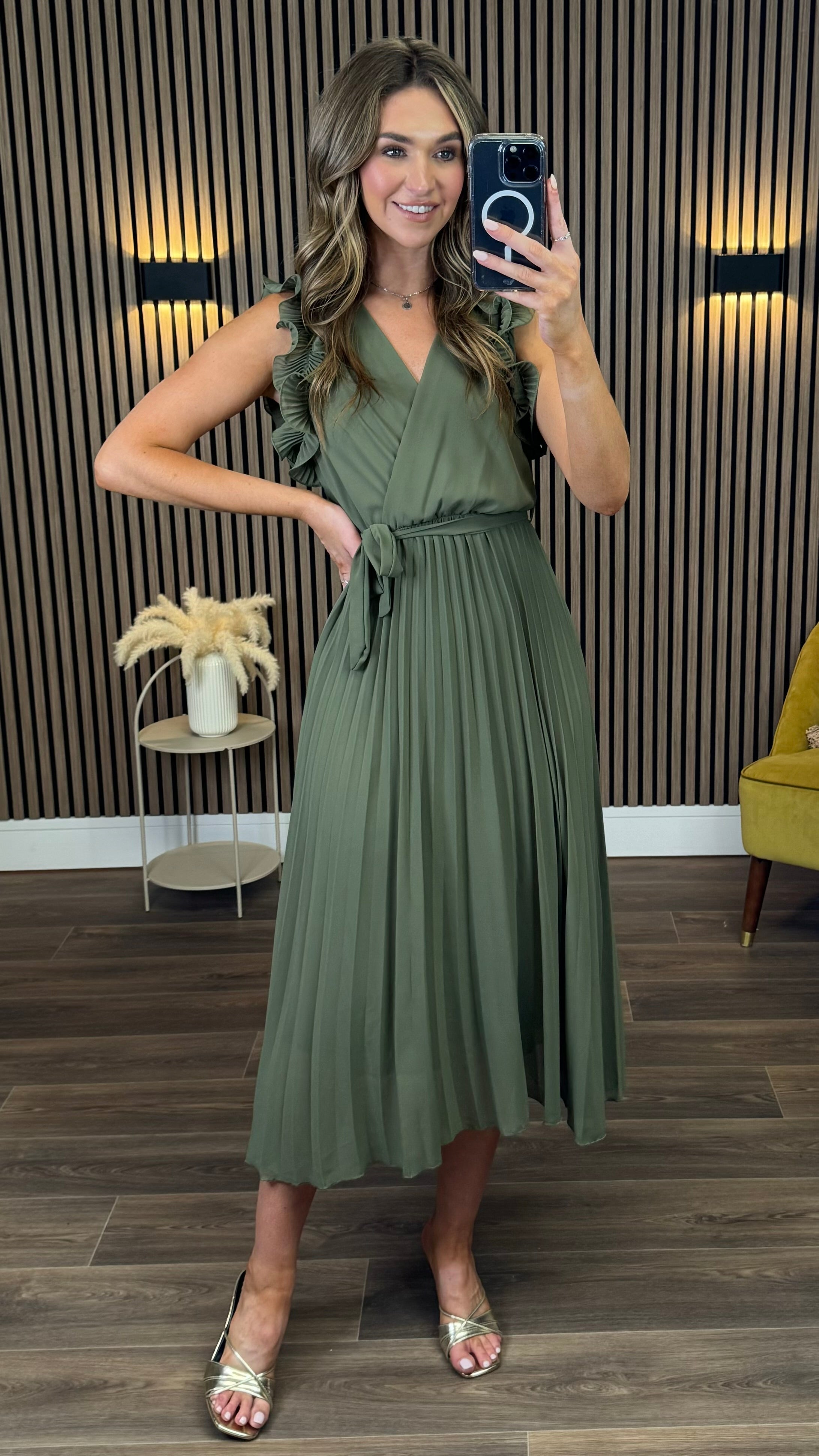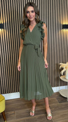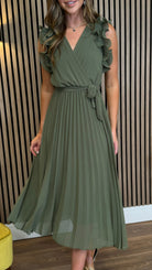 The Farah Khaki Pleated Midi Dress combines timeless elegance with modern charm. Its flowing pleats create graceful movement, while the khaki shade offers a versatile, refined look. Perfect for both daytime events and evening occasions, this dress ensures you stand out with subtle sophistication. 🌿✨