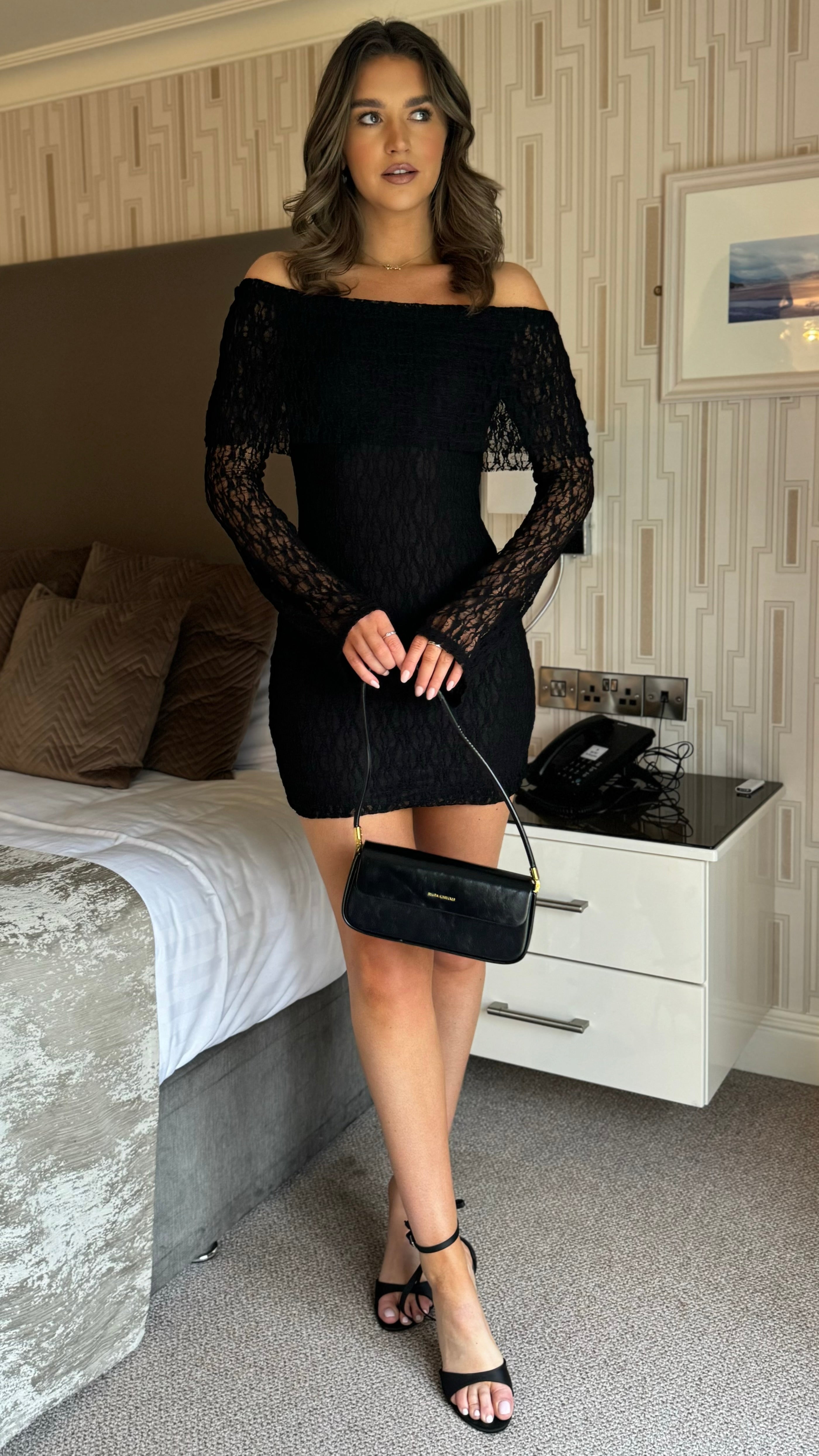 Turn heads in this effortlessly chic off-shoulder lace mini. Delicate all-over lace meets a soft, stretchy lining that moves with you—no wardrobe malfunctions, just pure confidence. The bardot neckline frames your shoulders beautifully, while the mini cut keeps things flirty and fun. Perfect for nights out, date nights, or whenever you want to feel undeniably fabulous.