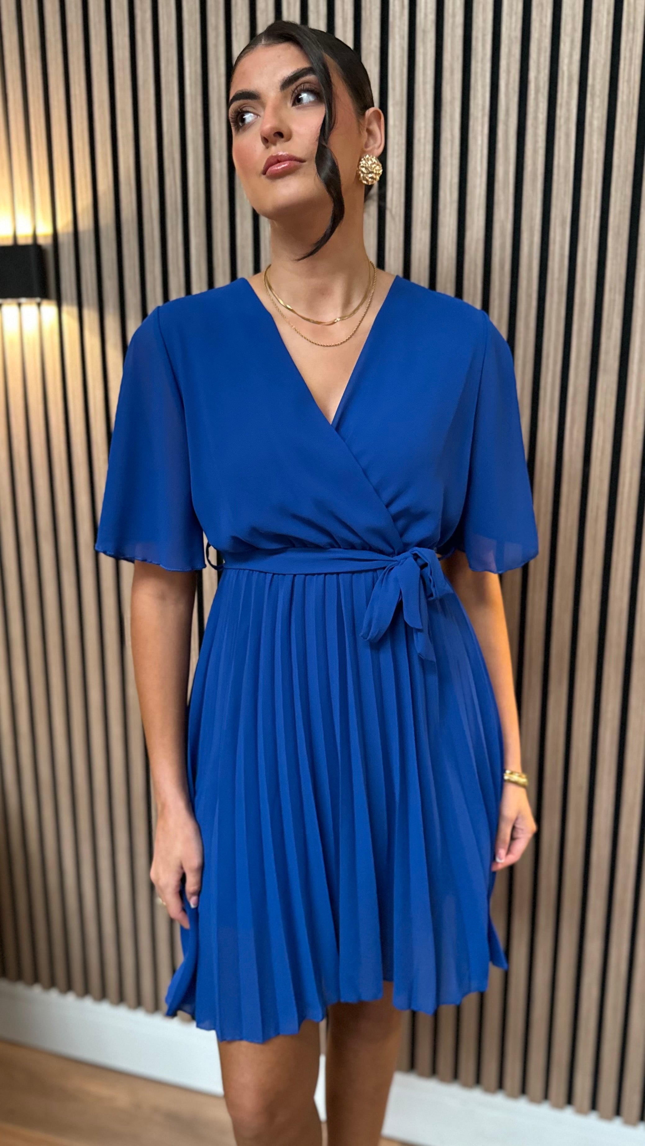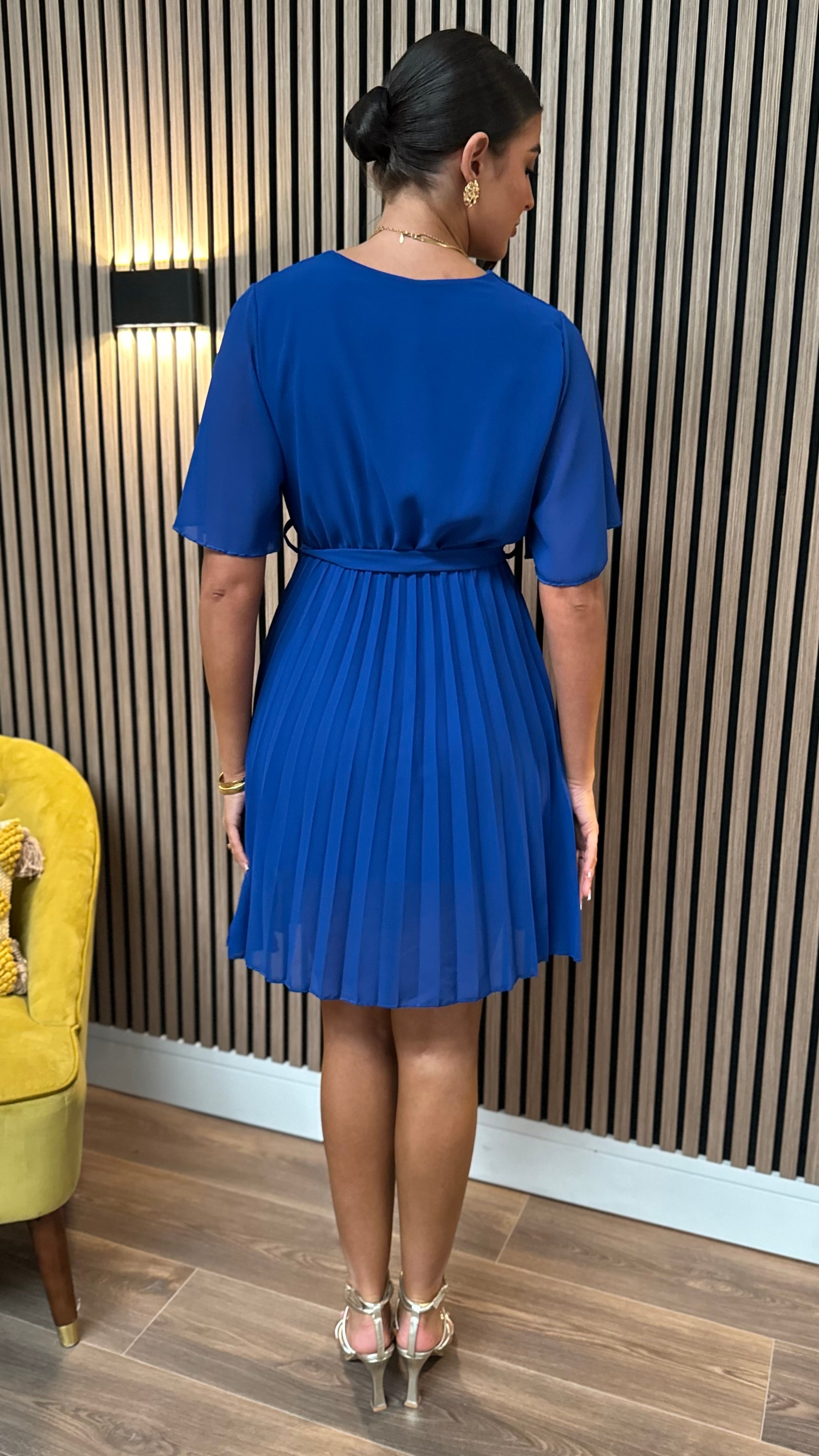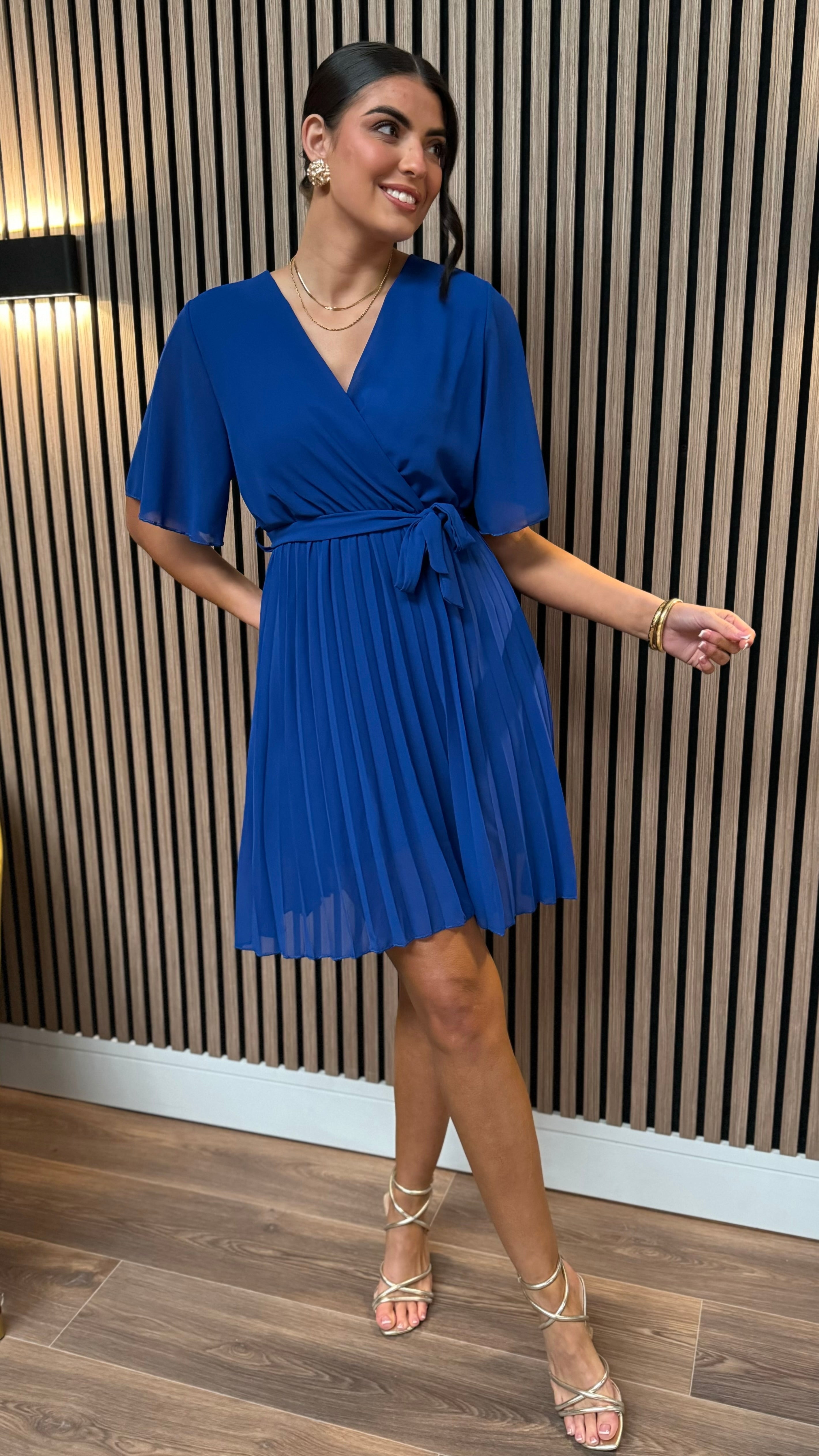 Heidi Royal Blue V Neckline Pleated Mini Dress