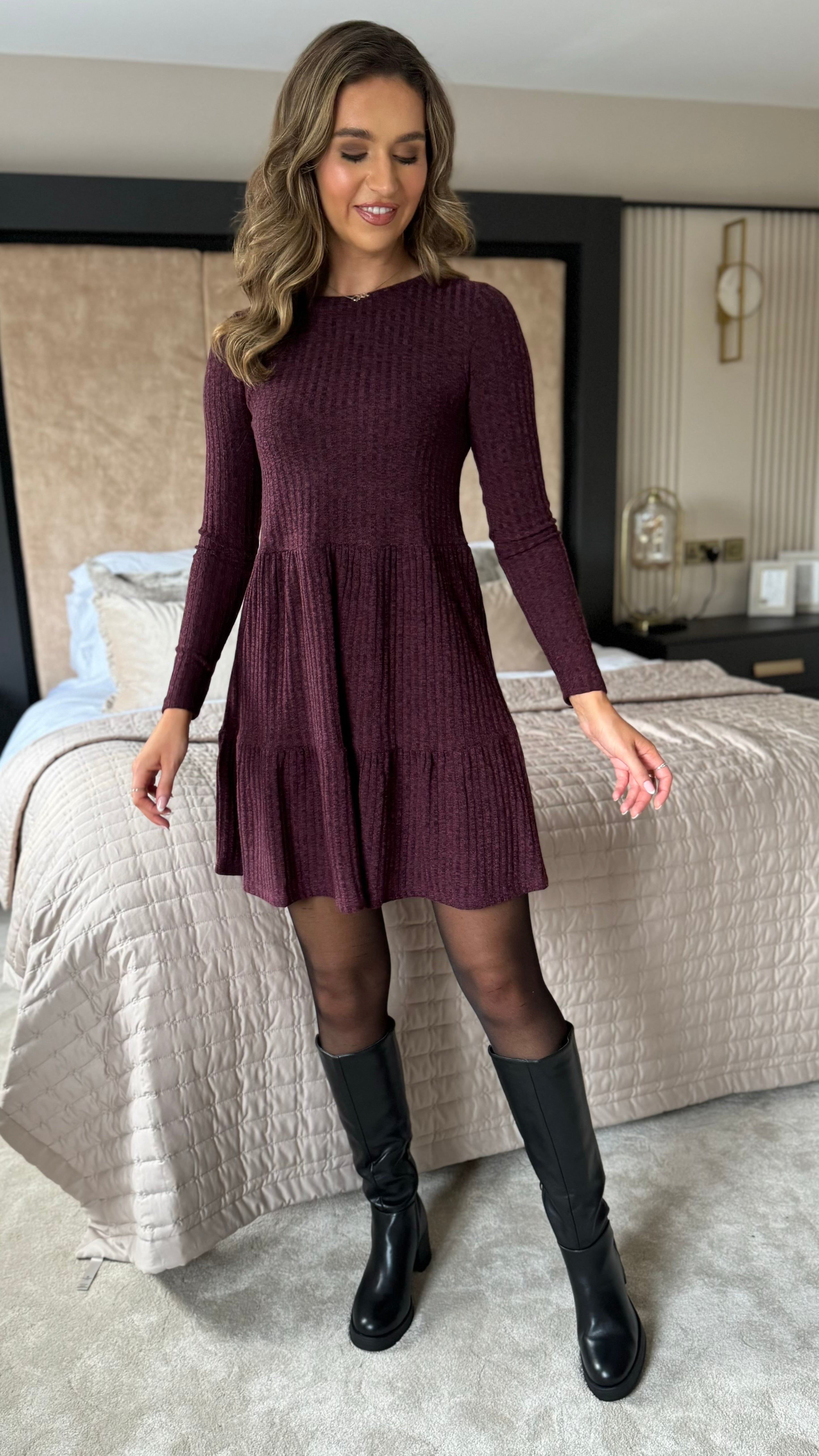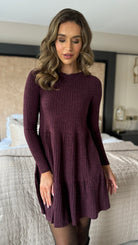 Step into cozy charm with the Hyacinth Burgundy Long Sleeve Knitted Mini Dress. Its soft ribbed fabric hugs you comfortably, while the playful tiered skirt adds a flirty twist to your look. The round neckline and long sleeves make it perfect for layering or wearing solo on cooler days. Effortless style meets snug comfort in this must-have dress!