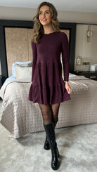 Hyacinth Burgundy Long Sleeve Knitted Dress