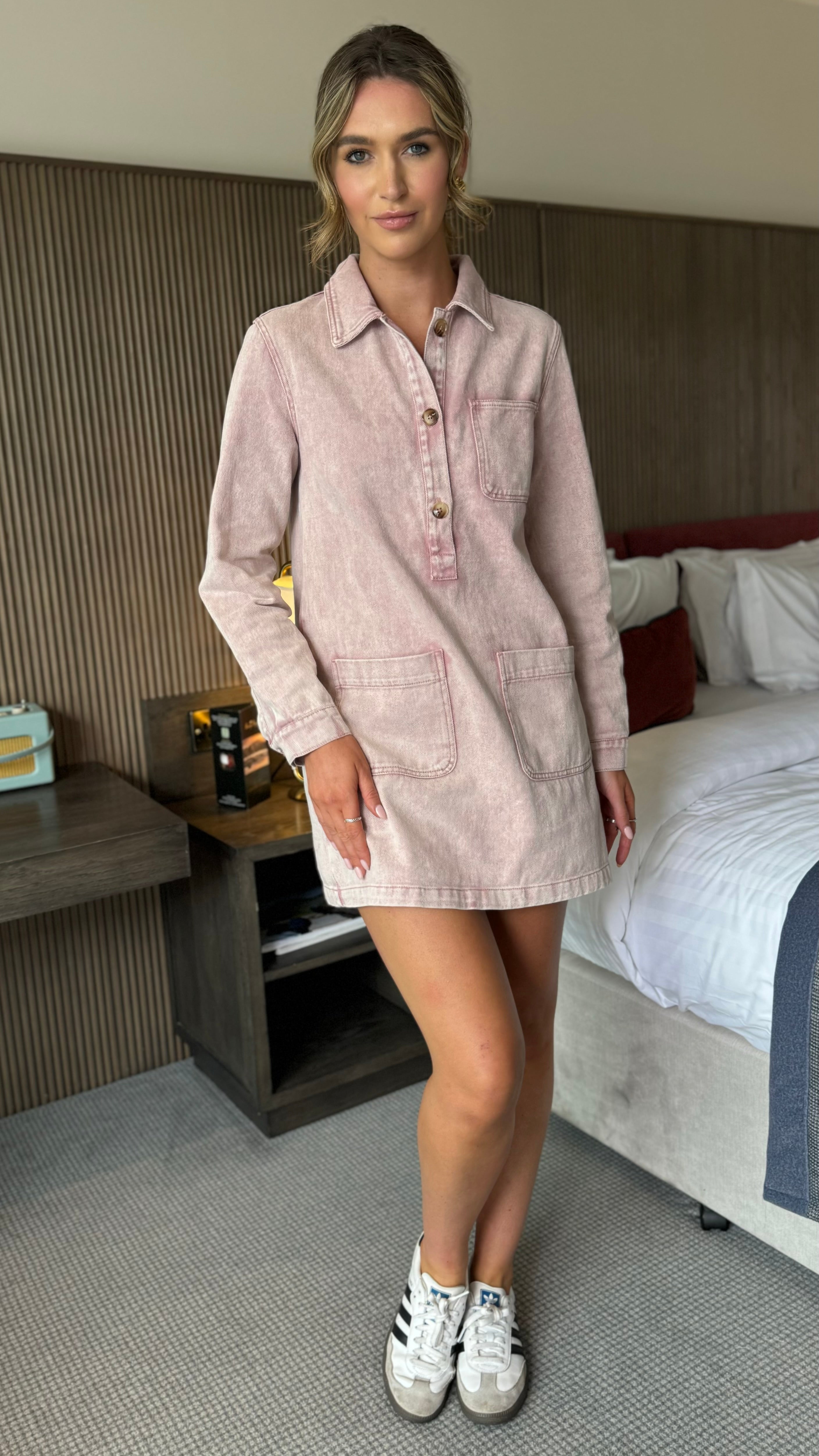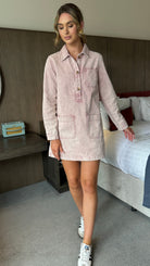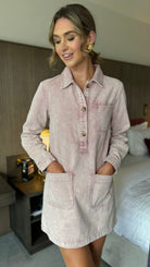 Kenna Dusky Pink Denim Long Sleeve Mini Dress